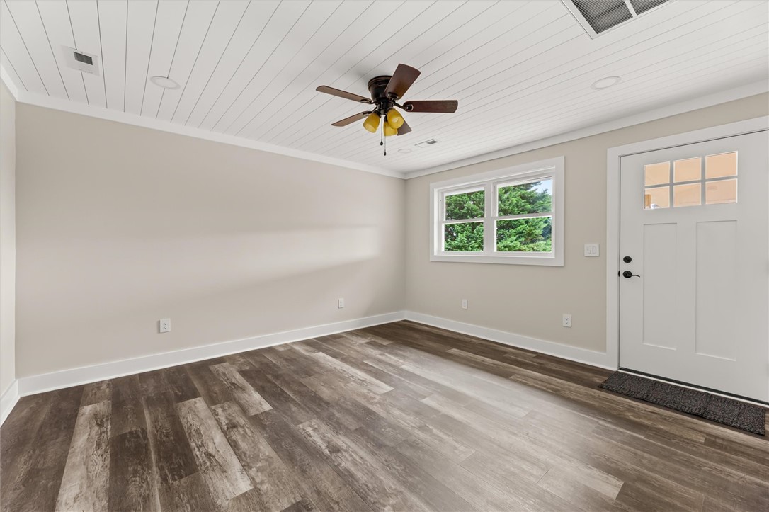 Welcome to 101 Fairview Drive in Greenville — a beautifully renovated gem perfectly positioned near the scenic trails of Paris Mountain and just 10 minutes from the vibrant heart of Downtown Greenville. Completely renovated from top to bottom, this stunning home blends modern style with timeless charm. Exceptional curb appeal sets the tone with fresh creamy white exterior paint, a massive vaulted covered front porch, stylish exterior lighting, charming gravel walkways, double gravel driveways, and dreamy light blue entry doors that make a memorable first impression. Step inside to discover 4 spacious bedrooms and 3 full bathrooms, all thoughtfully designed with durable luxury vinyl plank flooring, ceramic tile in the bathrooms, stylish shiplap ceilings, fresh interior paint, and an open, inviting floor plan ideal for both everyday living and entertaining. The brand-new chef’s kitchen on the main level is a true showstopper, featuring quartz countertops, custom cabinetry, a designer tile backsplash, stainless steel appliances, a large center island, and a dedicated pantry. The kitchen flows seamlessly into the dining area and main living room, creating the perfect gathering space. Also on the main level, you’ll find a bright laundry room, two generously sized bedrooms with a shared full bath, and a private primary suite. The primary bedroom offers its own ensuite bathroom, walk-in closet, and direct access to the covered front porch — a peaceful spot to enjoy your morning coffee or evening unwind. Additional highlights include: Double sliding doors from the kitchen to the rear driveway for easy grocery unloading Tankless water heater Custom bathroom vanities with built-in organizers, electrical outlets, and charging ports Designer lighting and ceiling fans throughout The thoughtfully finished lower level adds incredible versatility, functioning almost as a second home. It features a second living room, second laundry room, large bedroom with walk-in closet, full bathroom, and a kitchenette. With its own separate entrance, this level is ideal for extended family, guest quarters, or short- or long-term rental income. Both levels can operate independently, offering exceptional flexibility and multiple investment opportunities. Whether you're seeking a serene retreat near nature, a stylish home close to downtown, or an income-producing property with endless possibilities, 101 Fairview Drive delivers. Don’t miss this rare opportunity to own a fully renovated home in one of Greenville’s most desirable locations.