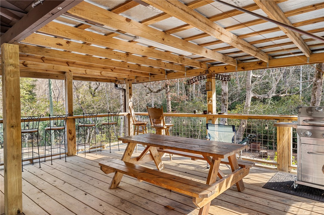 Where the river bends and the mountains rise, you’ll discover a place that invites you to slow down, breathe deeply, and stay awhile. Set along a remarkable stretch of the Chauga River in scenic Mountain Rest, this enchanting waterfront escape delivers the peaceful, private setting so many buyers hope to find. Whether you envision a personal hideaway, a fully furnished Airbnb investment, or a gathering place for unforgettable weekends, this property stands ready to welcome you. Positioned on 1.14 acres with approximately 400 feet of river frontage, this 2-bedroom, 2-bath mountain home balances relaxation and adventure. From the moment you arrive, the gentle sound of moving water and the cool mountain air create a calming first impression. Enjoy morning coffee on the rocking chair front porch, spend afternoons floating or fishing along the riverbank, and gather for outdoor meals while the water provides a peaceful soundtrack. Inside, the home blends warmth and character with thoughtful updates. Brazilian cherry hardwood floors and granite countertops create an interior that feels both inviting and refined. Ceiling fans provide comfort throughout. The home is offered fully furnished, making it easy to begin enjoying immediately or to continue operating as a short-term rental. Outdoor living takes center stage. Expansive decking overlooks the trees and river, creating an ideal setting for entertaining, relaxing, or simply taking in the surroundings. A fire pit encourages evenings under the stars, and a hammock provides a peaceful spot for an afternoon break. The property also features a durable metal roof, an outbuilding for storage, private well and septic, and ample space to explore and enjoy the natural setting. Located just minutes from Oconee State Park, the home offers convenient access to hiking trails, waterfalls, and year-round outdoor recreation. Despite the sense of seclusion, nearby shopping, dining, and everyday essentials remain within reasonable reach. The property is zoned for James M. Brown Elementary, Walhalla Middle, and Walhalla High School. This property delivers more than a place to live. It offers a lifestyle shaped by the rhythm of the river, evenings around the fire, and time spent making lasting memories in the mountains. If you’ve been searching for a true waterfront mountain retreat, this special property invites you to become part of its story.
