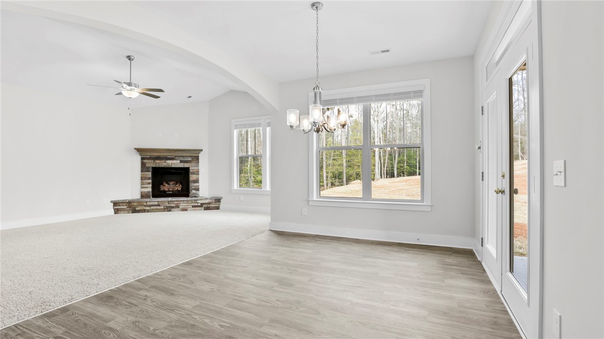 Discover 128 Estateside Drive, a beautiful new home in our Pine Lake Estates community! This thoughtfully designed one-story home features three bedrooms, two bathrooms, and a three-car garage across 1,783 square feet of living space. With its open-concept design and thoughtful layout, this home combines functionality, comfort, and timeless style. As you step through the covered entry, you’ll be welcomed into a bright and airy floorplan that connects the living room, dining area, and kitchen. The well-appointed kitchen includes stainless steel appliances, ample counter space, and a convenient island, making it perfect for both casual dining and meal preparation. The primary suite provides a peaceful retreat with a spacious bedroom, private bathroom featuring dual vanities and a soaking tub, and a generous walk-in closet. Two additional bedrooms share a full bathroom, providing plenty of space for family or guests. With its seamless layout, abundant natural light, and three-car garage, this home combines practical design with classic charm, creating a space that feels both comfortable and inviting. Pictures are representative.