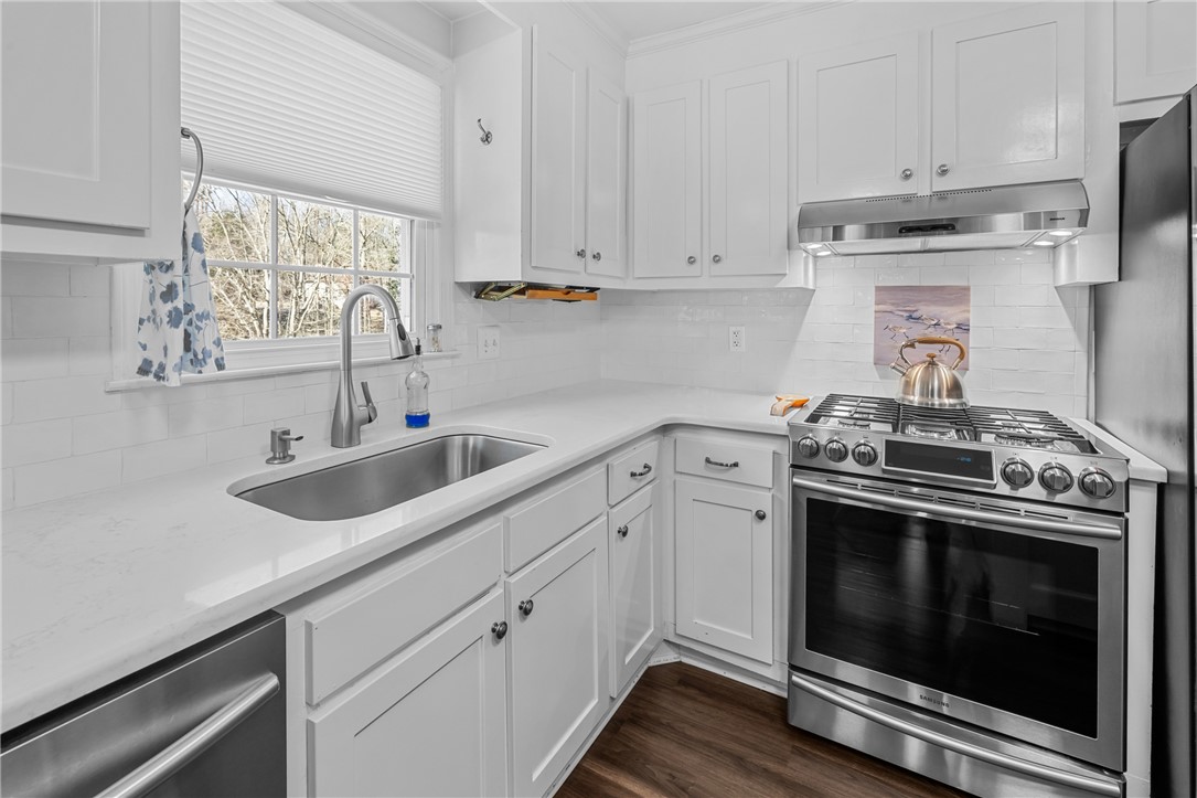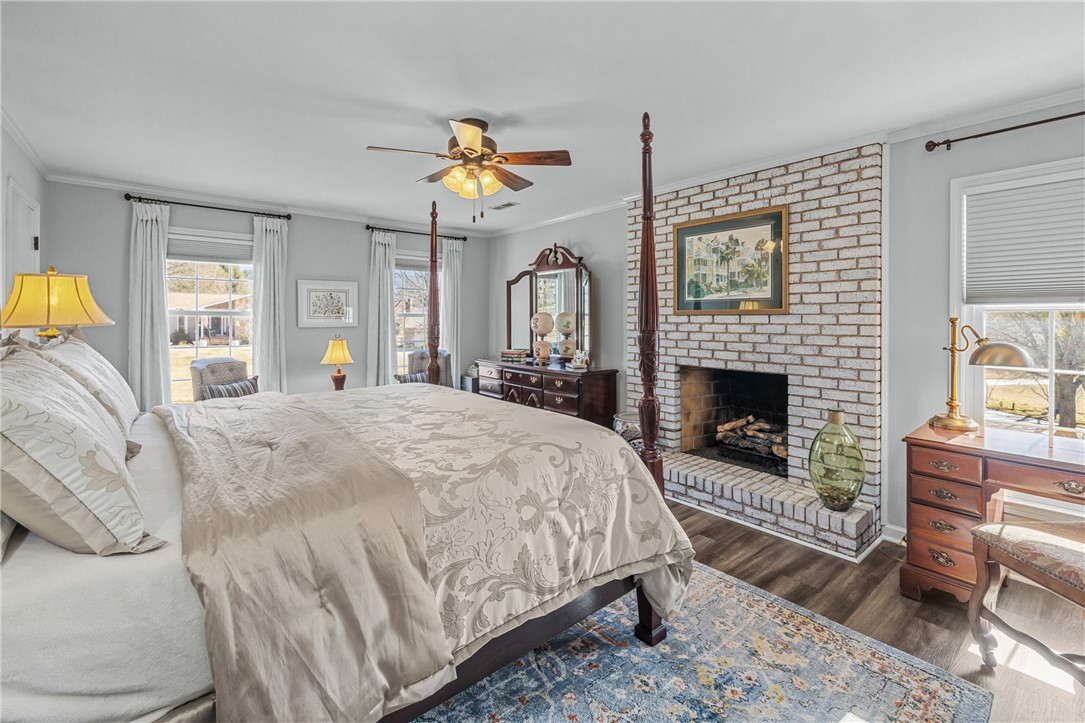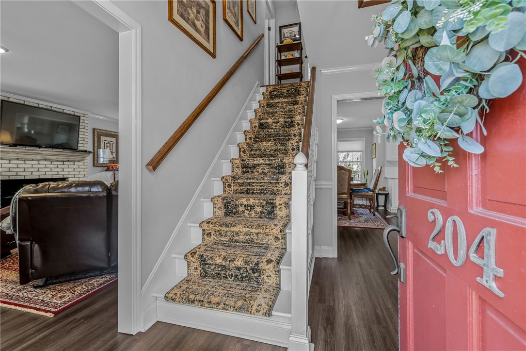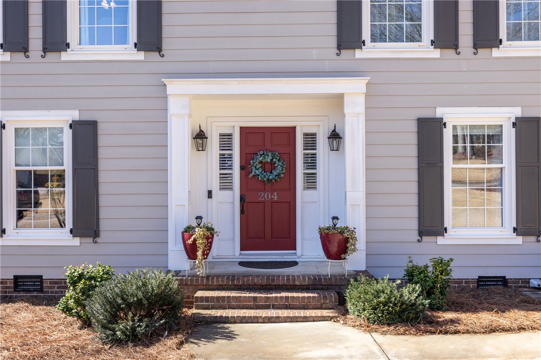 Welcome to 204 Warrington Drive, a beautifully updated contemporary colonial residence tucked within the highly sought-after Sedgewood community, offering the perfect balance of privacy, charm, and convenience with easy access to downtown Greenville and Interstate 85. Set on nearly one acre of lush, mature landscaping, this home exudes timeless character while offering thoughtfully curated modern updates throughout. Upon entering, you’re welcomed into a warm and inviting great room anchored by an impressive oversized brick fireplace with gas logs, creating a natural gathering space filled with charm and comfort. Custom fluted blinds adorn every window, complementing the home’s refined aesthetic. The stunning chef’s kitchen has been tastefully renovated to blend style and functionality, featuring elegant quartz countertops, soft-close shaker cabinetry, high-end stainless steel appliances, and an abundance of thoughtfully designed storage. Whether preparing everyday meals or entertaining guests, this space serves as the true heart of the home. The main level offers exceptional flexibility with a formal dining room that could easily function as a private office, sitting room, or additional main-level bedroom. A beautifully updated full bath with tile shower, an oversized laundry room with additional storage, and an attached two-car garage complete the first floor. Upstairs, the expansive primary suite offers a peaceful retreat, highlighted by its own charming brick fireplace and dual walk-in closets. Two generously sized guest bedrooms and a full hall bath provide comfortable accommodations for family and visitors alike. Step outside and discover a private outdoor sanctuary. The expansive deck creates the perfect setting for grilling and alfresco dining, while the nearly one-acre homesite offers mature landscaping, a cozy fire pit gathering space, a gently rustling creek, and even a picturesque hammock retreat for quiet afternoons. For gardening enthusiasts, the grounds offer endless opportunity to cultivate and enjoy. Blending classic architectural charm with modern updates and a truly special homesite, 204 Warrington Drive presents a rare opportunity to enjoy refined living in one of the area’s most desirable communities. Schedule your tour today!