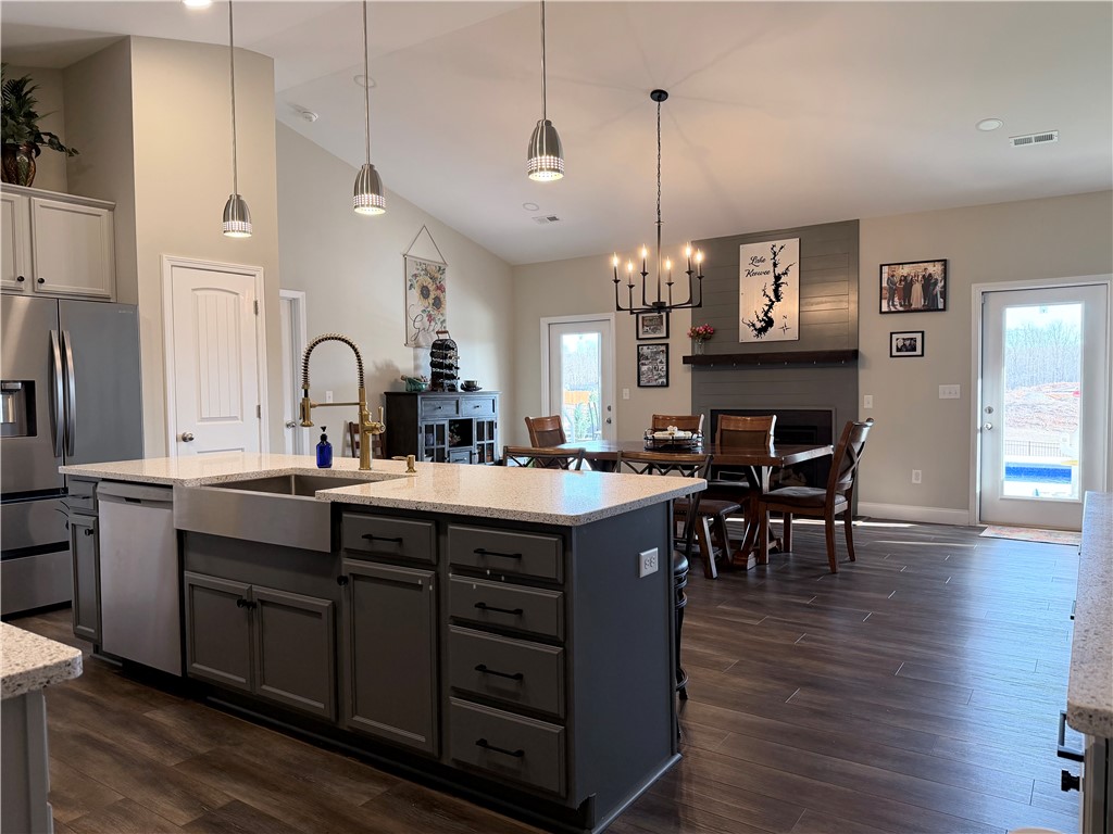 Welcome to 203 Legacy Lane. Just 2 years old, this home is a spacious retreat with a bright open floor plan and comfortable living spaces inside & out. The inviting office with large windows and french doors is located just inside the entry. You'll love the kitchen featuring nearly 20 feet of quartz countertop with a large island, tile backsplash, custom cabinets, pantry and upgraded stainless double oven range and awesome stainless refrigerator. An added bonus is that it's just steps away from the garage for easy grocery unloading. The main floor primary features tray ceiling, large walk in closet, bath with double sinks, soaking tub, separate shower & water closet. The kitchen and dining room boast vaulted ceilings, a gas fireplace and 2 glass doors leading to the large back covered porch and inground pool. Also on the first floor you'll find 2 carpeted bedrooms and a convenient full bath. The upstairs is a guest's dream with a very large bedroom, nicely appointed en suite bath and a separate family room ideal for extended family stays. Outside you'll enjoy a spacious back yard with a large portion enclosed with black aluminum fencing & the property continues beyond the back fence for added opportunity for an orchard, etc. Owners have made many upgrades throughout the home & a detailed list will be provided. The home has been wired for a back up generator as well as a 30 amp plug for an RV. The salt water plunge pool is perfect for cooling off and seemless to maintain and the large patio is perfect for entertaining. Legacy Farms is a newer community of less than 80 home sites and located just minutes from both Pickens and Liberty and 30 minutes fron downtown Greenville & 30 minutes to Table Rock State Park. Listed below recent appraised value- don't miss this beautiful home! Owner is a licensed SC Realtor.