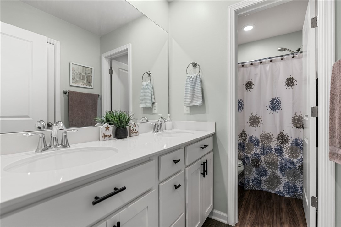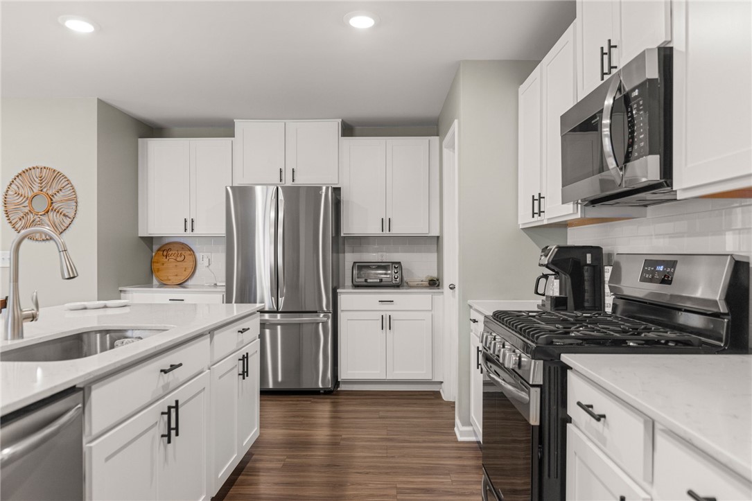 Welcome to your dream home! This stunning 5- bedroom, 3-bathroom residence offers the perfect blend of comfort, space, and breathtaking scenery. A main-level bedroom with a full bathroom provides convenience for guest or multigenerational living or an office area. The heart of the home shines with a gorgeous kitchen featuring a large island perfect for meal prep or entertaining. Upstairs, discover an additional living area, alongside a luxurious primary suite with brand new luxury carpet boasting two generous closets and a serene retreat-like feel. Don't miss the additional 3 more bedrooms also with new luxury carpet, full bath and laundry room to round out the upstairs. Step outside to your fully fenced backyard-in private oasis ready for play, pets, gardening or simply relaxing while soaking in the incredible views of the mountains in the distance and the woods. With thoughtful layout, ample space, and the fenced in backyard, this beautiful home is move-in ready and waiting for your family. There are many updates included: prime lot with woods in the backyard, custom Bali Blinds throughout home, Vinyl plank flooring on stairs and second floor hallway, hardware installed in kitchen and bathroom cabinet doors, ring smart system with additional security sensors on all first level windows, security cameras in front and rear of home, 18x18 paver patio in backyard. Don't miss out schedule your showing today!