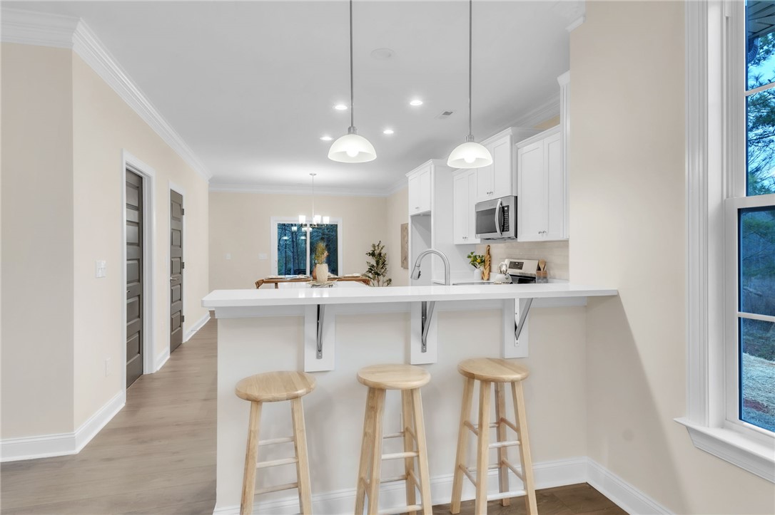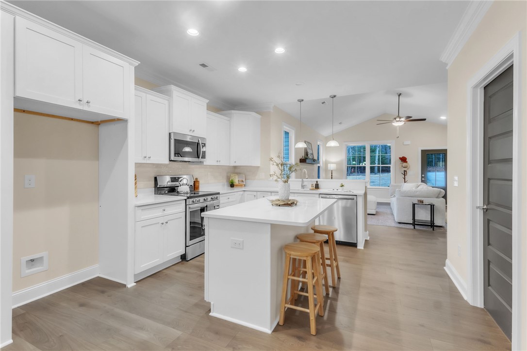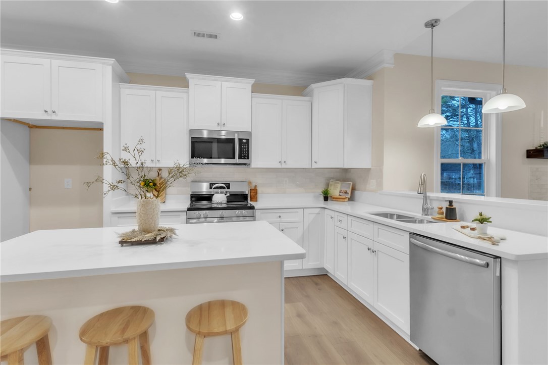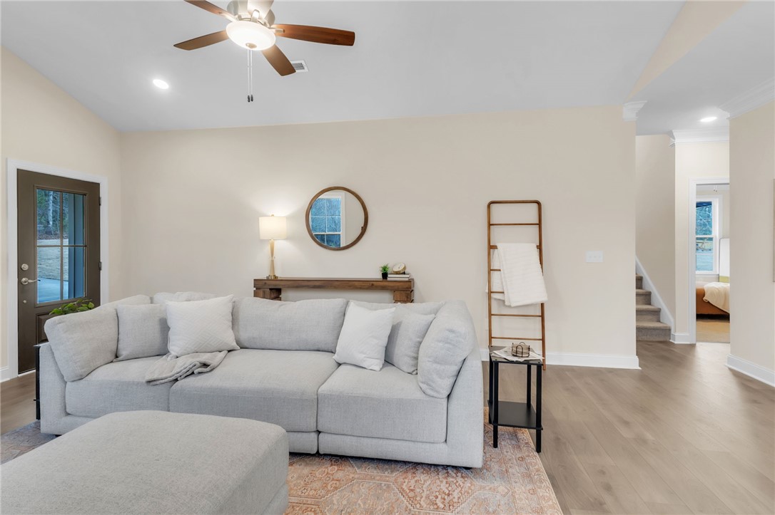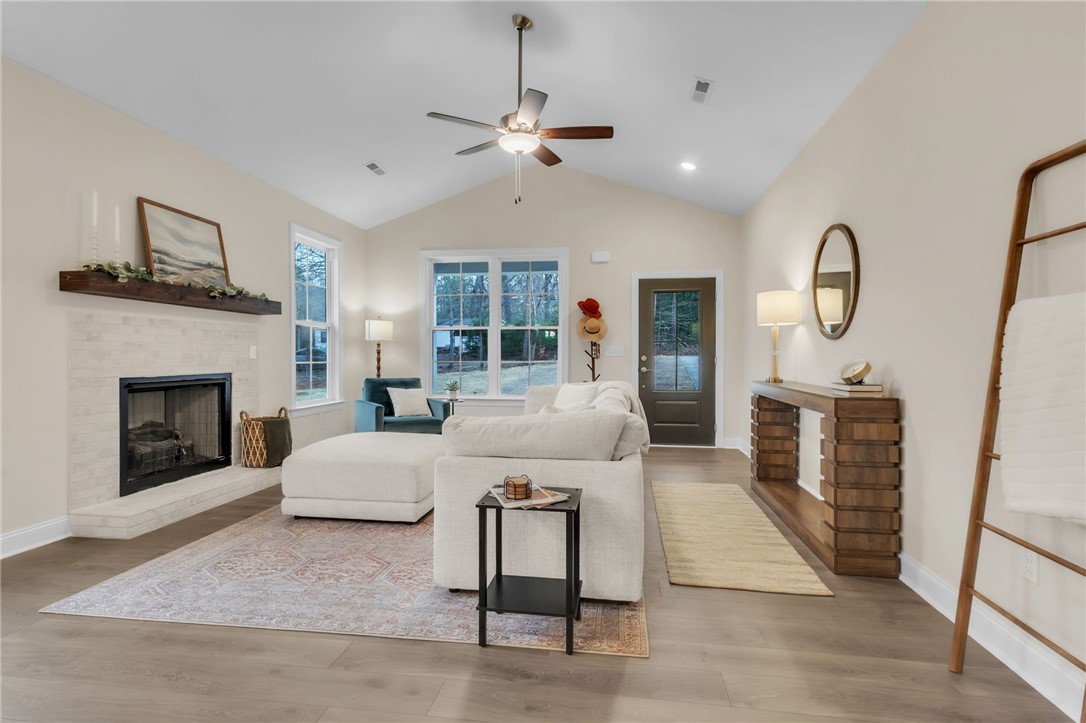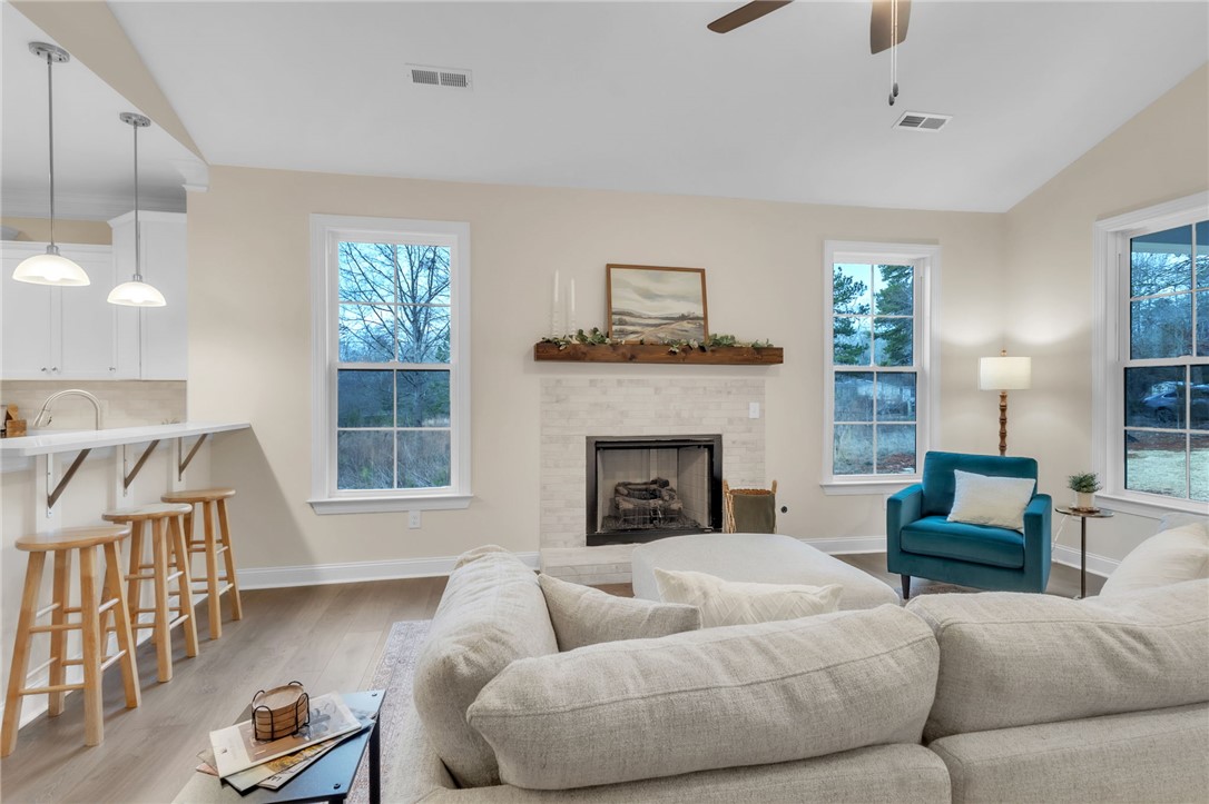 Welcome to 24 Fisher Jenkins Rd! This absolutely gorgeous one level home with a bonus room up sits on a level private lot without HOA! Uponwalking into the front door you will be amazed at the soaring ceilings with the upgraded flooring, beautiful fireplace with mantel, gas log fireplacethen looking into the kitchen you will not be disappointed in preparing your meals....stainless appliances along with quartz counter tops that hasa large island that has your family scooting up to enjoy family meals. The dining area is directly beside the island which means if you areentertaining you can be all seated together. The three bedrooms and two full baths, laundry, pantry occupy the first floor and walk upstairs andyou will be surprised to see the size of this bonus room along with all the windows allowing the natural light to just shine in! There is a greatcovered patio to relax on with a natural tree line directly behind you....no other homes just green trees. This is the entire package.....come andsee this home and not only is it the PERFECT home for you and your family but it is very conveniently located. Call today for your private tour!