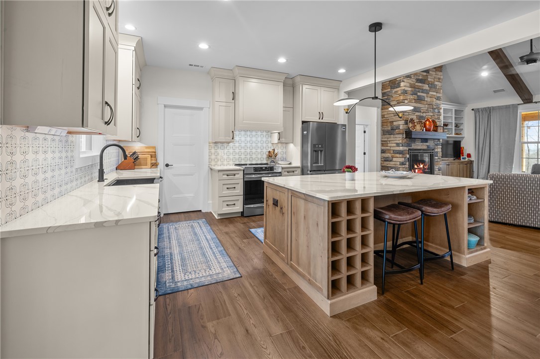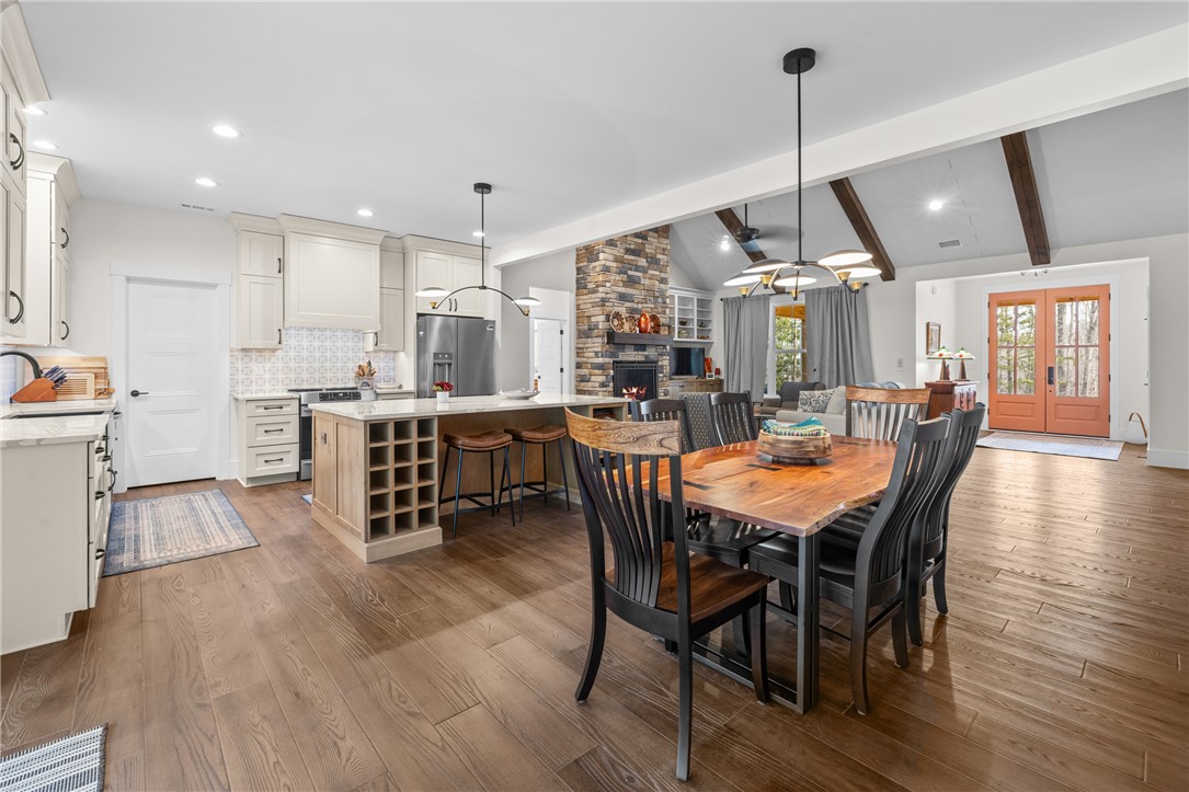 Welcome home to 113 South Oak Pointe! This thoughtfully designed 4-bedroom, 3.5 bath home offers seasonal lake and mountain views, a deeded boat slip on Lake Keowee, modern efficiency and comfort tailored for every stage of life. With a focus on “aging in place,” the home features extra-wide doorways, a functional split floorplan, and convenient main-level living without sacrificing style or luxury. Step inside to an open and airy living room highlighted by beam ceilings and a stunning stacked stone gas fireplace, which is the perfect centerpiece for gathering with family and friends. The expansive kitchen is a true showstopper featuring quartz countertops, soft-close drawers, an induction stove and abundant workspace and storage for both everyday living and entertaining. The split bedroom layout offers privacy and flexibility, with two bedrooms connected by a full bath on one side of the home. The primary suite is a private retreat, showcasing elegant trey ceilings, a side door leading directly to the pool deck and a massive walk-in closet. The spa-like primary bath boasts an oversized curbless shower with a rainfall showerhead for a luxurious, barrier-free experience. Upstairs you’ll find a private full bedroom en-suite along with a spacious flex area that is ideal for guests, a home office, media room or multi-generational living. Once outside, the outdoor living is just as impressive. Enjoy the in-ground heated saltwater pool, perfect for extended seasonal enjoyment, along with in-ground irrigation to keep the landscape lush. The 3-car garage includes a convenient pet wash station, an EV charger and the home is equipped with a whole-home backup generator and solar panels for energy efficiency and peace of mind. South Oak Pointe is located just minutes from South Cove County Park, Prisma Hospital, medical offices, grocery stores and charming downtown Seneca. This home offers the perfect balance of serenity and everyday convenience. Beautifully designed, energy-conscious, and ready to accommodate your lifestyle—this exceptional property truly has it all. Don’t miss this one! Schedule your showing today!