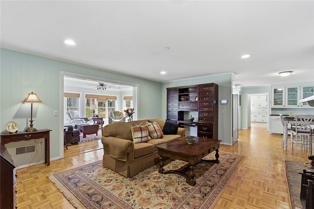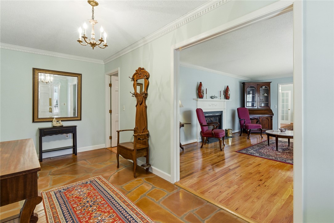 Nestled in the desirable Cherokee Woods Subdivision, this traditional one-level brick home offers space, comfort, and privacy on a beautiful 2.27-acre lot. With 3 to 4 bedrooms and 4.5 baths, this thoughtfully designed home features a welcoming entry that opens to a formal living room with fireplace, a formal dining room, and a spacious den with a brick gas fireplace that flows seamlessly into a large sunroom filled with natural light. The kitchen comes fully equipped with all appliances remaining and opens to a cozy breakfast area that is perfect for everyday living and entertaining. A generously sized laundry room includes a sink, pantry storage, and a convenient passage door leading to the private deck. Each large bedroom connects to a private bath, providing comfort and convenience for family and guests. The primary suite boasts numerous upgrades, including a walk-in shower, dual vanities, and an oversized walk-in closet. The walk-out lower basement offers exceptional flexibility with a living area, kitchenette connections, private bedroom, and full bath. It is ideal for guests, in-laws, or multi-generational living. Designed with accessibility in mind, this home is handicap and wheelchair accessible. Additional features include a two-car garage, multiple storage spaces and many desirable upgrades your family will truly appreciate. Enjoy peaceful, private living with plenty of room to relax both inside and out.