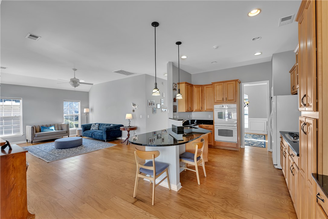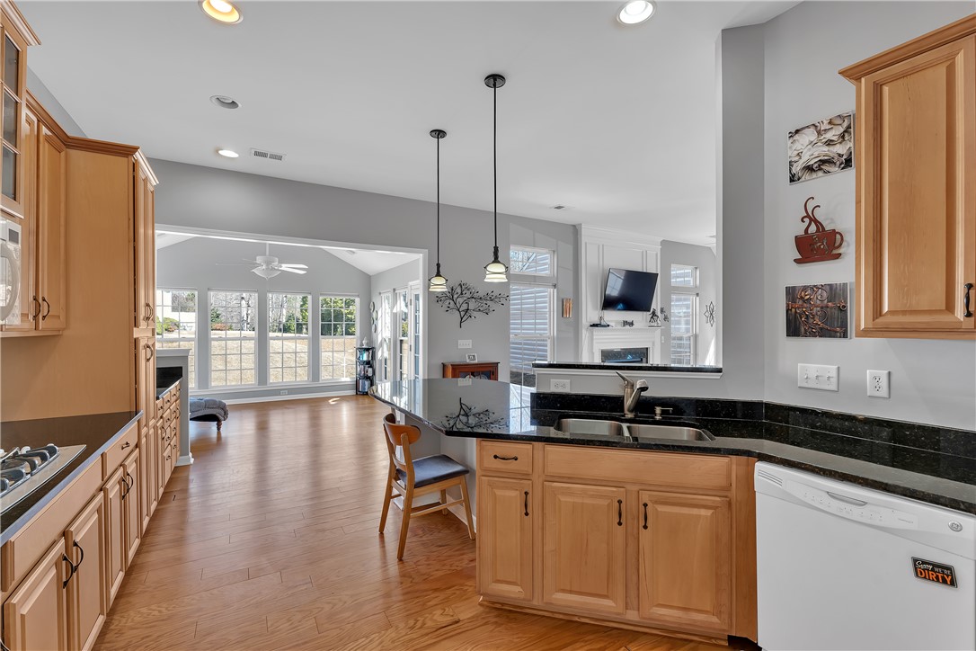 Beautiful One-Story Brick-Accented Ranch in Gresham Park. Welcome to this charming one-story, brick-accented traditional ranch offering comfort, style, and low-maintenance living in the desirable Five Forks Area. With three bedrooms, two full baths, and an inviting open floor plan, this home blends classic design with modern convenience. Interior Features include: Large living room with abundant natural light, a gas-log fireplace, Formal dining room featuring lovely wainscoting trim and palladium top style windows and smooth ceilings through-out. A Spacious kitchen with granite countertops, recessed lighting, double ovens, built-in microwave, gas cooktop and an abundance of cabinets for exceptional storage. An inviting Sunroom is located off the kitchen, perfect for morning coffee or relaxing afternoons! Hardwood floors throughout the main living areas, carpet in bedrooms, and ceramic tile in baths and utility spaces. A Large laundry room with convenient hallway access to the garage is located off a private hallway. The Primary Suite is Oversized with excellent natural light, Private en-suite bath featuring: Separate shower, Spa-style garden tub, Double sinks and a Large walk-in closet. Some additional Highlights are the 2-car garage with a yard door for easy outdoor access, Natural gas heat and cooking plus many windows throughout for added charm and brightness. Don't miss this Lovely Cul-de-sac Home in a Community that features Amenities where residents enjoy the included Lawn maintenance, a community pool, sidewalks and a Clubhouse!