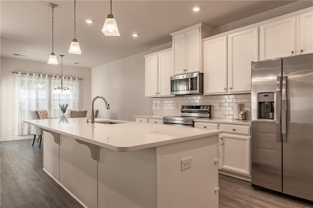 Welcome to this stunning 4-year-old craftsman-style home set on a spacious 0.46-acre corner lot in the Bronson Ridge neighborhood of Anderson, SC. Perfectly located, you’re just 10 minutes from I-85 and downtown Anderson, and moments to shopping, dining, the YMCA, and all the amenities of Clemson Blvd and E Greenville St. Built with quality in mind, this home features fiber cement siding and stone accents for exceptional durability and curb appeal. The large, fenced backyard with vinyl privacy fence is ideal for pets or entertaining. Inside, you’ll love the open-concept floor plan. The inviting entryway flows into a versatile dining or flex area, ideal for formal dining or home office needs. The gourmet kitchen boasts quartz countertops, a large center island, stainless steel appliances, ample cabinets, and a walk-in pantry. Adjacent to the kitchen, the breakfast nook provides the perfect spot for a morning coffee and has access to your grilling patio and private backyard oasis. Luxury vinyl tile floors flow throughout the living spaces, while the spacious primary suite on the main level features tray ceilings, an ensuite bath with a tiled walk-in shower and relaxing garden tub, double vanity, and generous closet space. Upstairs, you’ll find two additional bedrooms, a full bathroom, a spacious loft/flex area ideal for a playroom or second living room, and a walk-in attic for easy and accessible storage. Additional highlights include a two-car garage, no city taxes, and USDA Rural Housing eligibility for qualified buyers. Don’t miss this rare opportunity for quality, privacy, and convenience in one of Anderson’s most desirable neighborhoods!