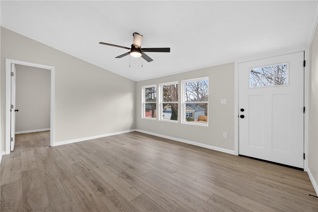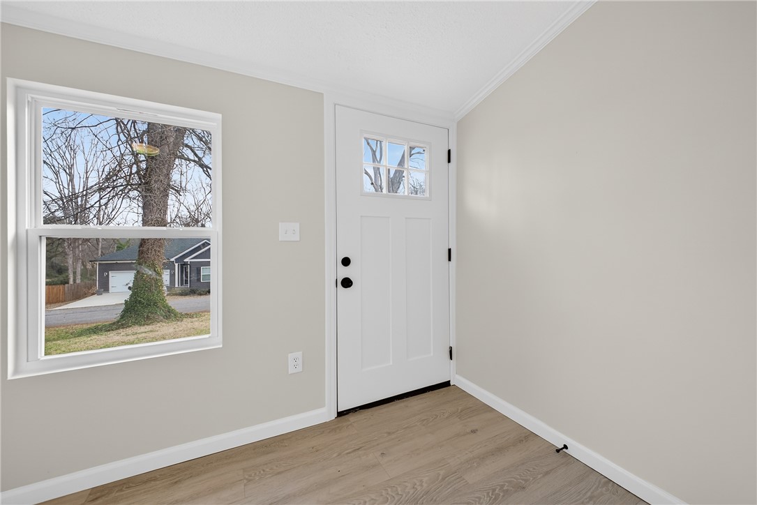 Don't miss your chance to own a fully renovated home on a large lot in the middle of town for this price! New siding, drywall, trim, doors, windows, paint, cabinets and bathroom. HVAC from 2023 and sturdy metal roof approximately 11 years old. A large front yard with mature trees leads to a rocking chair front porch. Step inside to the spacious living room with tons of light that opens to a huge eat in kitchen. This 3 bedroom, one full bath home features a split floor plan and a large laundry/mudroom/storage area. The large back yard is home to a detached two car garage with tons of space. Duke Energy placed a new breaker box on the home in 2025 and GFCIs have been added. Perfect for young families, folks downsizing or first time home buyers, don't miss this opportunity!