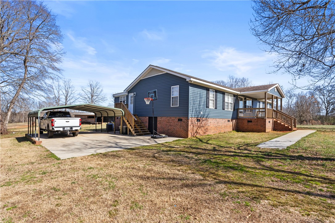 Private, usable acreage just minutes from I-85 and Lake Hartwell. This 24-acre property offers approximately 7 acres of fenced pasture, a creek, and level to gently rolling ground that lays well for horses or small-scale farm use. With no restrictions in place, you have the flexibility to expand, fence additional areas, or simply enjoy the land as it is. The barn and shop setup is built to work. A 30x30 fully concreted shop anchors the structure and is surrounded by 16-foot covered lean-tos, creating extensive protected space for equipment, trailers, and hay storage. The shop features both 110 and 220 power, approximately 10.5-foot clearance to the bottom of the trusses, and a 9-foot tall by 10-foot wide door opening for easy access. On the back side, you’ll find four stalls with fans and power, along with a dedicated tack room for organized daily use. A fully concreted wash rack with hot and cold water and hitching post is already in place. The right side functions as an equipment shed with ample room for tractors and implements. Water is run to the barn and shop. The ranch-style home, built in 1996, offers approximately 2,236 square feet with a practical single-level layout featuring three bedrooms and two full baths, plus a large office that could easily serve as a fourth bedroom. The spacious living area includes a gas fireplace and flows into the kitchen and dining areas. The kitchen features granite countertops and island workspace. All hard-surface flooring, including bamboo and LVP, provides durability and easy maintenance. The roof was replaced in 2018. Public water and septic are in place, and a two-car carport provides covered parking. Located less than 10 minutes to Port Bass Boat Ramp on Lake Hartwell and approximately 10 minutes to I-85, this property offers country privacy with convenient access to town and interstate travel. If you’ve been searching for fenced pasture, established improvements, and room to live and work without starting from scratch, this property deserves a closer look.