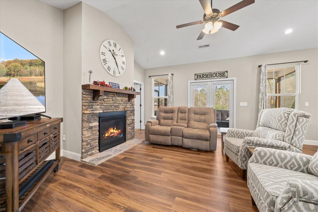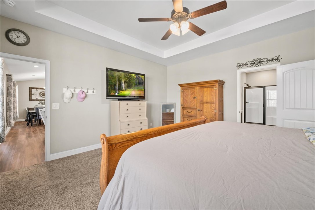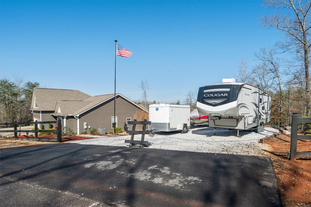 Superb LOCATION can be found here, as it's centrally located b/t ATL & CLT airports, w/close proximity to Clemson, for TIGER FOOTBALL & quick access to I-85. It's your chance to make this beautiful place your full time home, a weekend retreat or investment, as this community allows short-term rentals. Numerous opportunities await! 10 minutes from Green Pond Landing for fishing tournaments & public boat ramps; 15 minutes from Death Valley to watch the Tigers play. This 4 bedroom, 3 bath home offers an open floorplan. The split floorplan offers privacy for the large primary suite. The design of this home could potentially allow the 2nd & 3rd bedrooms, along with the 2nd full bath, to serve as a MIL suite. The shared living spaces are centrally located for easy access. The upstairs bonus/4th bedroom offers a 3rd full bath & spacious closet. Outside, you will enjoy your screened porch, w/an adjacent covered patio. PLUS you will find TWO GARAGES; the detached garage is wired with both 120v/220v. Bring your boat, your muscle car, your golf cart. There's room! A private, covered 11x15 storage area is behind the attached garage. The large yard has a separate space & entrance for your RV! YES-this HOA allows your boat &/or RV to be parked on site & this seller has a designated area ready for you! A home inspection has been completed. Repairs have been addressed.
