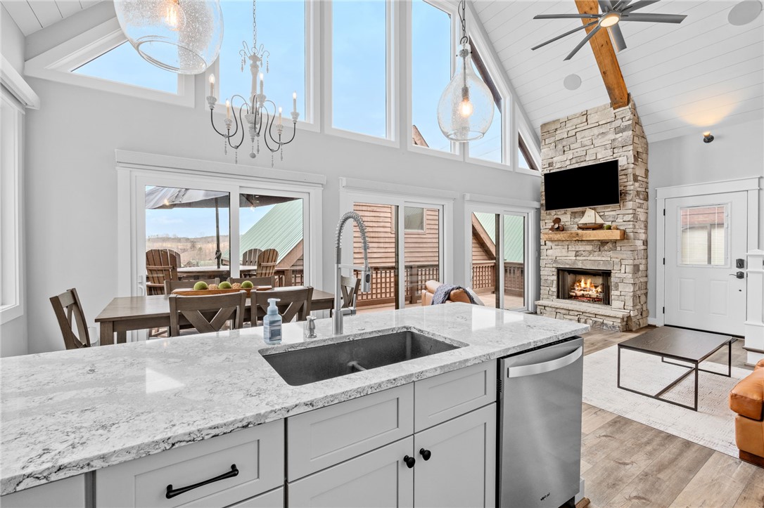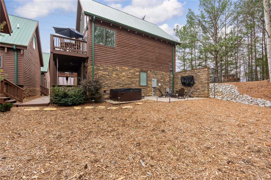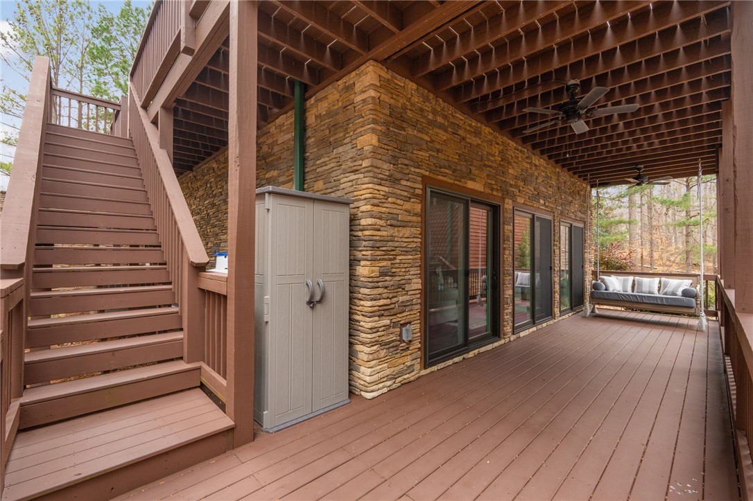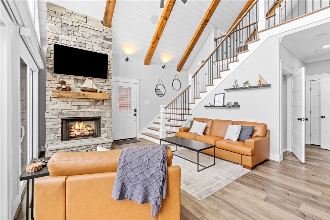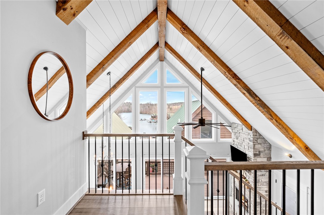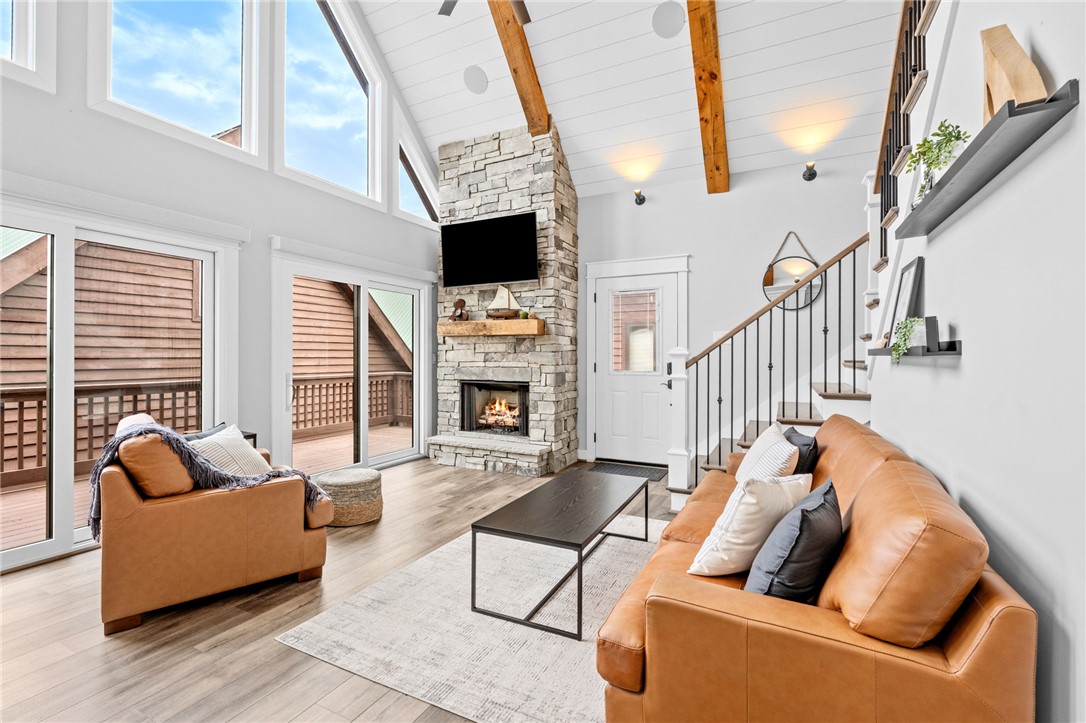 Stunning A-frame waterfront home located in a deep-water cove on Lake Keowee, showcasing the pristine emerald water and beautiful views of the Blue Ridge Mountains. Includes deeded boat slip (#8) with jet ski storage lift in place just steps away. The main level features an open floor plan with exposed wood beams, soaring cathedral windows, gas fireplace, luxury LVT flooring, and a kitchen with granite countertops and stainless appliances. Spacious primary suite on main with private bath. Upper loft bedroom includes its own full bath. Walk-out lower level offers room for 85” TV with built-in surround sound, two additional bedrooms, and a shared full bath. Both main and lower levels feature new Alta motorized blackout shades. Enjoy full-width decks on both levels plus a stone patio with brand-new 65” TV and gas fire pit — perfect for entertaining. Also included in this price is a buildable lot with deeded boat slip (#7). All furniture and hot tub negotiable with purchase. Rentals not allowed per HOA. Ideal for full-time living or a lake retreat — this one is a must-see.