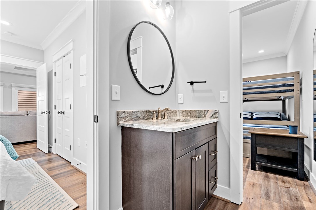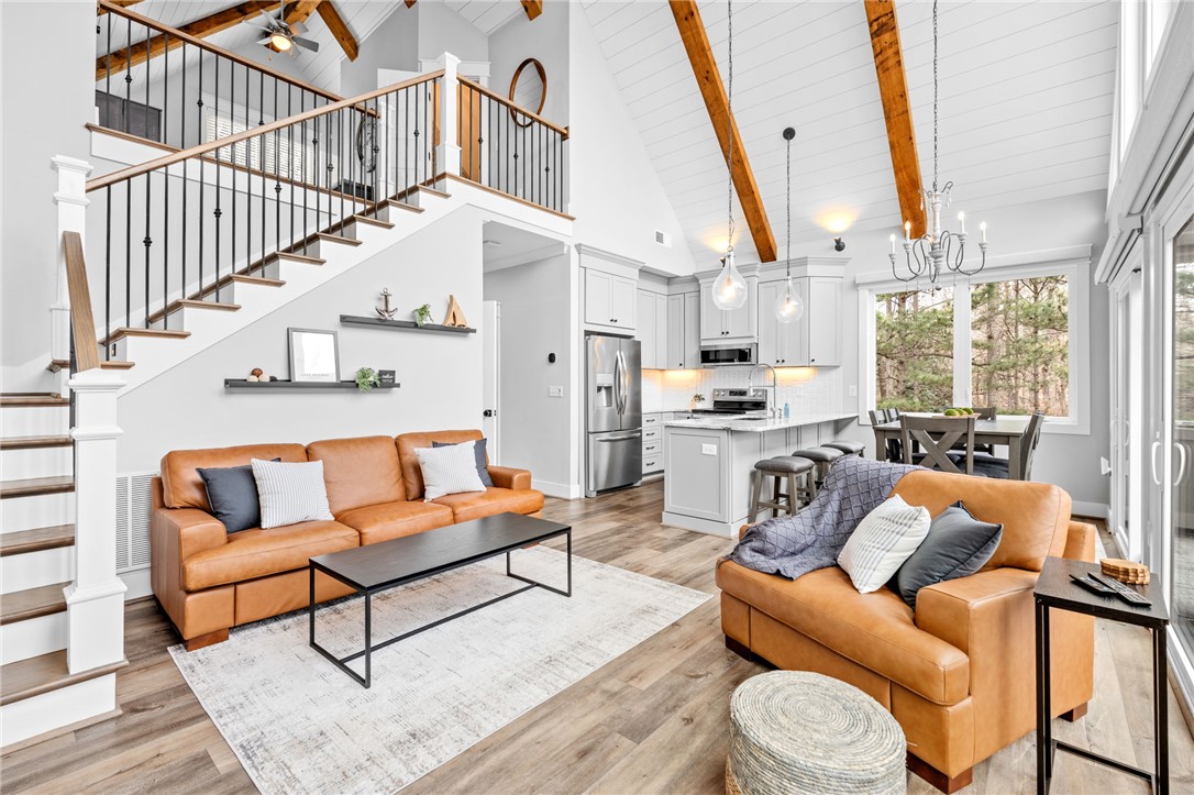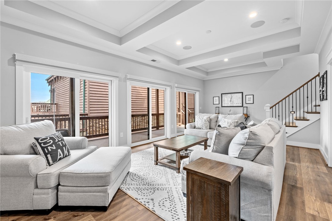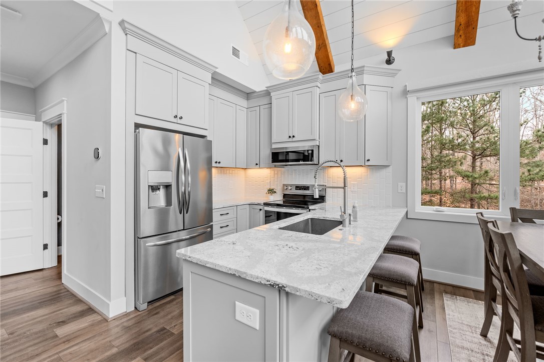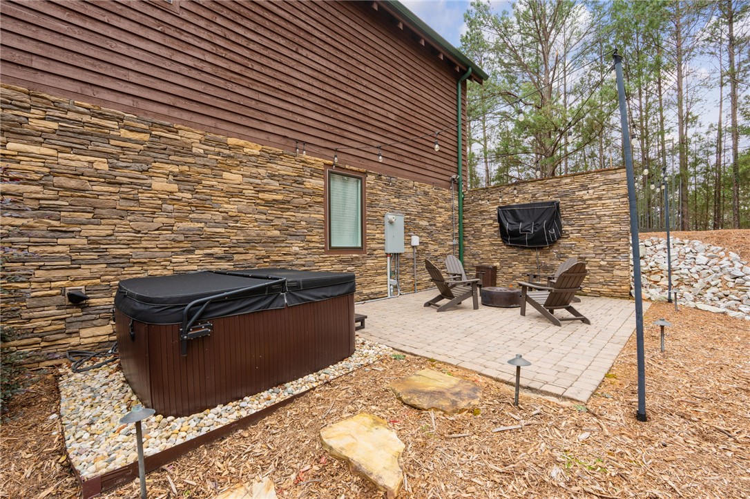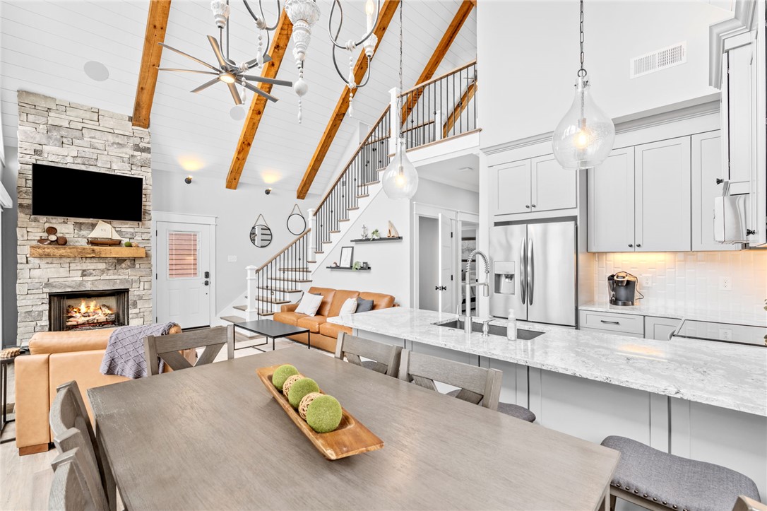 Stunning A-frame waterfront home located in a deep-water cove on Lake Keowee, showcasing the pristine emerald water and beautiful views of the Blue Ridge Mountains. Includes deeded boat slip (#8) with jet ski storage lift in place just steps away. The main level features an open floor plan with exposed wood beams, soaring cathedral windows, gas fireplace, luxury LVT flooring, and a kitchen with granite countertops and stainless appliances. Spacious primary suite on main with private bath. Upper loft bedroom includes its own full bath. Walk-out lower level offers room for 85” TV with built-in surround sound, two additional bedrooms, and a shared full bath. Both main and lower levels feature new Alta motorized blackout shades. Enjoy full-width decks on both levels plus a stone patio with brand-new 65” TV and gas fire pit — perfect for entertaining. Also included in this price is a buildable lot with deeded boat slip (#7). All furniture and hot tub negotiable with purchase. Rentals not allowed per HOA. Ideal for full-time living or a lake retreat — this one is a must-see.