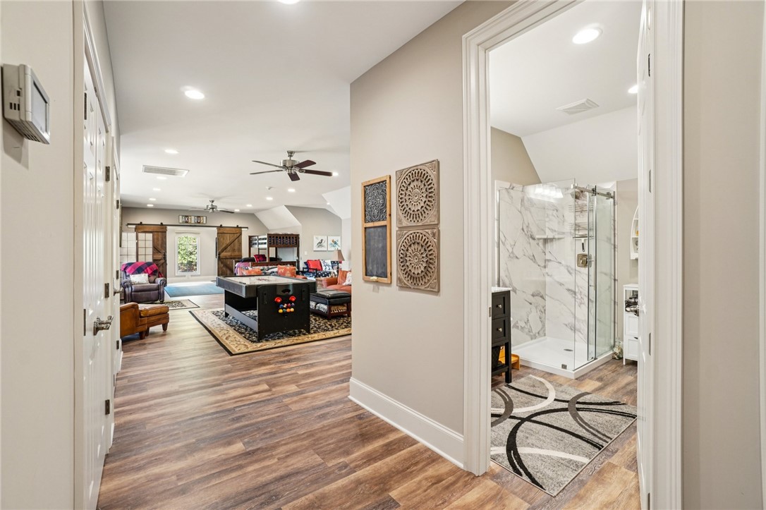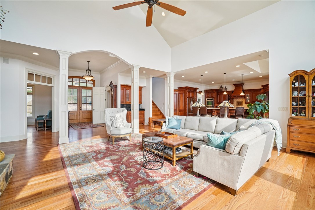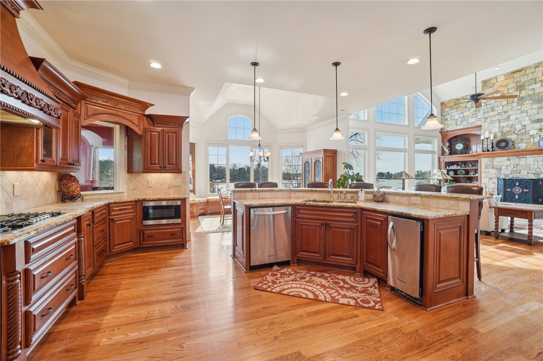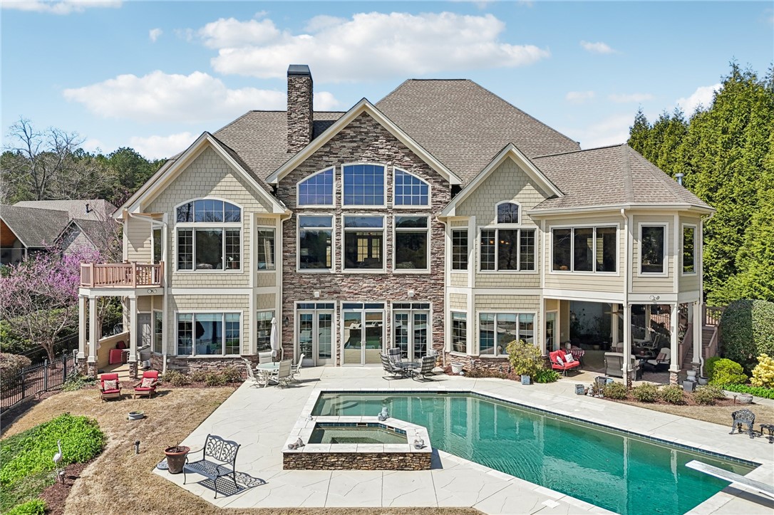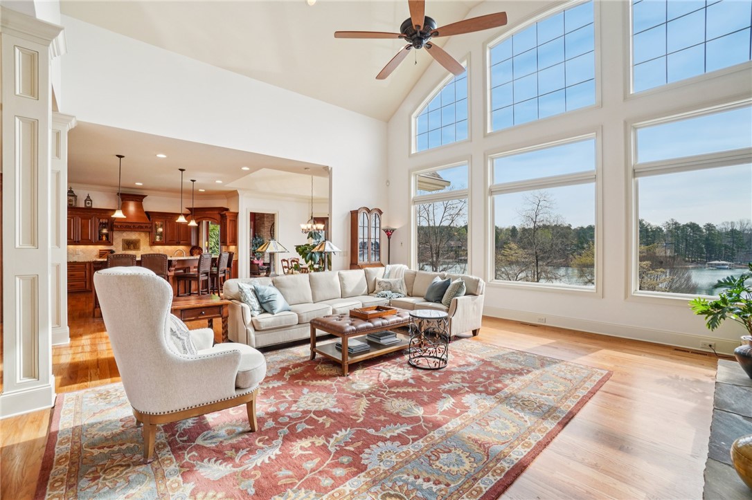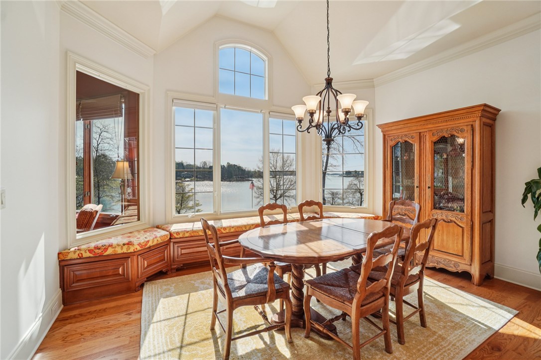 Stunning custom lakefront home in Moonlight Bay on Lake Keowee! Situated on a private 1.11-acre lot with approximately 135+/- feet of shoreline, this exceptional property offers the perfect blend of luxury, comfort, and breathtaking water views. Built in 2008 by Glenn English, this beautifully designed 3-story home features approximately 6,750 square feet with 5 bedrooms, 5 full baths, and 2 half baths. The thoughtfully designed floor plan includes a spacious main-level living area with soaring ceilings, abundant natural light, and seamless indoor-outdoor flow. The gourmet kitchen is equipped with granite countertops, stainless appliances, gas range, ice maker, and ample cabinetry—ideal for entertaining. Multiple fireplaces, a wet bar, elevator, and refined finishes throughout elevate the home’s appeal. The main-level primary suite offers comfort and privacy, while additional bedrooms on upper and lower levels provide ample space for family and guests. The terrace level features a recreation room, media space, and walkout access to the lake. Outdoor living is exceptional with covered and screened porches, patio spaces, and a hot tub/spa for relaxing evenings. Enjoy direct access to Lake Keowee from your private dock with lift, perfect for boating and water activities. Additional highlights include a 3-car attached garage, hardwood and tile flooring, multi-zone HVAC with heat pumps, central vacuum, and beautifully landscaped grounds. Located in a quiet, established lakefront community just minutes from Seneca, this home offers the ultimate lake lifestyle.