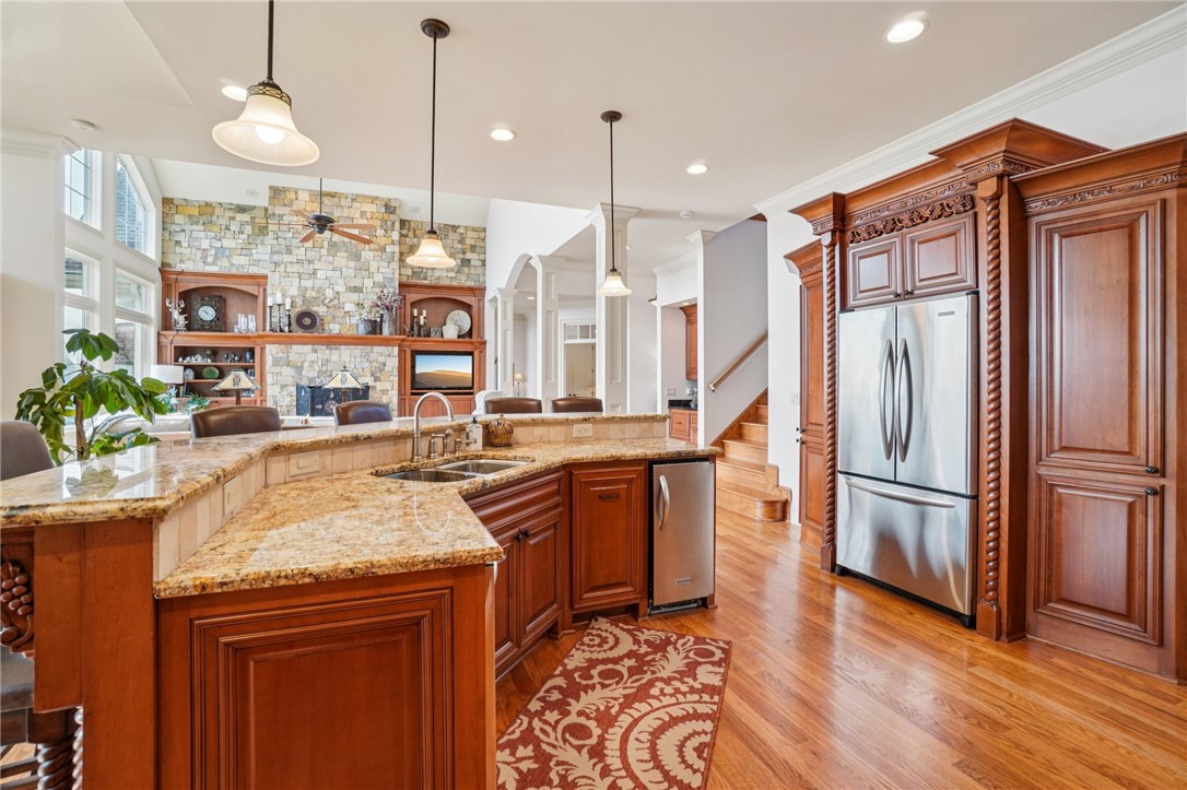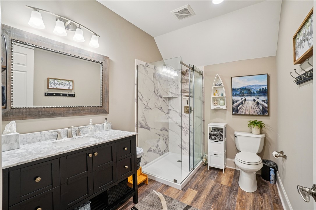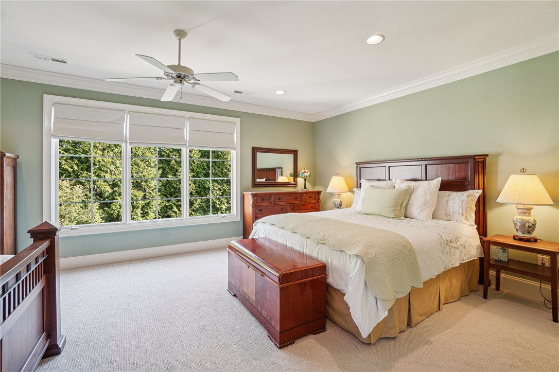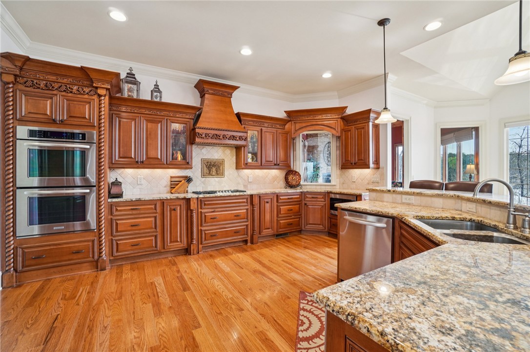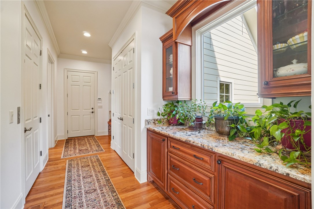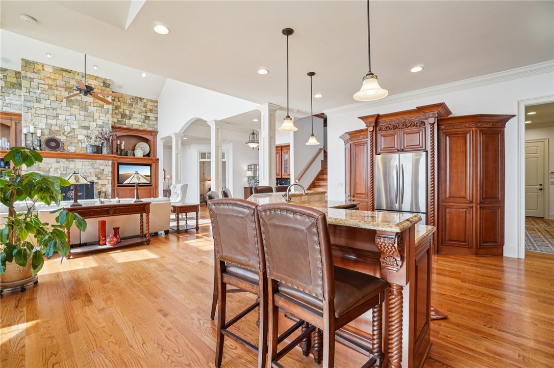 Stunning custom lakefront home in Moonlight Bay on Lake Keowee! Situated on a private 1.11-acre lot with approximately 135+/- feet of shoreline, this exceptional property offers the perfect blend of luxury, comfort, and breathtaking water views. Built in 2008 by Glenn English, this beautifully designed 3-story home features approximately 6,750 square feet with 5 bedrooms, 5 full baths, and 2 half baths. The thoughtfully designed floor plan includes a spacious main-level living area with soaring ceilings, abundant natural light, and seamless indoor-outdoor flow. The gourmet kitchen is equipped with granite countertops, stainless appliances, gas range, ice maker, and ample cabinetry—ideal for entertaining. Multiple fireplaces, a wet bar, elevator, and refined finishes throughout elevate the home’s appeal. The main-level primary suite offers comfort and privacy, while additional bedrooms on upper and lower levels provide ample space for family and guests. The terrace level features a recreation room, media space, and walkout access to the lake. Outdoor living is exceptional with covered and screened porches, patio spaces, and a hot tub/spa for relaxing evenings. Enjoy direct access to Lake Keowee from your private dock with lift, perfect for boating and water activities. Additional highlights include a 3-car attached garage, hardwood and tile flooring, multi-zone HVAC with heat pumps, central vacuum, and beautifully landscaped grounds. Located in a quiet, established lakefront community just minutes from Seneca, this home offers the ultimate lake lifestyle.