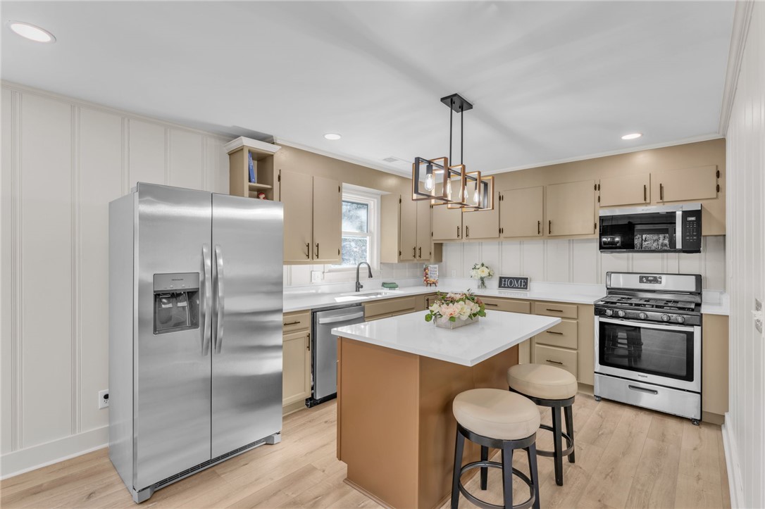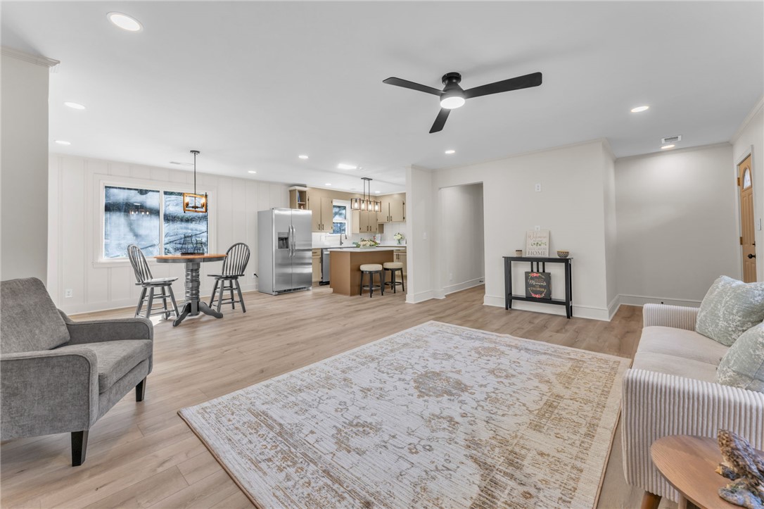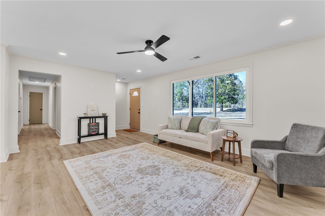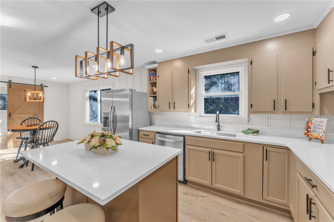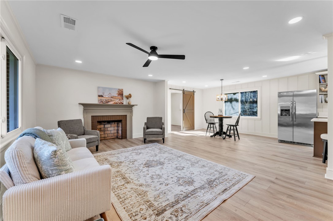 Where can you find the best of both worlds? Solid brick meets modern with this adorable all BRICK RANCH which has been completely RENOVATED from top to bottom. Step inside this beautifully updated 3 BEDROOM, 2 BATHROOM home which sits on nearly 2 ACRES OF UNRESTRICTED LAND and offers the perfect blend of privacy, space, and modern upgrades. BRAND NEW LVP FLOORING has been installed THROUGHOUT and FRESH PAINT adorns ALL the WALLS, TRIM, CEILINGS, AND DOORS. The open great room and kitchen feature NEW CEILINGS, RECESSED LIGHTING, UPDATED FIXTURES, and a newly added island with QUARTZ COUNTERTOPS and NEW SINK. The kitchen comes fully equipped with ALL STAINLESS STEEL APPLIANCES INCLUDED, featuring a GAS STOVE AND COOKTOP, NEW DISHWASHER, MICROWAVE, AND REFRIGERATOR. The living room also features a beautiful FIREPLACE (to be sold as is). The bathroom layout has been improved by converting it into a true primary bath with a NEW VANITY, SINK, AND CABINETRY, plus an ADDITIONAL BRAND NEW BATHROOM was ADDED TO THE HOME. Major system upgrades provide peace of mind including a BRAND NEW ROOF, BRAND NEW HVAC SYSTEM WITH ALL NEW DUCTWORK, BRAND NEW HOT WATER HEATER, BRAND NEW ELECTRICAL PANEL, AND BRAND NEW WINDOWS. NEW HARDWARE HAS BEEN INSTALLED as well for a polished finish throughout. Enjoy country freedom with no HOA and just under 2 acres giving you room for animals, workshop space, RV parking, or future expansion. If you're still reading this, wipe the drool off your face and race over here today before someone else snatches up this little gem!