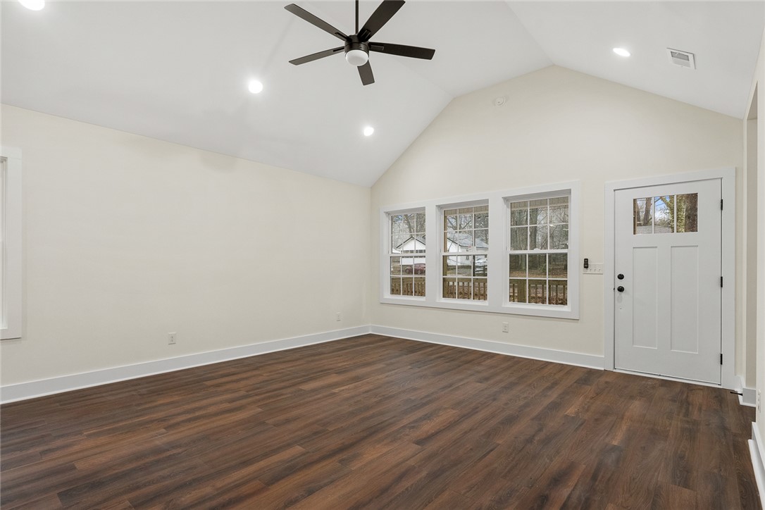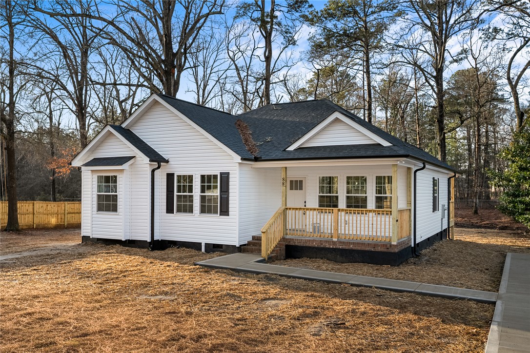 Welcome to life in Belton, South Carolina — a growing Anderson County community known for its small-town atmosphere, convenient location, and easy access to the larger Upstate markets. Situated inside the city limits in Ponderosa Heights, 88 Hand Drive places you minutes from downtown Belton, local schools, parks, and restaurants while remaining centrally positioned between Anderson and Greenville for a practical commute. Belton continues to attract buyers looking for value, space, and accessibility without heavy subdivision restrictions — and this property delivers exactly that. Built in 2026 by Gowan Brothers, this brand-new construction sits on a generous .71-acre corner lot with mature trees and usable yard space. With 1,555 heated square feet, the floor plan is designed around comfortable everyday living with open gathering areas and functional private spaces. The central living room (15’9” x 19’1”) flows directly into the dining area and kitchen, creating a cohesive main living space ideal for entertaining or daily routines. The kitchen is anchored by granite countertops, soft-close cabinetry, recessed lighting, a built-in microwave, electric range, dishwasher, and a walk-in pantry for additional storage. Luxury vinyl plank flooring runs throughout the home with no carpet, offering durability and clean visual continuity. Smooth ceilings and select 9’ ceilings enhance the open feel. The primary suite is positioned toward the rear of the home and includes a walk-in closet and a shower-only bath. Three additional bedrooms provide flexibility for guests, home office space, hobbies, or additional household needs. A dedicated laundry room with built-in storage space adds convenience without sacrificing square footage. Outdoor living is equally inviting with a covered front porch and a covered rear porch overlooking the level backyard. The .71-acre corner lot provides room to spread out while still being located inside city limits. The home is built on a crawlspace foundation and finished with architectural shingles, vinyl siding, vinyl windows, public water, and public sewer. No HOA restrictions. USDA eligible location. Inside Belton city limits with access to Marshall Primary, Belton Middle, and Bel-Hon Pth High School. Offered at $300,000 — a rare opportunity for new construction with land inside the city of Belton.