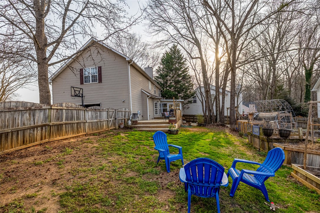 Welcome Home!! This wonderful, two-story, 4 bedroom, 2 1/2 bath home is every buyer’s dream. It is located in a well established neighborhood and sits on a corner of a cul-de-sac. It has an awesome sunporch that has windows; perfect for spring, summer and fall. It's a great place for relaxing. There is a large deck that includes space for a grill, table and chairs so that you can watch the fur babies play in the beautiful backyard. You will love the raised beds for a home garden. Chickens are allowed!! There is also a cozy fire pit area for roasting marshmallows for s'mores. You will love the formal dining room and home office with additional built-in shelving. The eat-in kitchen opens to the family room with cozy fireplace. Upstairs you will find the primary suite with spa-like bathroom. The additional bedrooms are generously sized. Several updates have been done to the inside of the home, an updated kitchen with quartz countertops, the half bath has been updated as well. Facade walls have been added to the large bedroom to create a flex space. The carpets have been professionally cleaned for the new owner. New LVP has been added to the lower level. Summerwalk Subdivision is very convenient to 385, grocery stores, restaurants, the YMCA and the library. In the summertime, you'll enjoy spending time in the neighborhood pool. You don't want to miss seeing this fabulous home!