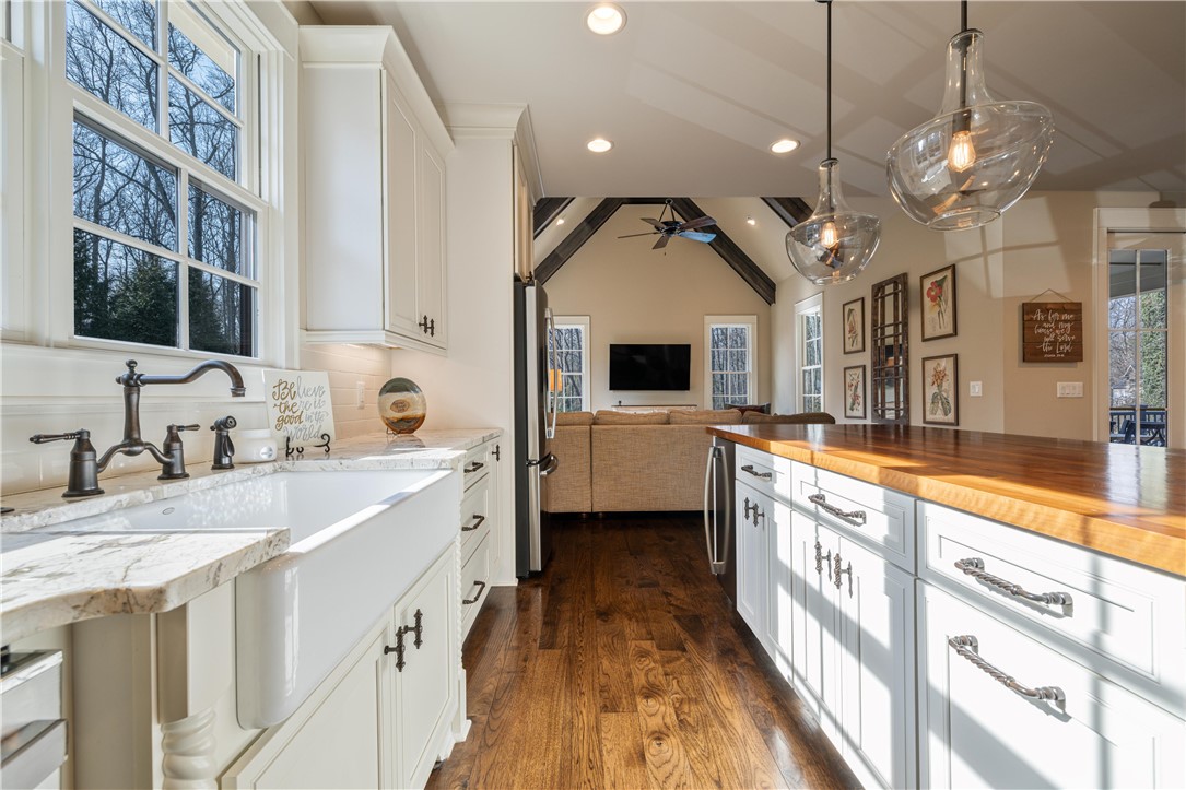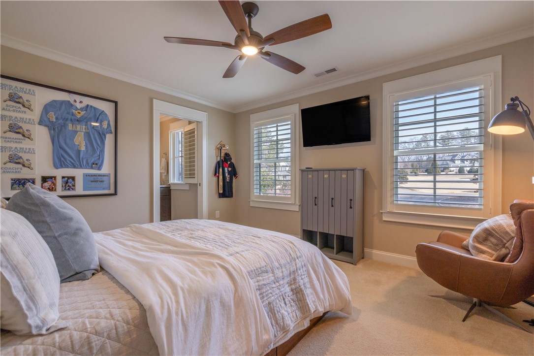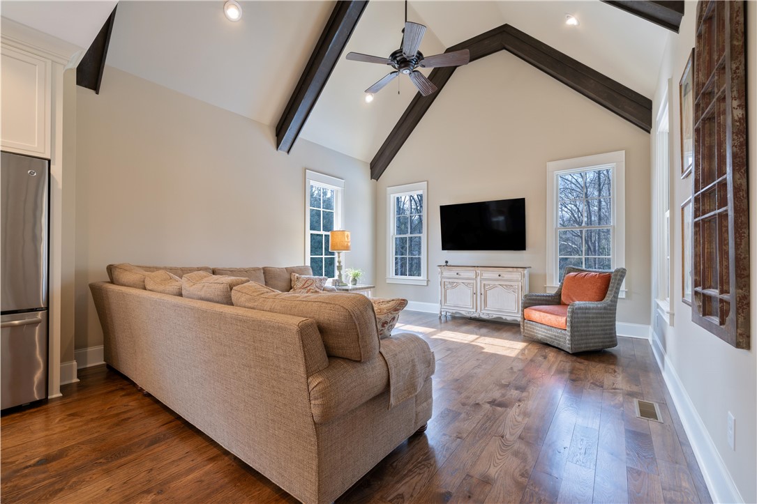Situated on a remarkable 1.7 acre lot in Clarendon Hall, this exceptional property offers an ideal balance of privacy, recreation, and elevated living in the heart of Clemson. Surrounded by a private backyard setting, the outdoor spaces are designed to maximize enjoyment and entertaining, featuring an expansive main-level deck - partially covered for comfort in every season - along with an oversized pool patio complete with its own bar. The grounds also include a basketball court, batting cage, and ample space to relax, play, and entertain. Inside, hickory hardwood flooring spans the main living areas, bringing warmth and natural character to the home. The main level offers an inviting and functional layout, including a formal dining room, a well-appointed kitchen showcasing a walnut-topped island bar, ample cabinetry and walk-in pantry, a breakfast area, and a spacious great room highlighted by an elevated fireplace that serves as a stunning architectural centerpiece. A keeping room just off the kitchen provides an additional gathering space, perfect for relaxed evenings or casual entertaining. The main level also includes a guest bedroom and full bath, offering comfort and convenience for visitors or flexible use as needed. Throughout the home, beautifully selected fixtures and finishes reflect a cohesive and refined aesthetic, complemented by a distinctive cedar garage door that enhances the home’s curb appeal. The owner’s suite serves as a luxurious private retreat, filled with natural light and designed with both comfort and elegance in mind. The spa-inspired bath features a dual vanity, generous walk-in closet, and an oversized walk-in tile shower. At its center, a gorgeous soaking tub creates a striking focal point - perfectly positioned to invite relaxation. The upper level provides two additional bedrooms, two full baths, plus a bonus room and a versatile loft area with a built-in desk, ideal for a home office, study space, or additional lounge area. The lower level expands the home’s versatility even further, offering a large recreation room, an additional bonus/flex room with bar and kitchenette, a bedroom, and a full bath - making it well-suited for guests or extended stays. Expansive unfinished storage areas provide exceptional capacity for organization, hobbies, or future customization. With its rare acreage, extensive recreational amenities, and beautifully executed interior spaces, this Clarendon Hall property offers a unique opportunity to enjoy privacy, comfort, and exceptional living just minutes from everything Clemson has to offer.