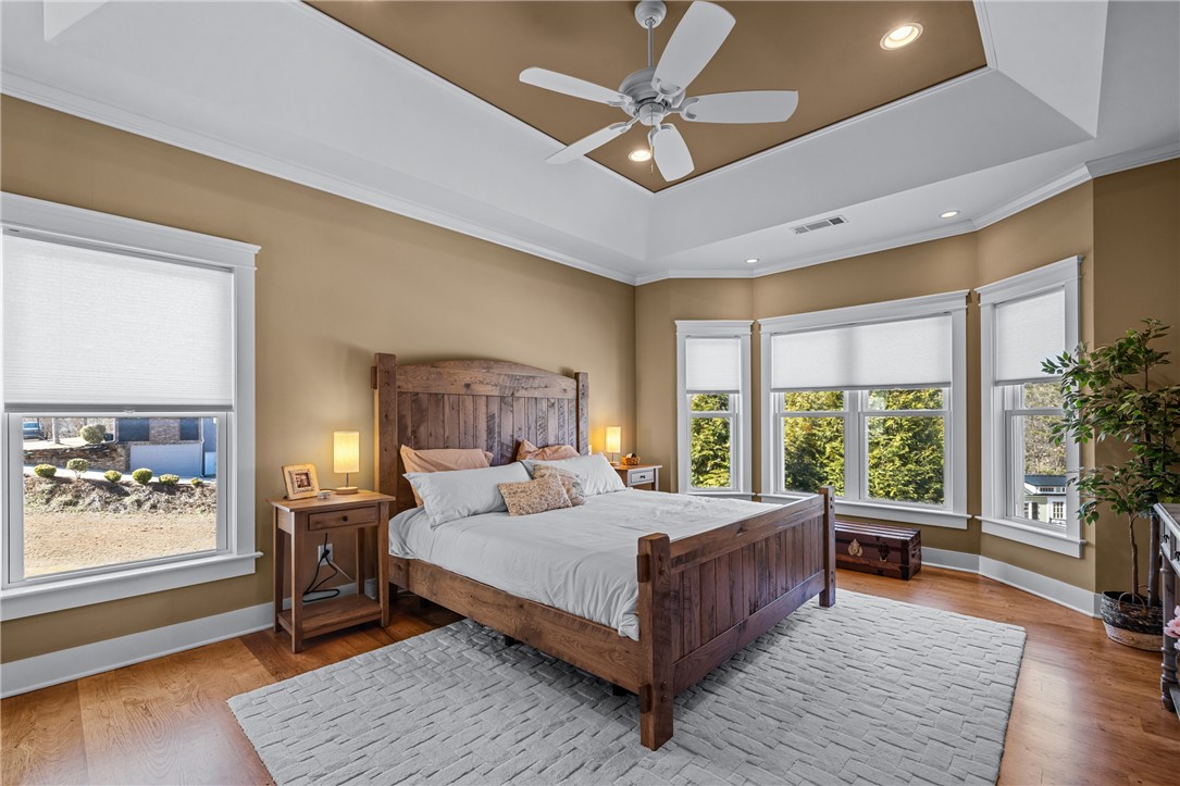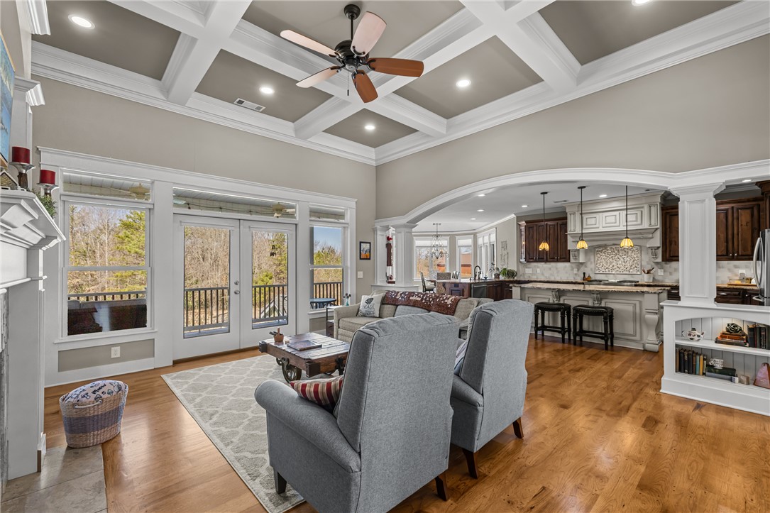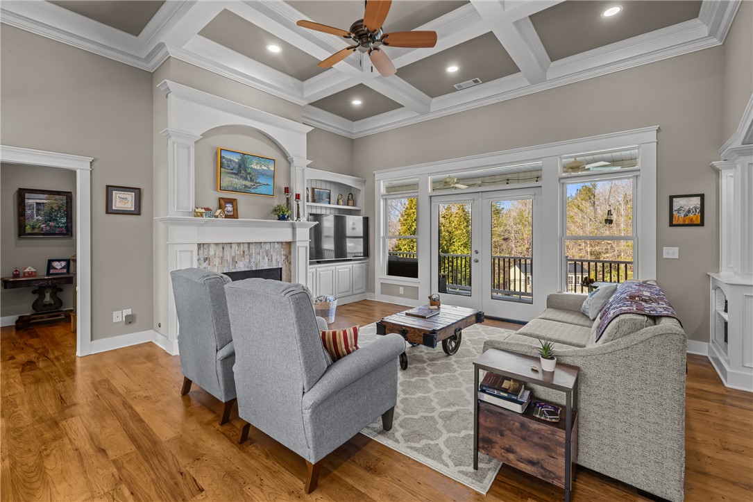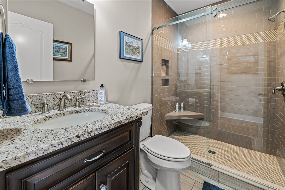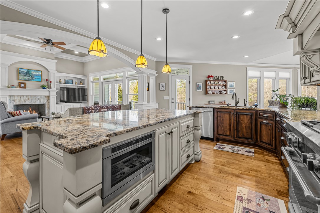Discover unparalleled privacy and natural beauty with this exceptional property in Blue Mountain Estates: a true retreat that combines stunning scenery, luxury finishes, and modern amenities. Enjoy a sense of serenity the moment you enter the open great room, complete with a dramatic stone gas fireplace, coffered ceilings, and an open-concept layout that flows effortlessly into the gourmet kitchen. The kitchen features granite countertops, stainless steel appliances, a gas cooktop, and a large center island that’s perfect for entertaining and gathering. Step directly from the kitchen onto the open porch, where you’ll be greeted by tranquil sounds of nature and sweeping views overlooking your outdoor pool and the Blue Ridge Mountains. The main-level owner’s suite offers two walk-in closets and a spa-like bath with dual vanities, a soaking tub, separate shower, and private water closet. Also on the main level are an additional full bedroom, a full bathroom, a convenient half bath, and a laundry room, all complemented by hardwood or hard-surface flooring. Downstairs, a generous rec/family room opens to a lower-level patio with direct access to the outdoor pool complex. This level also includes two additional bedrooms (one a private en-suite), two full bathrooms, a craft room, and ample space for future expansion or heated and cooled storage. Once outside, you will be truly impressed by the thoughtfully designed outdoor living space and hardscape. Lounge on the lower patio or relax on the incredible upper porch while taking in the sights and sounds of your private saltwater pool, fire pit, and grilling/cooking station. This exceptional home has been meticulously maintained and is ready for a new family to begin making memories that will last a lifetime.