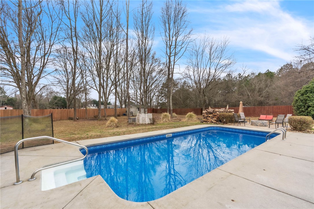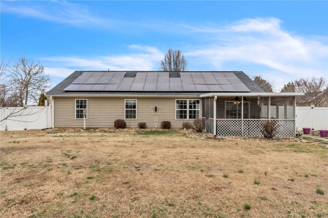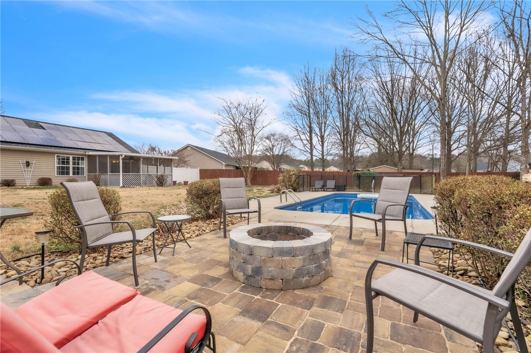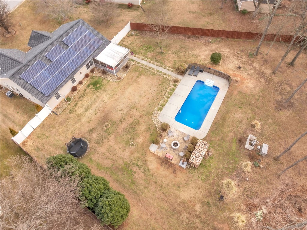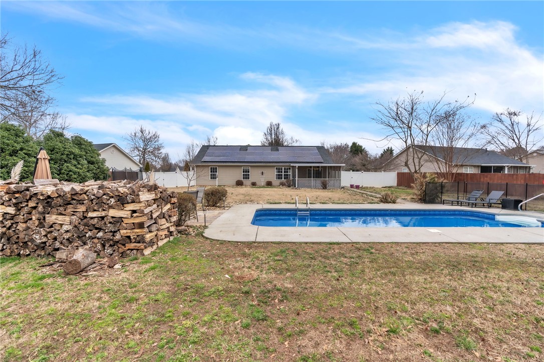 Welcome home to this beautifully maintained 3-bedroom, 2-bathroom property in Williamston, offering 1,600 square feet of comfortable living space on an almost 2/3-acre lot! Step inside to an inviting open floor plan designed for both everyday living and entertaining. The spacious living area flows seamlessly into the kitchen, complete with stainless steel appliances and plenty of workspace. A versatile bonus room—currently used as a home office—provides the flexibility you need for remote work, a playroom, hobby space, or additional lounge area. Major updates bring peace of mind, including a roof replaced in 2023. Even better, the solar panels are fully paid off and convey with the home, offering energy efficiency and long-term savings. The backyard is truly a private retreat. Enjoy warm summer days in the immaculate in-ground pool, then relax in the beautiful screened-in porch overlooking the expansive yard. A newly added outdoor stone patio and fire pit area near the pool creates the perfect setting for gatherings with family and friends year-round. Need extra storage or workspace? The outbuilding—pre-wired for electricity—offers endless possibilities for a workshop, studio, or additional storage. With modern upgrades, incredible outdoor living spaces, and a generous lot size, this home offers the perfect blend of comfort, efficiency, and lifestyle. Don’t miss your opportunity to own this backyard oasis!