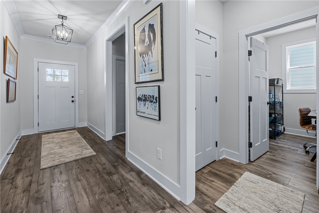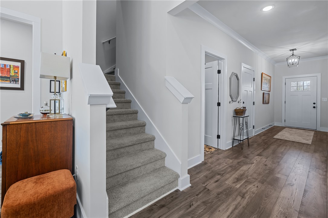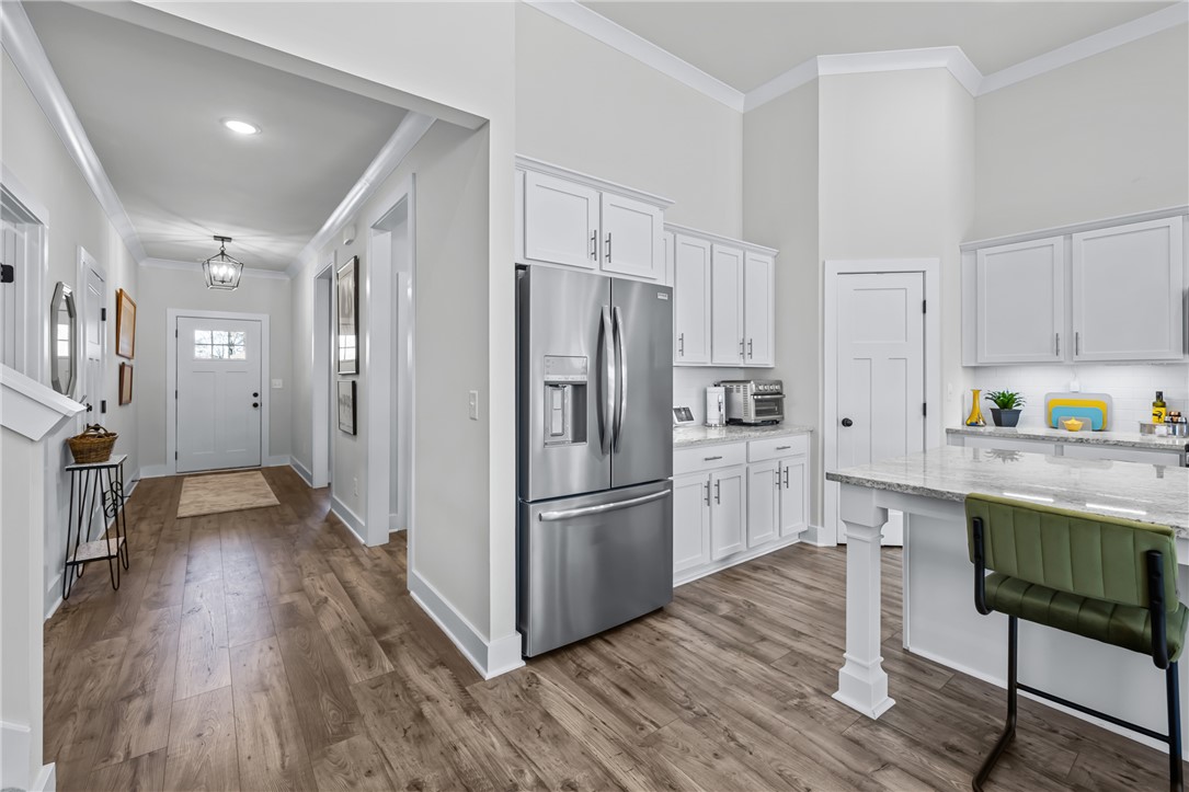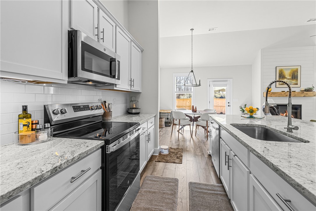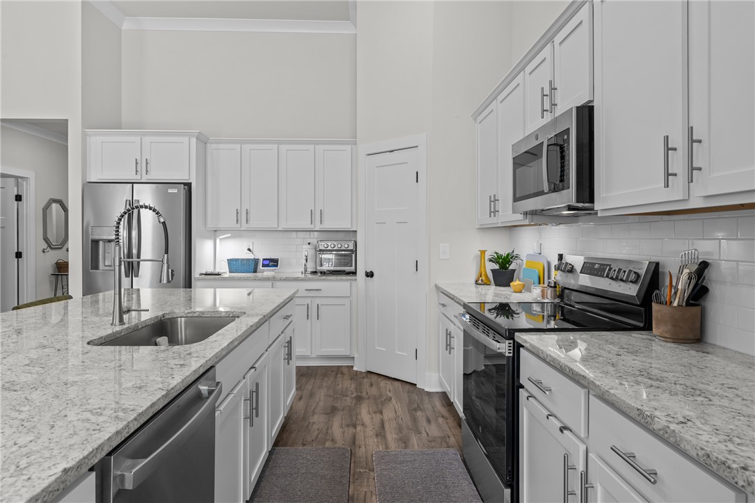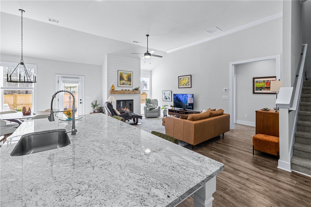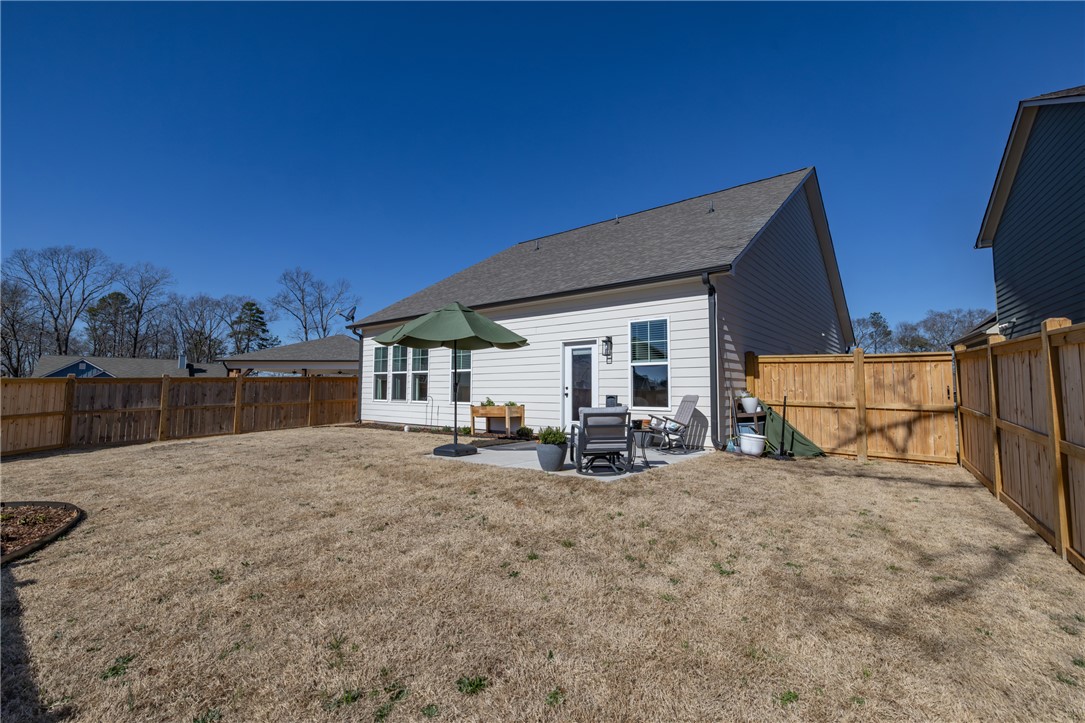 Newer home in Hartwell city limits yet close to Lake Hartwell. This elegant three-bedroom, three-bath will delight your fussiest buyers. Open floor plan with high ceilings yet warm and inviting. Main floor design is perfect for family gatherings and entertaining. Gorgeous kitchen with walk in pantry, perfect space for the chef in your family. Fenced yard allows for added privacy and a place for pets or a garden. Main level guest room with full bath, and a spacious primary bedroom with a gorgeous bathroom each with quality upgrades. Primary bathroom has an oversized shower and large walk-in closet. Additionally, you will find a separate laundry room, plus flex space for office or crafts. Upstairs is a large third bedroom with full bathroom which could also be used as a media room or office. Don't delay come and see for yourself, a quality home at a great price!!