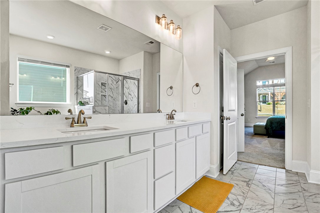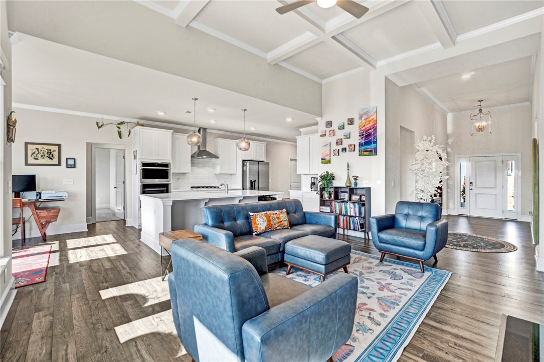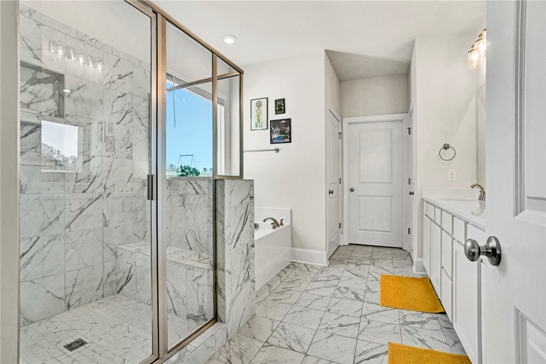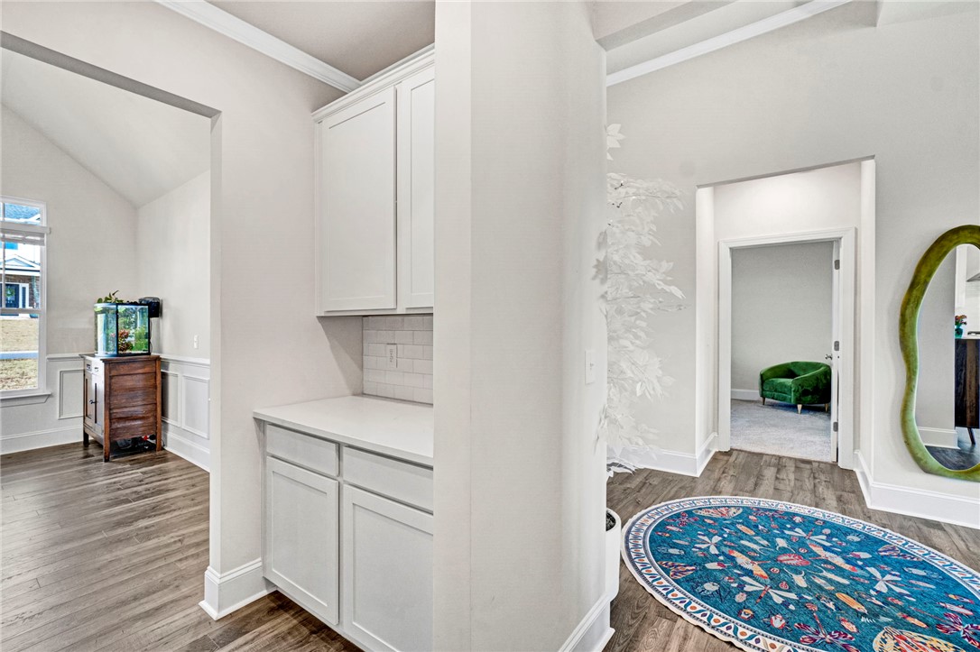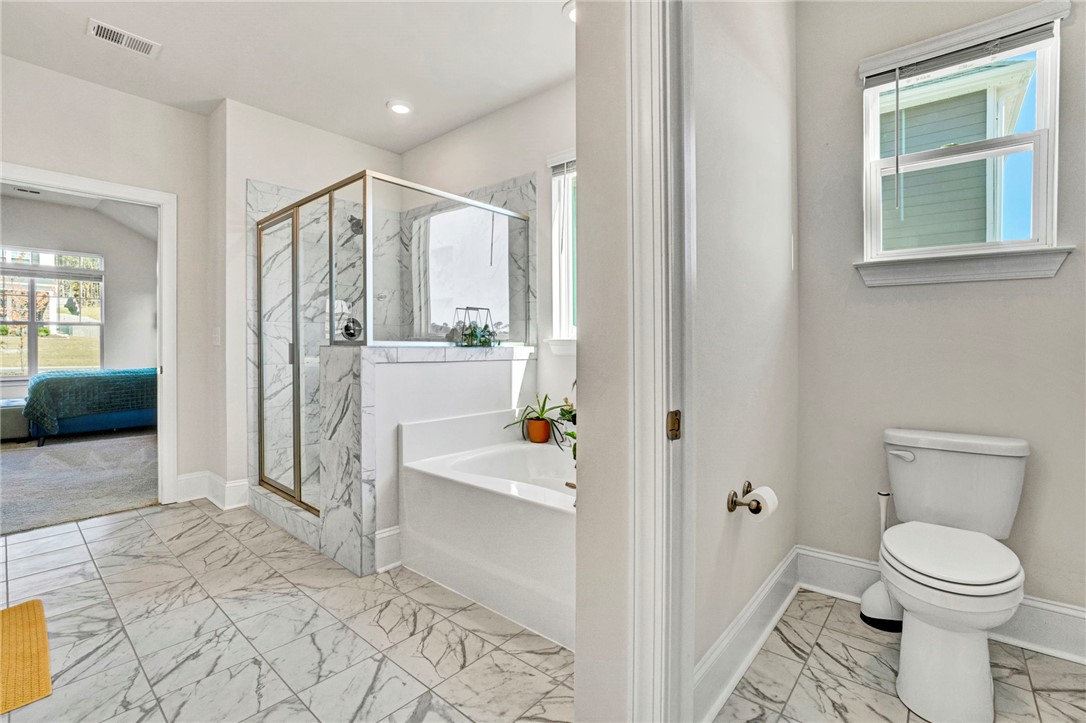 Welcome to 142 Juniper Hill Drive, a stunning one-level home in the highly sought-after Carriage Hill Subdivision of Powdersville. Built in 2024 and meticulously maintained, this exceptional property blends the benefits of new construction with the warmth and thoughtful personal touches of its current owners. Designed for everyday living, every detail has been carefully curated to offer comfort, connection, and convenience. The striking stone and Hardie plank exterior, paired with fresh landscaping, creates curb appeal that even the most discerning eye will appreciate. Step through the front door, framed by elegant sidelights, and immediately notice the soaring ceilings and light-filled open floor plan that welcomes you home. To the right of the foyer, a beautiful formal dining room features vaulted ceilings, classic wainscoting, and expansive windows. A butler’s pantry connects this space to the gourmet kitchen making entertaining effortless. The kitchen is truly a showstopper with it's quartz countertops, abundant shaker-style cabinetry, a gas range with stainless steel hood, wall oven, built-in microwave, and an oversized pantry. The large island provides additional prep space, storage, and generous seating to keep family and guests connected. A sunny breakfast area connects to the kitchen and overlooks a stunning living room, where coffered ceilings, custom floor-to-ceiling built-ins, and a gas fireplace create a warm gathering space. Windows lining the rear of the home frame a gorgeous view and offer plenty of natural light. Tucked away from all of the action, the primary suite showcases vaulted ceilings and an ensuite bath complete with dual vanities, a soaking tub, walk-in shower with bench, separate water closet, and an enormous walk-in closet. The thoughtfully designed split floor plan places two additional bedrooms and a full bath on the opposite side of the main level. A walk-in laundry room and access to the two-car garage complete the first floor. Upstairs, you’ll find ideal accommodations for guests or teens, including a fourth bedroom, full bathroom, and versatile flex space perfect for a media room, playroom, or secondary living area. Outdoor living is just as inviting. Enjoy evenings on the covered back patio overlooking a fully fenced backyard. The home’s elevated position provides beautiful treelined views and a truly private feel while still enjoying the benefits of neighborhood living. Residents of Carriage Hill enjoy a walkable, friendly community atmosphere with scenic surroundings and a neighborhood pool. Conveniently located just minutes from shopping, dining, Hwy 153, and I-85, this home offers the perfect balance of seclusion and accessibility. No updates needed here - just move in and enjoy beautiful and comfortable living at its best. Schedule your showing today! Please note that taxes are currently assessed as a second home and will be significantly less expensive if home is used as a primary residence.
