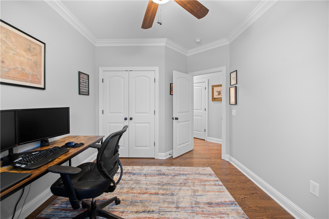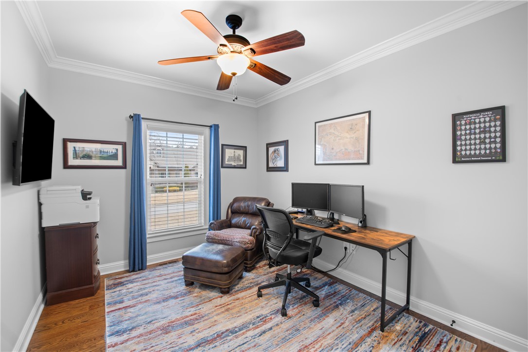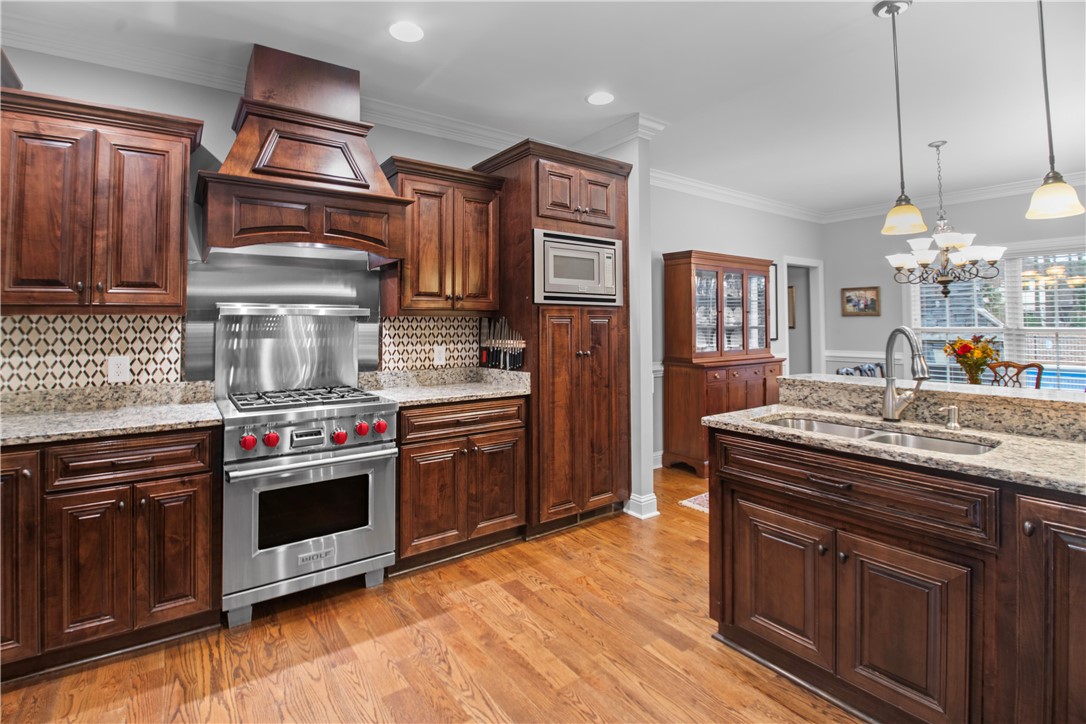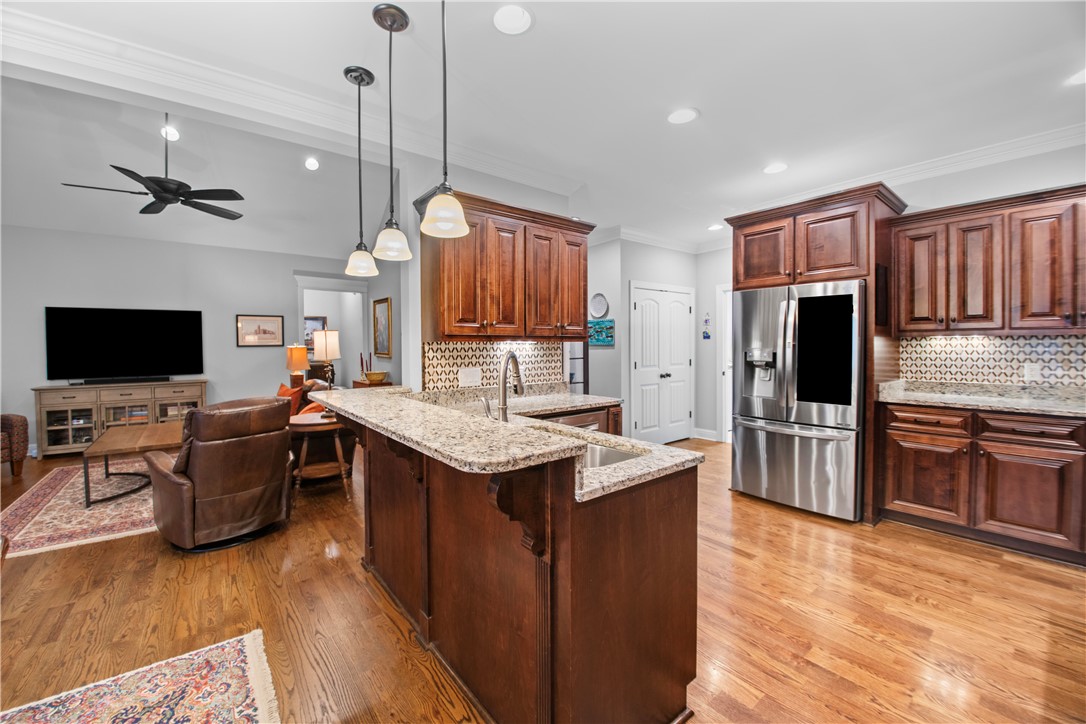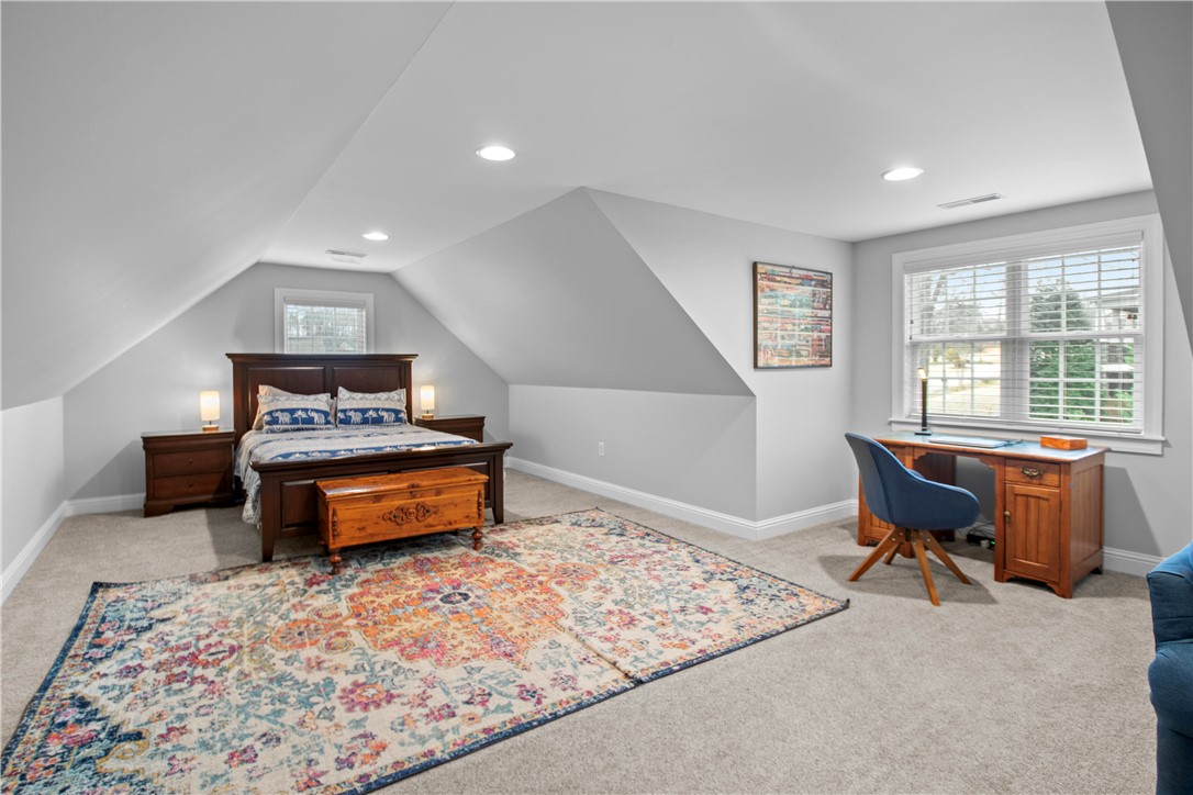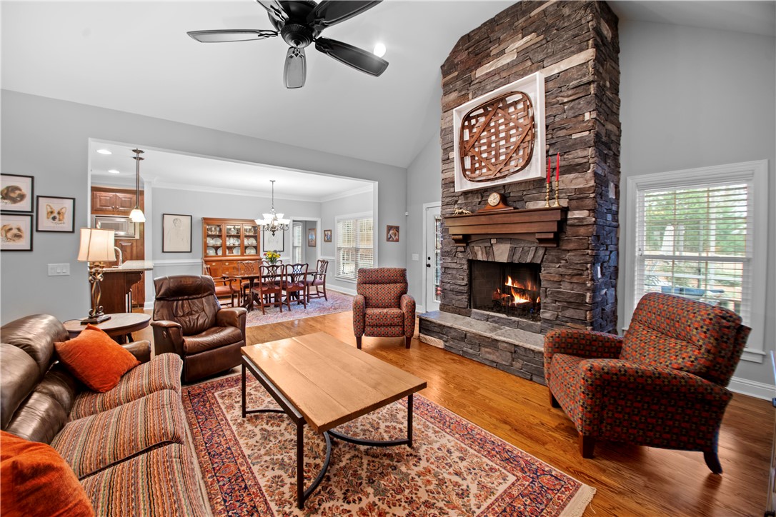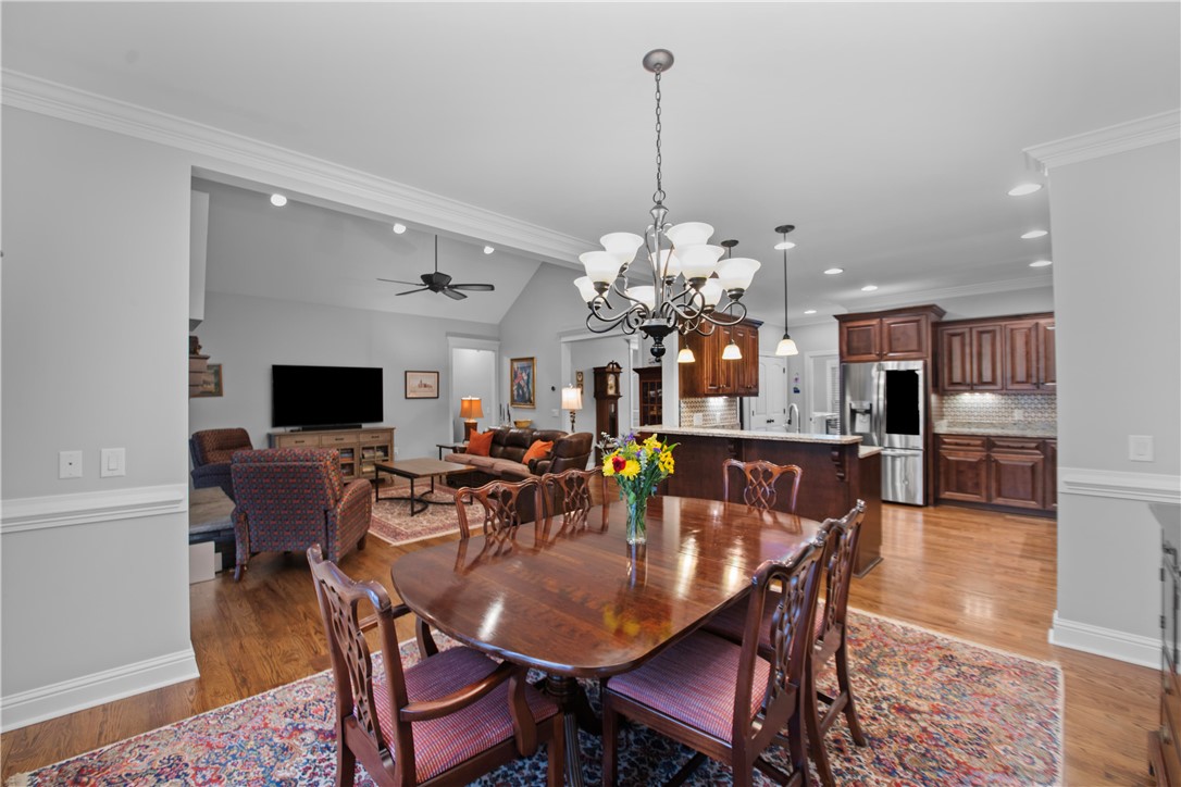 Tucked away in the sought-after Lantern Ridge subdivision in Powdersville, SC, this beautiful 4-bedroom, 3-bath single-family home is the perfect mix of warmth, style, and everyday convenience. Step inside and you’ll immediately notice the gleaming hardwood floors that run throughout the main level. The open layout makes entertaining easy — and with premium appliances in the kitchen, including a dual fuel Wolf range and Bosch dishwasher, you’ll love cooking and hosting friends and family. The kitchen has a large pantry, under cabinet lighting , and abundant storage, opening to a large dining area and living area with a gas fireplace. The main level features a spacious primary suite with jetted tub, walk-in custom closet, and his-and-her-sinks and two additional main-level bedrooms and full bath - great for guests and a home office. Upstairs you will find a large bedroom with a full bath, making it the perfect guest suite, teenage suite, or hangout space. And let’s talk about your backyard oasis — a sparkling saltwater pool (with a brand-new liner and robotic pool cleaner in 2025), a screened porch, and a patio with a wood-burning fireplace set the stage for relaxing summer evenings and fall get-togethers by the fire. Car enthusiasts or entertainers will love the three-car garage, with one bay transformed into a heated and cooled bar area. Enjoy watching games and movies on the projector screen or hosting friends year-round. Just roll up the garage door and you have an amazing inside/outside venue. In addition, the double car garage is oversized, giving you amazing storage options. Add in a brand-new roof (2025), award-winning Powdersville schools, and a fantastic neighborhood vibe, and you’ve found a home that truly has it all. All measurements may not be exact. Buyers should verify if it is important.