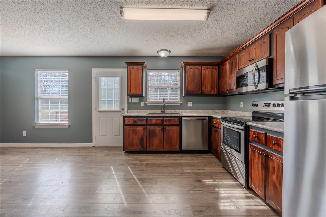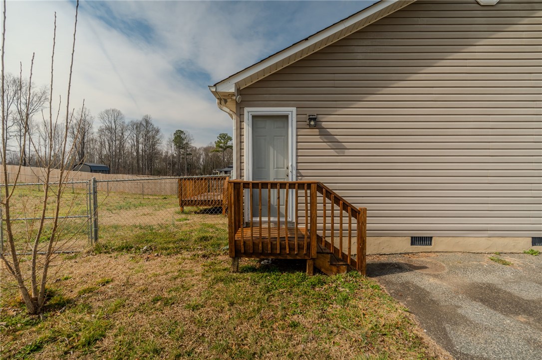 Welcome home to this beautifully maintained property featuring a large front yard with a classic white picket fence and a charming front porch perfect for relaxing evenings. Step inside to a pretty living room filled with natural light from a large front window, offering plenty of space for gathering and entertaining. Attractive vinyl flooring runs throughout the main living areas, adding both style and durability. The kitchen is well-equipped with stainless steel appliances, including a built-in microwave and dishwasher. You'll love the generous counter space and the flexibility to add an island or breakfast bar. The adjoining dining area is thoughtfully arranged to accommodate a large table with ease. The spacious primary suite is truly oversized, offering enough room for a sitting area. It features a private bath and a walk-in closet. A desirable split-bedroom floor plan places two additional bedrooms and a guest bath on the opposite side of the home for added privacy. Additional highlights include: Laundry room and mud room that can be closed off, Fresh interior paint, New vinyl flooring in the mud/laundry room, Roof replaced in 2017, and HVAC system replaced in 2021. Enjoy the large fenced backyard with additional property beyond the fence line—ideal for entertaining, gardening, or simply relaxing. Beautiful blooming flowers and mature landscaping create a warm welcome. Conveniently located just 1 mile from the lovely town of Inman, and 20 minutes to Spartanburg. 25 minutes to Greenville-Spartanburg International Airport. 30 minutes to BMW and 40 minutes to Greenville. This move-in ready home offers space,comfort, and convenience—all in a fantastic location.