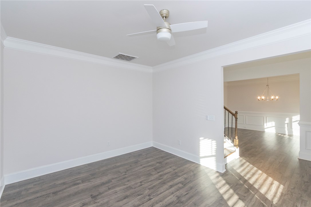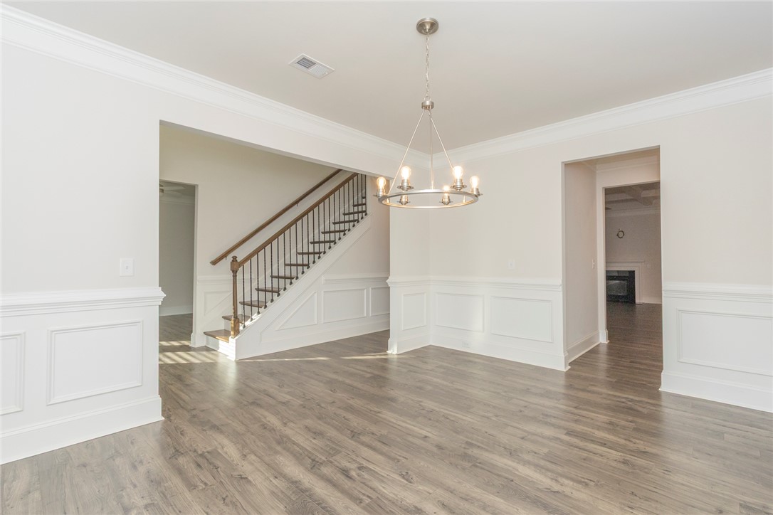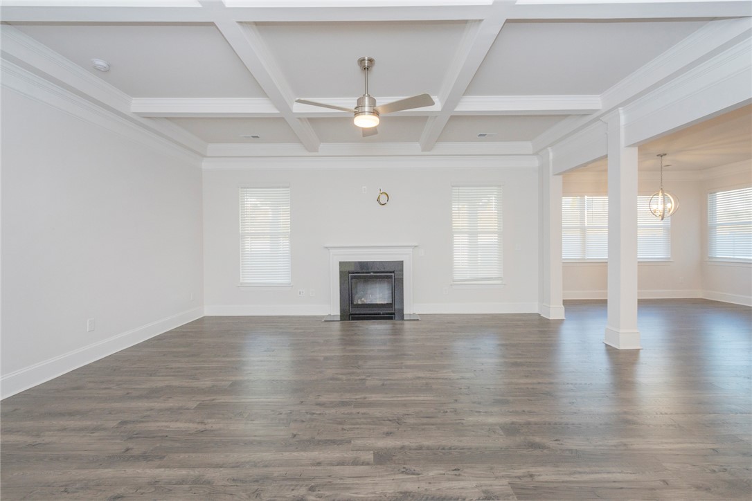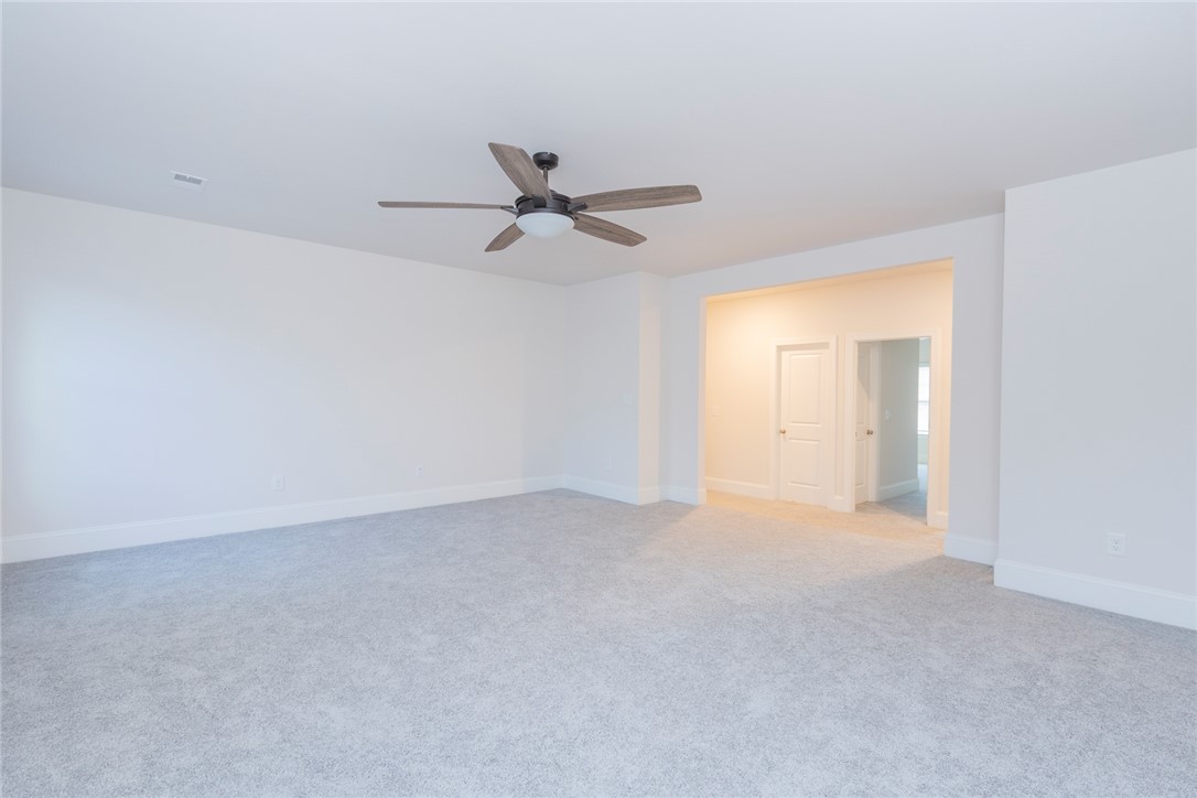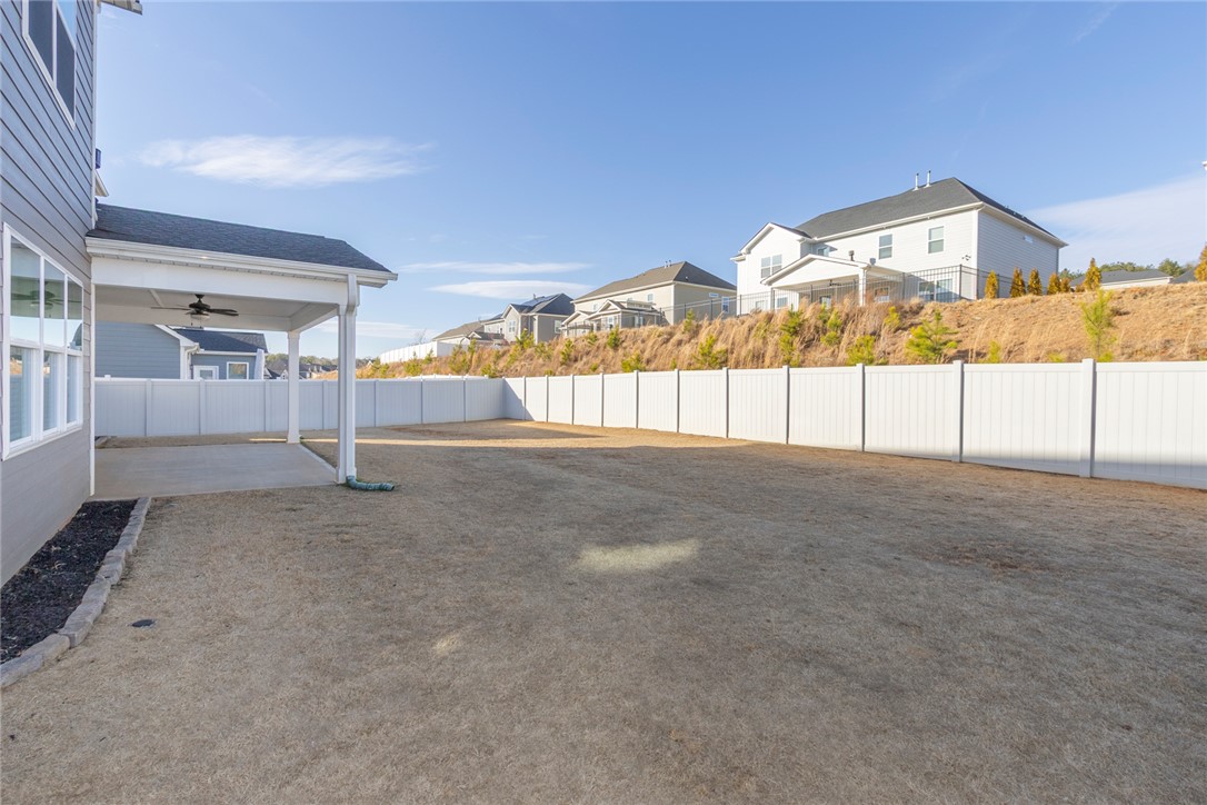 Built 2022 this like new home is located in popular Powdersville and its' District 1 school system. Carriage Hill provides homeowners with an abundance of community social events around its' pool and clubhouse. With its convenient location and easy access to I85, schools and shopping needs and within 30 minutes you can be at downtown Greenville's entertainment venues and restaurants. Floorplan is the popular Springfield which provides 5 beds, 2 of which feature multiple owners suites; 1 for each floor. Entry from covered front porch to the soaring ceiling foyer with sturdy LVP flooring throught main living areas. Formal dining room and office/flex room at front of home. Open plan kitchen and breakfast areas with custom features of coffered ceiling, crown molding, wainscoating, gas log fireplace and quartz countertops. Wow, what a fabulous kitchen for food prep and entertaining. Gas cooktop, wall ovens, pantry storage and stainless appliances all remain. Seating is provided with the cozy eat in area as well as barstool level seating. Outdoor grilling is made easy with access door to covered patio overlooking the fenced backyard with inground irrigation system. One bedroom with private full bathroom completes the main floor. Second floor with additional 4 bedrooms and a second flex / bonus room; perfect for media, playroom or home office needs. Owners suite features a separate sitting area, multiple storage closets, soaking tub, tiled walk in shower and private water closet. 2 full bathrooms and one being accessible from the bedroom. Come see for yourself this move in ready home within an establishlished subdivision.