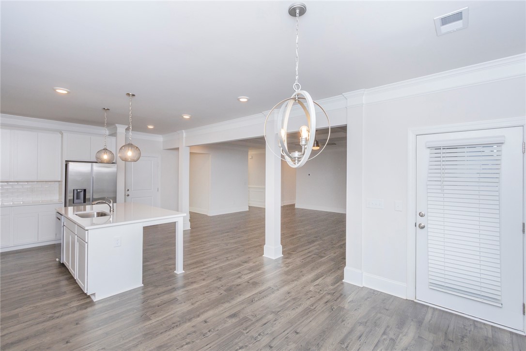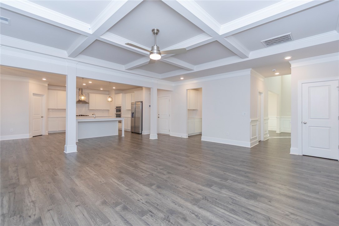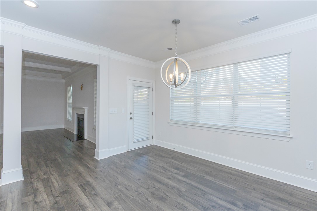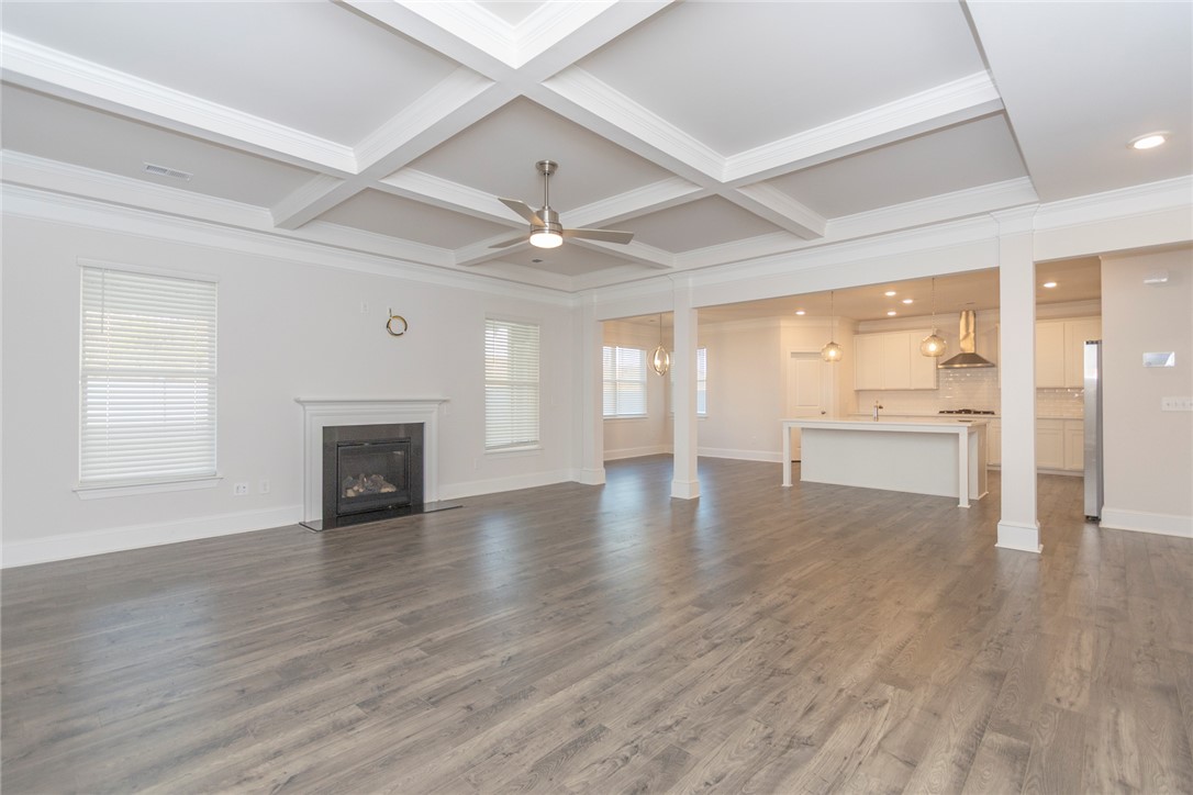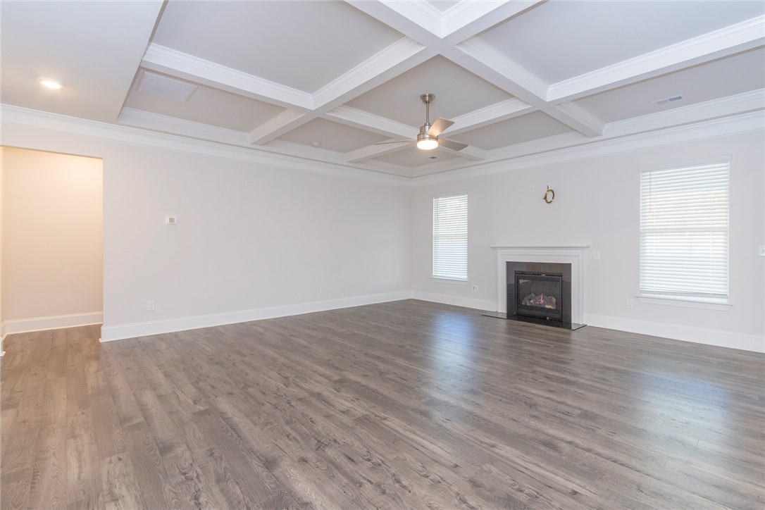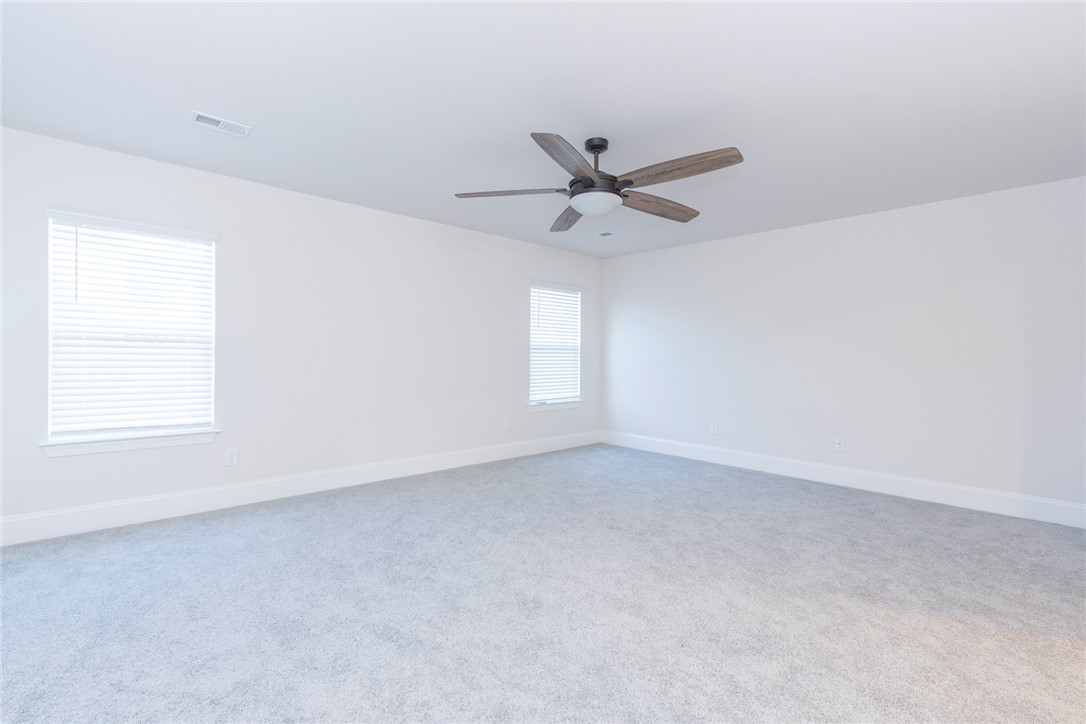 Built 2022 this like new home is located in popular Powdersville and its' District 1 school system. Carriage Hill provides homeowners with an abundance of community social events around its' pool and clubhouse. With its convenient location and easy access to I85, schools and shopping needs and within 30 minutes you can be at downtown Greenville's entertainment venues and restaurants. Floorplan is the popular Springfield which provides 5 beds, 2 of which feature multiple owners suites; 1 for each floor. Entry from covered front porch to the soaring ceiling foyer with sturdy LVP flooring throught main living areas. Formal dining room and office/flex room at front of home. Open plan kitchen and breakfast areas with custom features of coffered ceiling, crown molding, wainscoating, gas log fireplace and quartz countertops. Wow, what a fabulous kitchen for food prep and entertaining. Gas cooktop, wall ovens, pantry storage and stainless appliances all remain. Seating is provided with the cozy eat in area as well as barstool level seating. Outdoor grilling is made easy with access door to covered patio overlooking the fenced backyard with inground irrigation system. One bedroom with private full bathroom completes the main floor. Second floor with additional 4 bedrooms and a second flex / bonus room; perfect for media, playroom or home office needs. Owners suite features a separate sitting area, multiple storage closets, soaking tub, tiled walk in shower and private water closet. 2 full bathrooms and one being accessible from the bedroom. Come see for yourself this move in ready home within an establishlished subdivision.