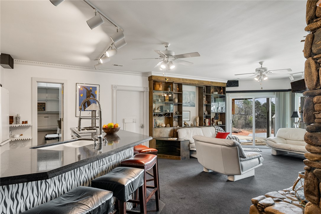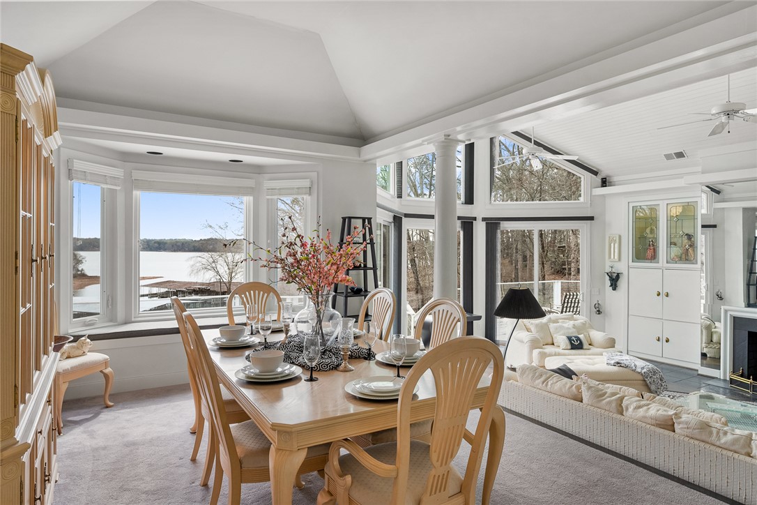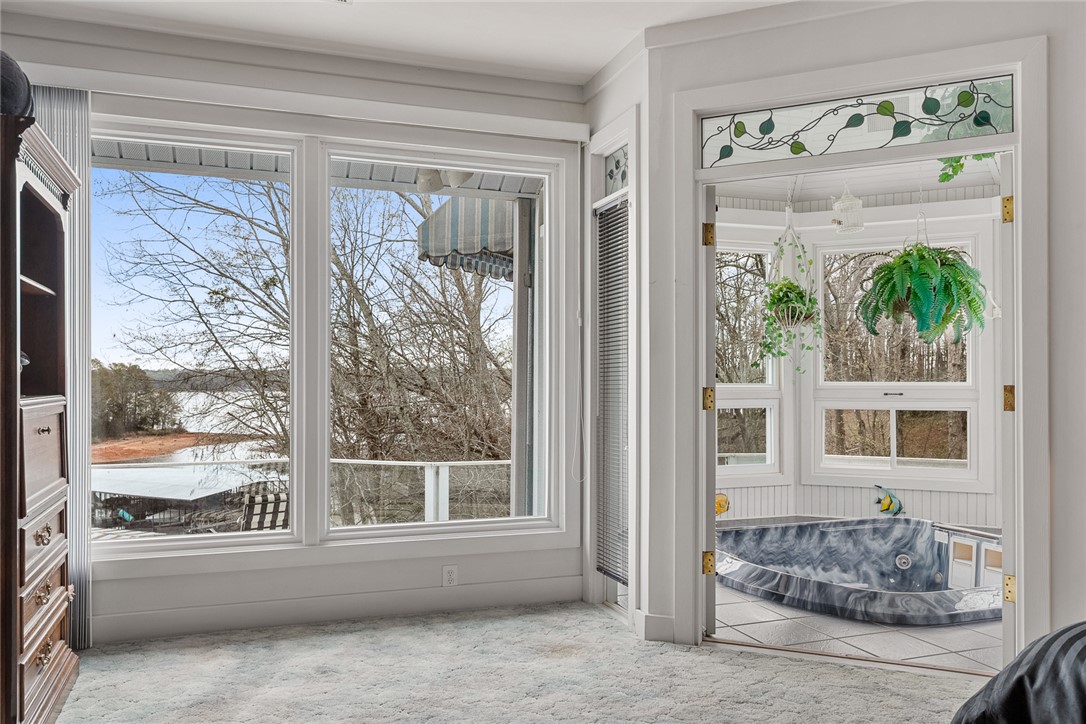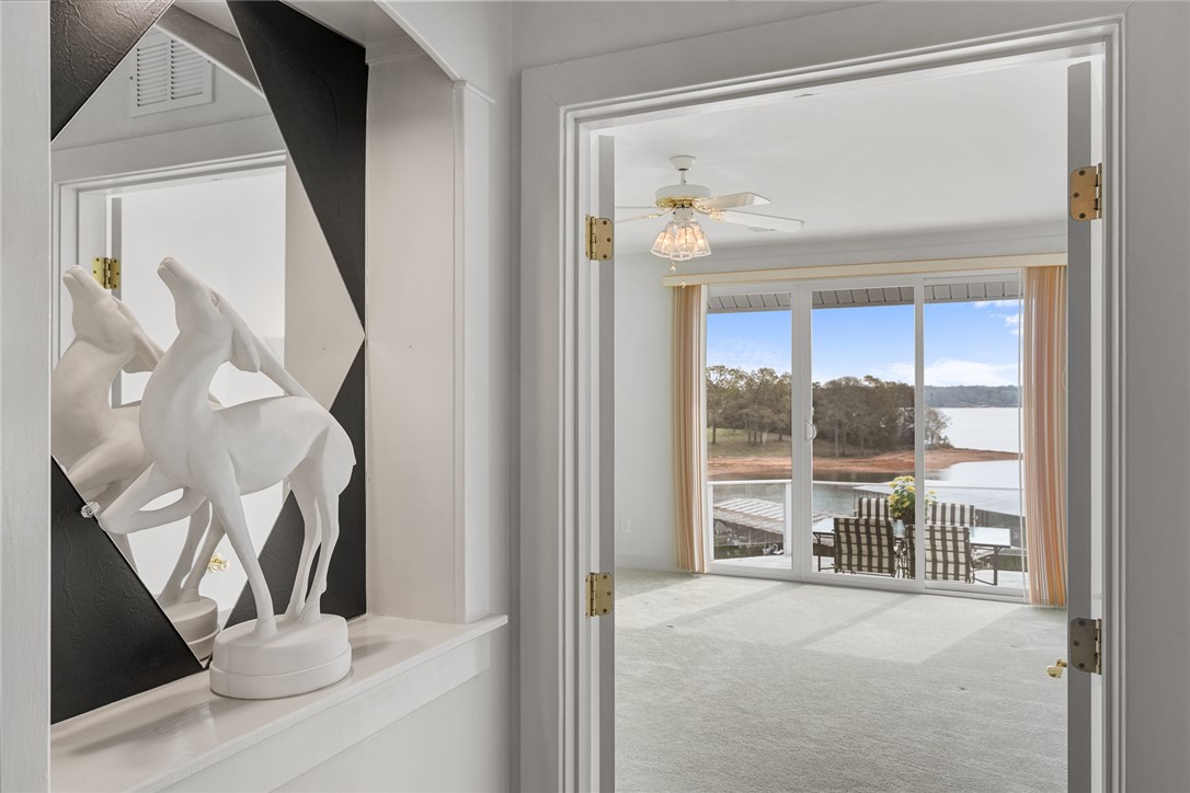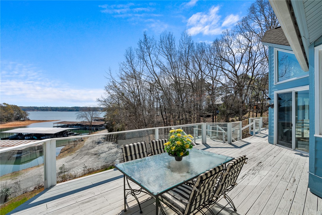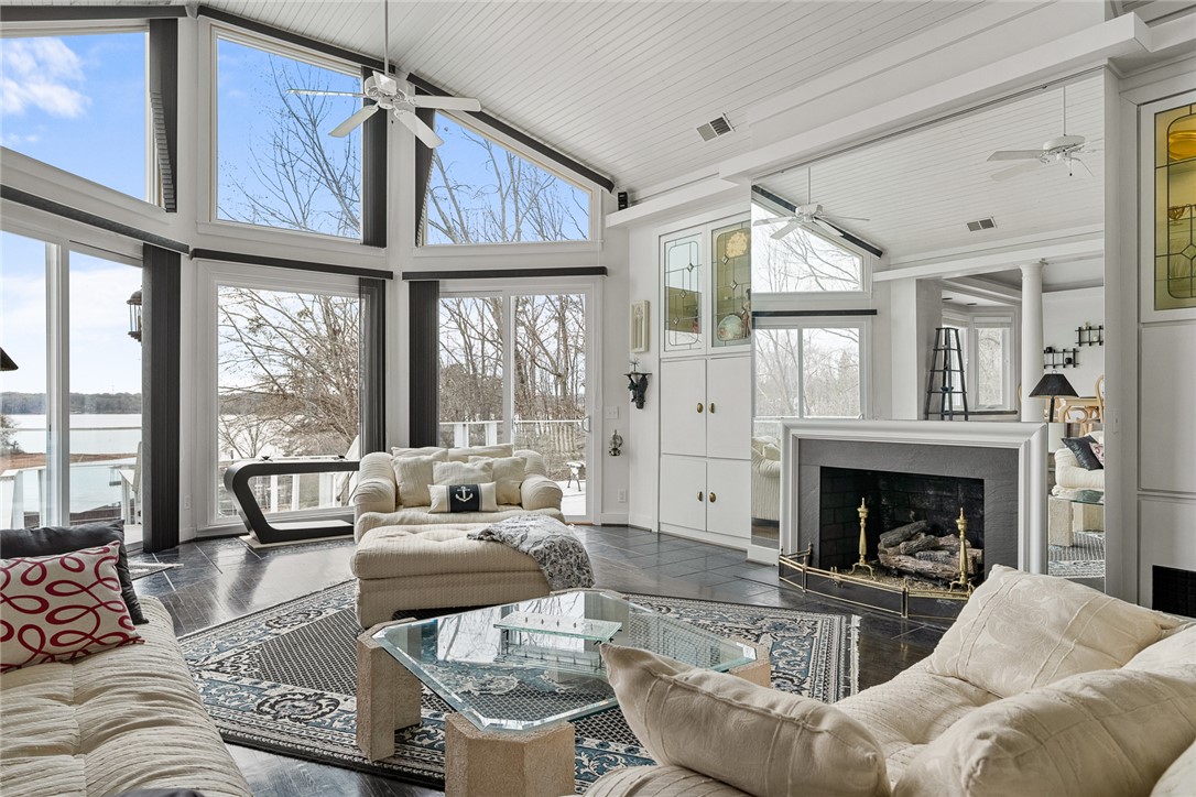 Location Location Location! Beautiful waterfront home situated on a double lot with over 200 feet overlooking slips 1-4 at Portman Marina on Lake Hartwell. Enjoy the convenience of being within walking distance to The Galley Restaurant and boat ramp. This exceptional 3 bedroom 3 1/4 bath home has an ideal layout with lake views from almost every room! At the time this home was built, no expense was spared to create a modern, sleek, contemporary, high-end oasis with room to relax and entertain in mind. The home features two levels of living space with a chair lift providing easy access between floors when needed. Both floors come with their own primary bedroom with ensuite, large walk-in closet, full kitchen, laundry and fireplaces with gas logs making it perfect for multi-generational families, guest or flexable use. This property features a spacious two car garage for your vehicles with an additional garage door, perfect for golf cart or boat storage. The workshop area comes with an abundance of storage and is sure to please! The garage is more than just functional; it's designed for entertaining and convenience, currently setup with a rotisserie cooker, refrigerator and drink station with Nutone built in blender. Outdoor features are just as impressive and truly set this property apart: a concrete pad for RV/Boat parking, grand 10 ft tall front door with stain glass inserts on each side and motorized retractable awning, new concrete retaining wall with fence, new pair of deck stairs/post to upper deck, covered patio area with natural stone flooring and built in Dynamic Cooking System's gas grill, outdoor shades and upper deck spanning the entire length of house with tempered glass for unobstructive lake views. Your pet(s) will enjoy having their own automatic doggy door access. Upon entering downstairs, The bar/kitchen set up may just be your favorite part of the house and most used by family and friends! The large walk in pantry with pass through to garage is a unexpected surprise. A striking fireplace made with river rock with anchor fire dogs and gas logs will grab your attention as will the floor to ceiling built in bookcase. You won't be lacking in room or closet space in this generous size bedroom with ensuite. Once upstairs, you will step into elegance with a open concept layout, showcased by large windows to let in all the natural light! This levels HVAC features 3 zone climate control for enhanced comfort. Notice the sunken living room,16 foot ceiling with mirrored wall fireplace, gas logs, built in lighted cabintry to display treasured items and stereo system with bose speakers. Main level kitchen features a commercial refrigerator and name brand appliances to include JennAir. Split level placement of the 2 bedrooms and bathrooms offers privacy while the primary suite feels like a vacation get away with having its own hot tub and access to the upper deck. This home offers a contemporary feel with unique features throughout. Quality built home where the major conponents are in place with updates in the last year to include electrical and plumbing. Being able to obtain this location in such close proximity to Portman Marina is truly rare! Conveniently located near I-85 if communting to Greenville. Come experience life in The Shoals community of Lake Hartwell in Anderson!