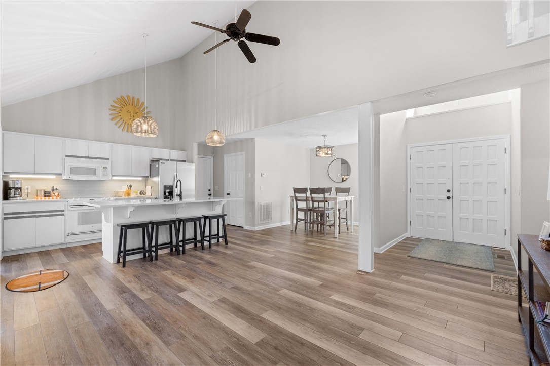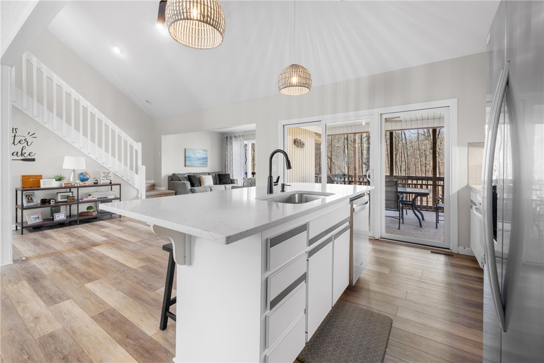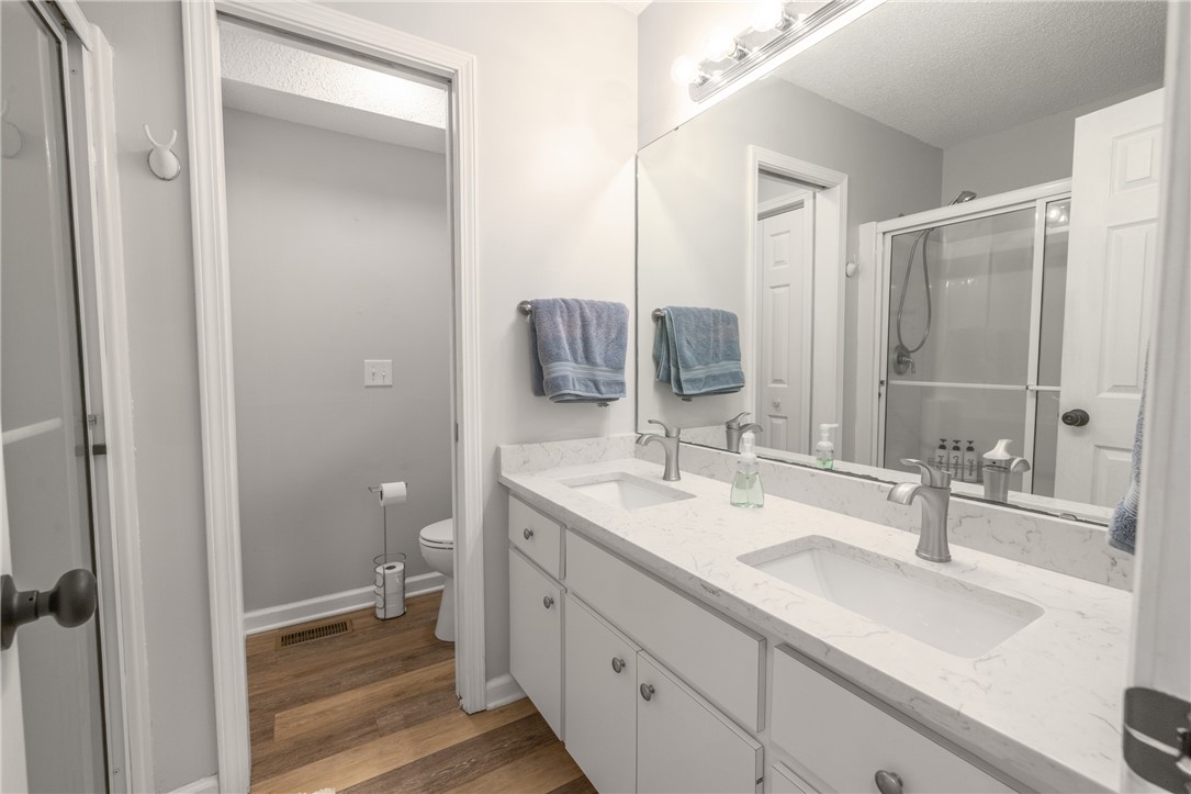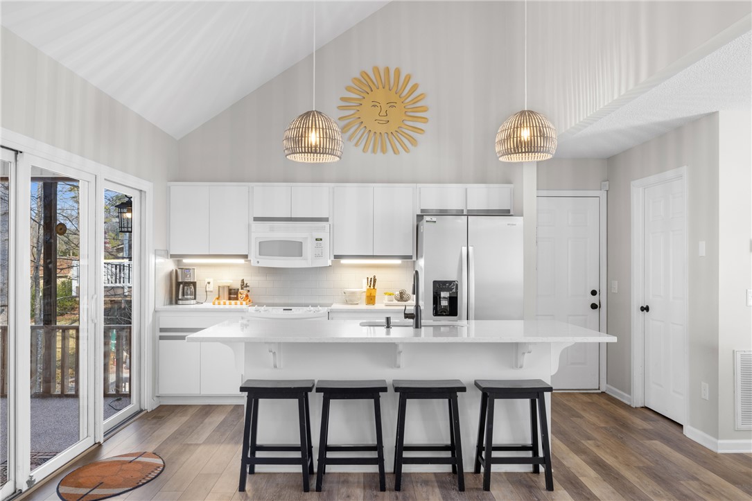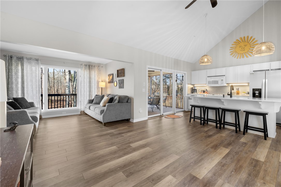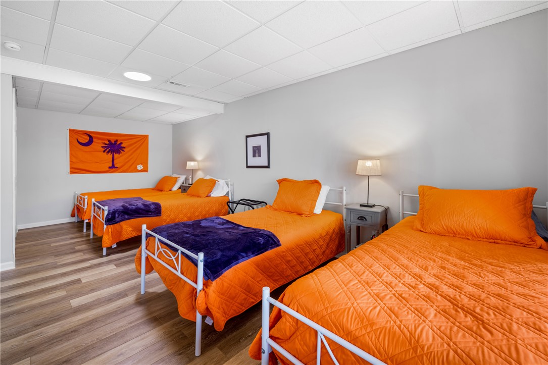 Lakefront on a quite cove on Hartwell with a dock in place, and only minutes from Clemson and campus! Beautifully updated, with loads of natural light, this perfectly sized home offers features that make for a rare find. Four bedrooms, including a primary on the main with walk-in closet. Gleaming white kitchen with stainless appliances is open to the living and dining areas, and centers on oversized quartz island with room for extra seating. Two screened porches, separated by an open deck for grilling, offer spectacular lake views and space for a dining table off the kitchen and a hot tub off the primary. Two bedrooms on the upper level share a nicely sized hall bath. The lower walk-out level houses the fourth bedroom, hall bath with tiled shower, and a large recreation area. All flooring is durable LVP. Storage for lake toys is climate controlled and can be accessed via inside or out. A covered patio on the lower level is perfect for entertaining family and friends. Lot is loving landscaped, and level with easy access to the covered dock, constructed of strong, long-lasting ipe wood. All of this and an easy 15-minute drive to Clemson for shopping, dining, cultural arts and sporting events. Do not miss this opportunity to claim this Hartwell lakefront home your own. Furnishing package available