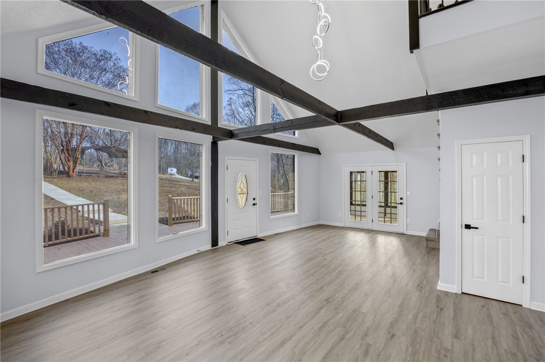Back on the market - no fault of the seller. Fountain Inn, SC – Renovated 3BR/2BA on 3 Acres. Surrounded by mature trees, this beautifully updated home offers a private setting and 1,000 sqft of deck space to enjoy the outdoors. Inside, you’re welcomed by soaring 20-foot ceilings and grand windows that create a bright, open main living area, flowing seamlessly into the sunroom and upstairs to the primary bedroom. Additional highlights include a large basement storage room and two storage sheds, providing ample space for tools, hobbies, or equipment. Recent upgrades include a newer roof, updated electrical, new moisture barrier, fresh interior and exterior paint, all new flooring, quartz countertops, and fully updated bathrooms. 242 Hawk Lane truly has it all. Call today and don’t miss your opportunity to call this home —it won’t last long!