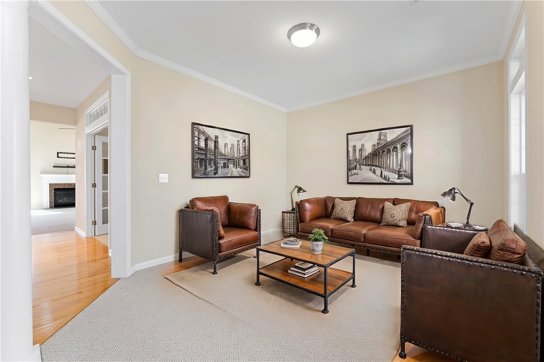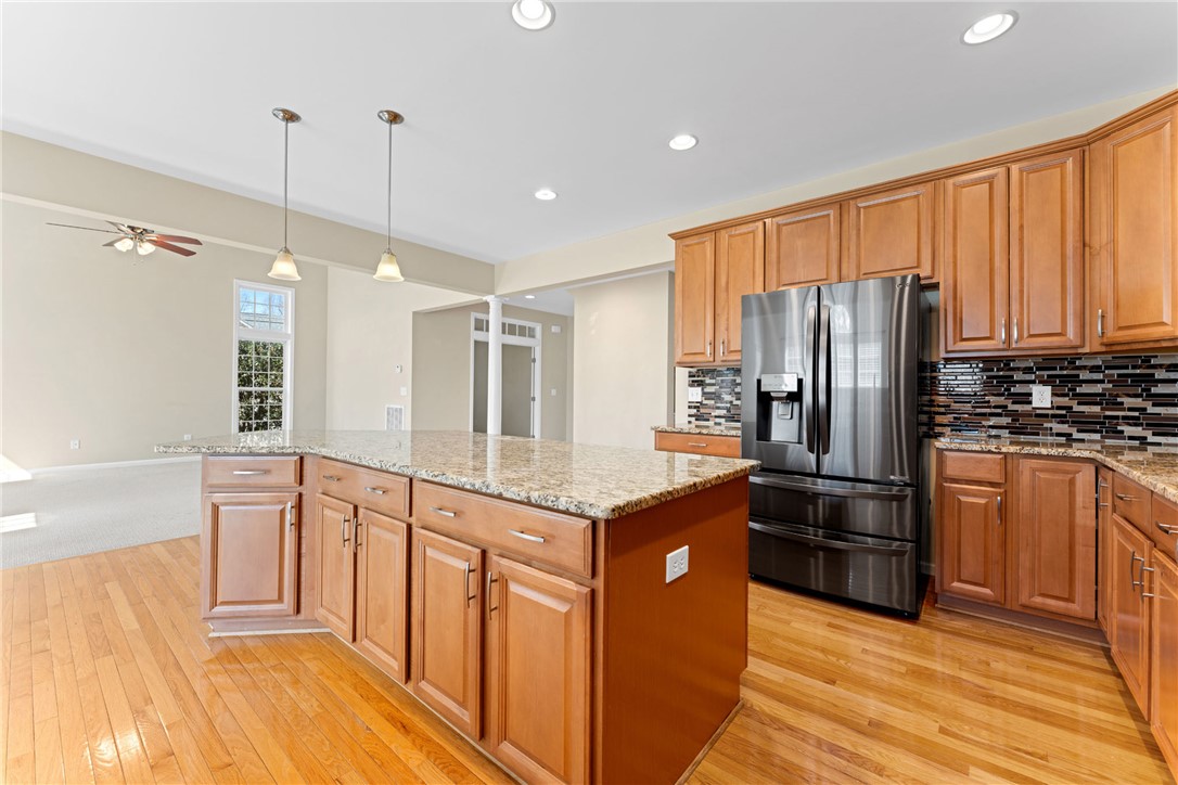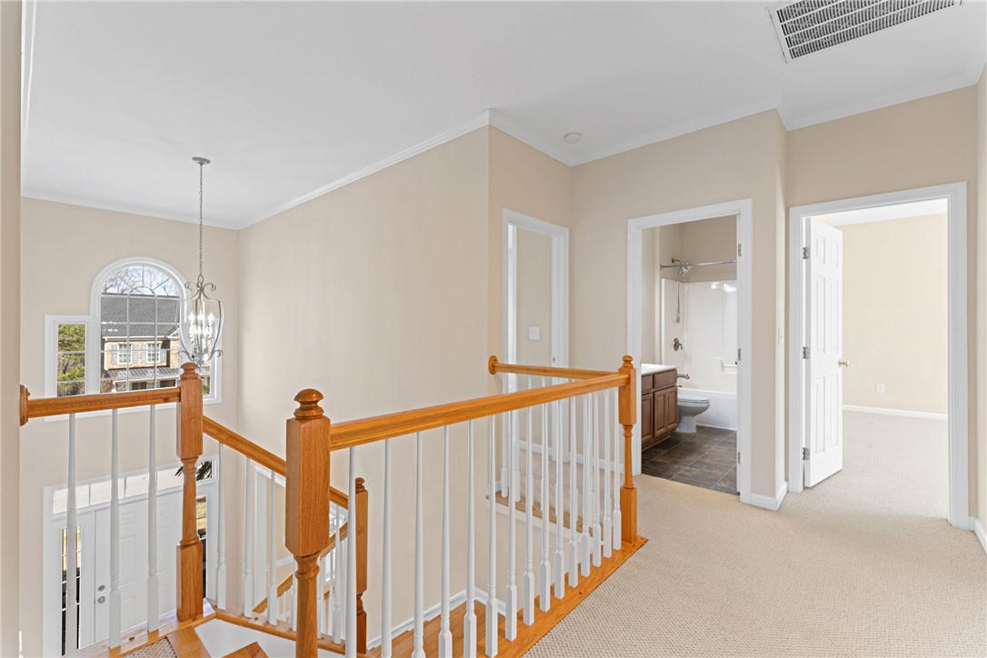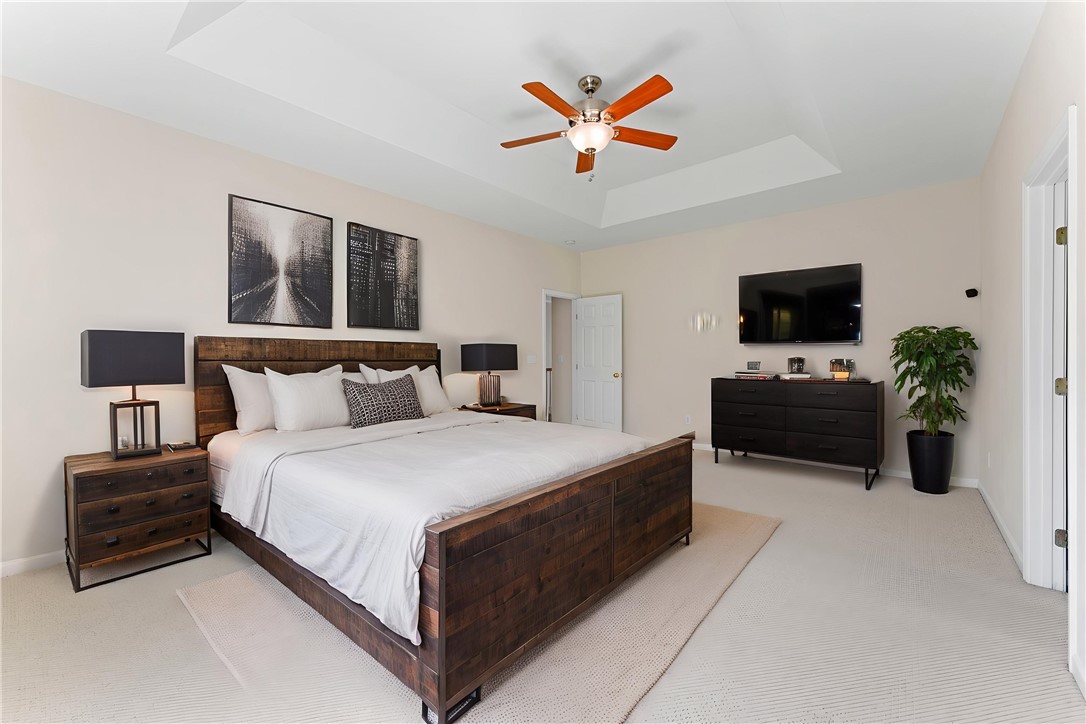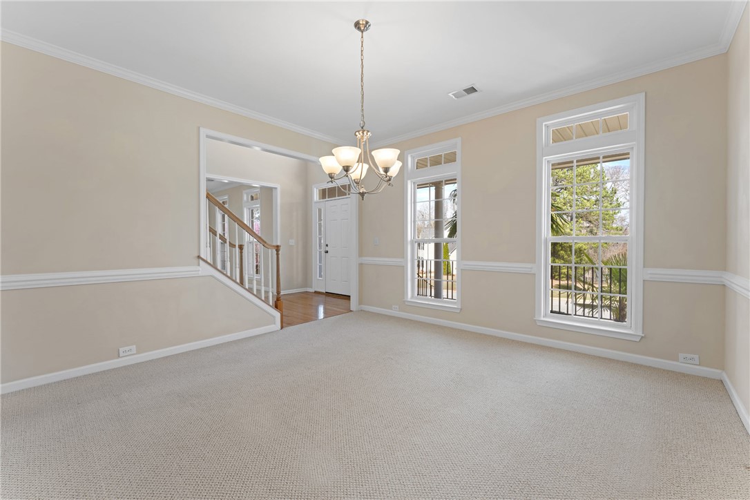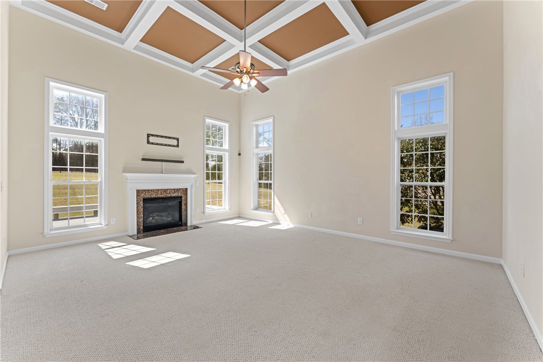 Welcome home to 30 Hydrangea Way, a beautiful home on a large corner lot located in a quiet cul de sac. This brick front home welcomes you with an extra large front porch that leads you into an open two story foyer filled with natural light. The beautiful hardwood floors are gleaming and look brand new. To the left you will find a spacious dining room with crown molding. To the right is a living room, and just beyond that is a private office with glass french doors. There is also a large half bath on the main level. Moving further into the home you enter the great room with coffered ceilings, an abundance of floor to ceiling windows, and a gas fireplace. This space opens into a large kitchen featuring stainless steel appliances, maple cabinets, a beautiful backsplash, a huge island, abundance of cabinetry, and a walk in pantry. The refrigerator will convey with the home. Just beyond the kitchen is a large sunroom that leads out to the back deck with Trex decking, offering low maintenance and peace of mind. Upstairs you will find the living quarters with three extra large bedrooms and a full bathroom with a dual vanity. The primary suite features tray ceilings, a very spacious layout, and a massive primary en suite. The bathroom includes a gorgeous soaking tub with a beautiful Palladium window above it, his and hers sinks on opposite sides of the room, a private water closet, and a large walk in closet. The upstairs level also includes a huge walk in laundry room and the washer and dryer will stay with the property. Outside the lot is .65 of an acre with endless possibilities and plenty of room for a pool. The home also offers a two car side entry garage. The neighborhood is beautiful with homes that are nicely spaced apart. There is also a lake view behind the home that is great for fishing. This property is located in the Five Forks area of Simpsonville super close to the GSP airport, hospitals, dining and shopping.