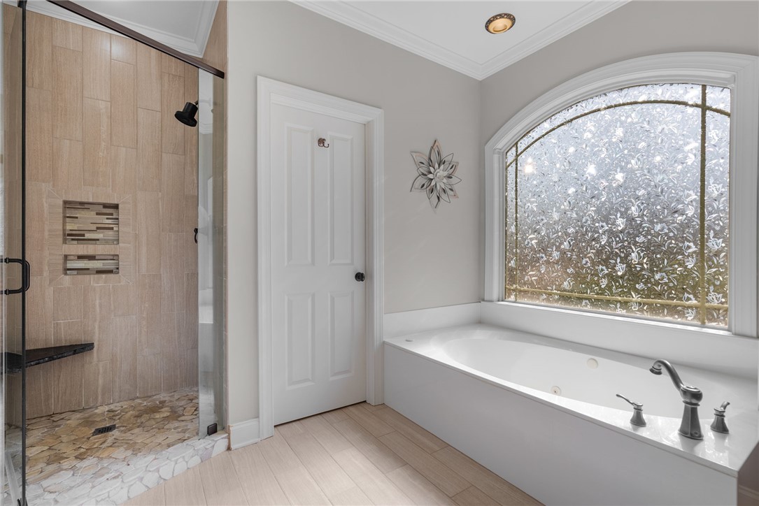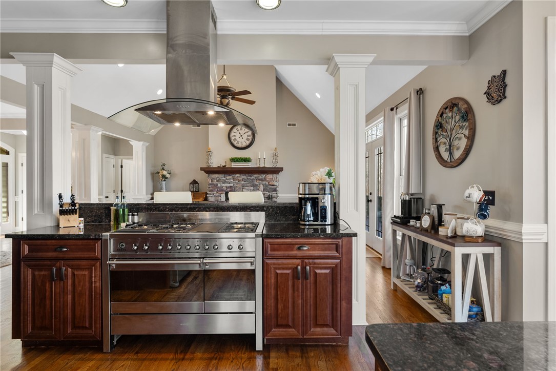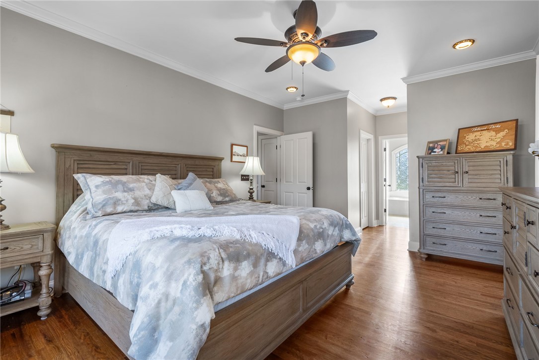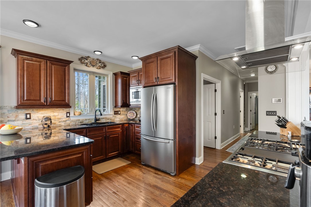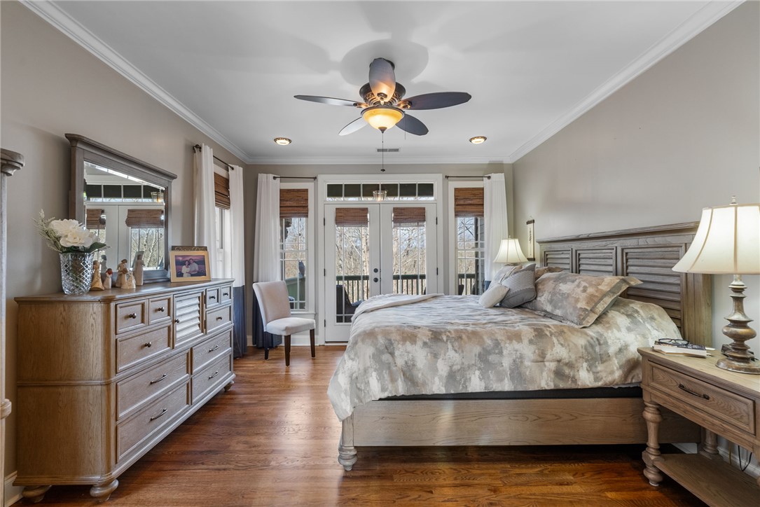 Craftsman-style 4BR/3BA home with hardwood floors and fresh paint throughout. The terrace level offers a full bath, bar, gas log fireplace, and private porch—ideal for an in-law suite or separate living quarters. A large bonus room over the garage offers a potential 5th bedroom. The gourmet kitchen features granite countertops, stainless appliances, and a 6-burner gas/electric range with griddle. All baths include ceramic tile and granite counters. Enjoy a formal dining room and breakfast area within an open-concept floor plan. Special features include a wood-burning fireplace on the main level, along with multiple terraces and decks with wooded mountain views. The large property provides privacy in a beautiful mountain setting. Enjoy evening fires in the newly built outdoor firepit. Meticulously maintained with extensive updates during ownership—truly a must-see. Located in a welcoming, active community less than 2 miles (under 5 minutes) from the Crow Creek boat launch. Neighborhood amenities include community storage, a scenic hiking trail with a waterfall, and a clubhouse with kitchen, dining and lounge areas, fireplace, and breathtaking mountain views. Lake access will be avail in the near future within the community for kayak and canoe launching.