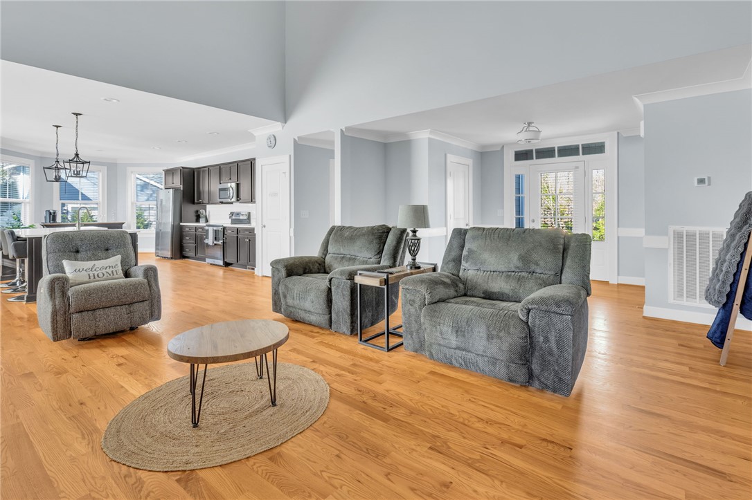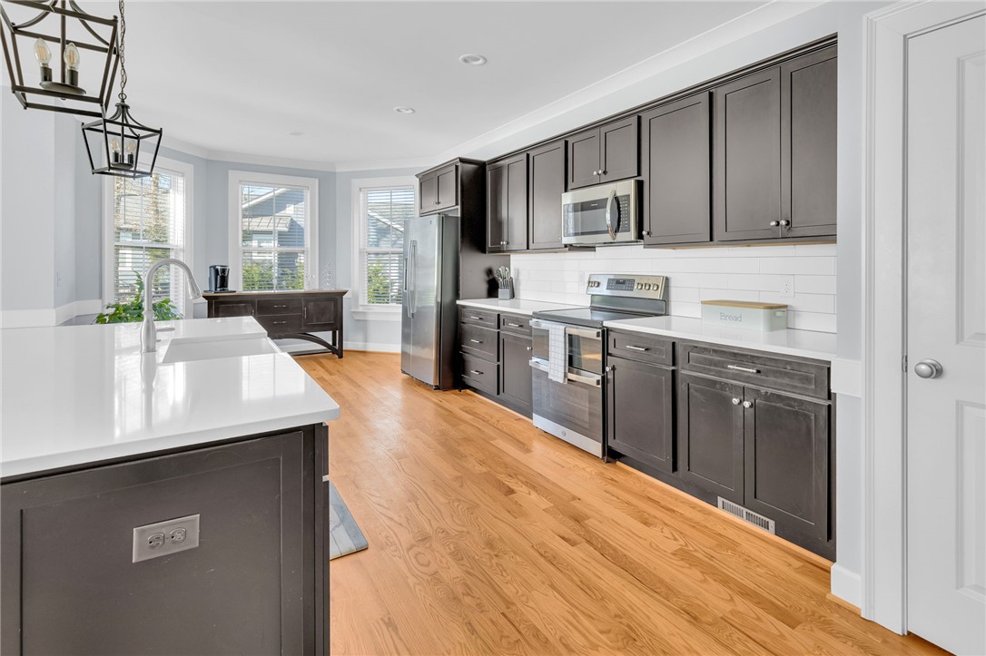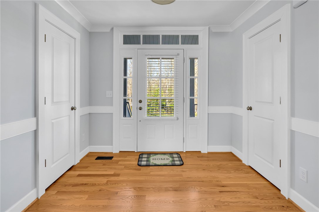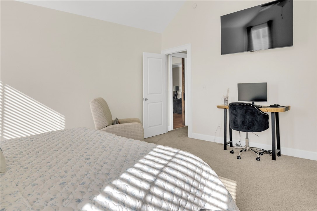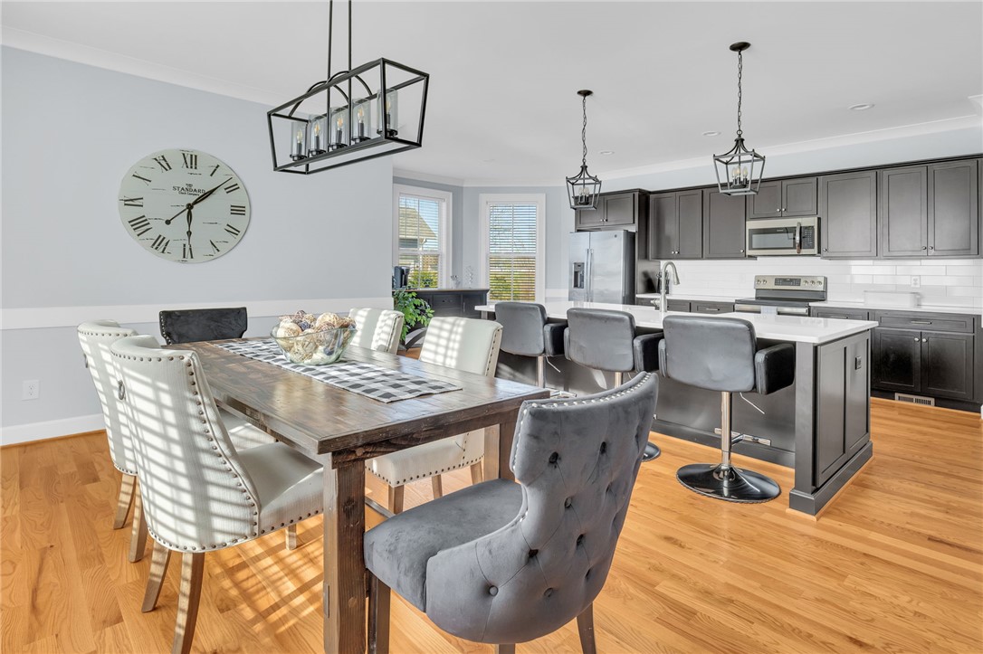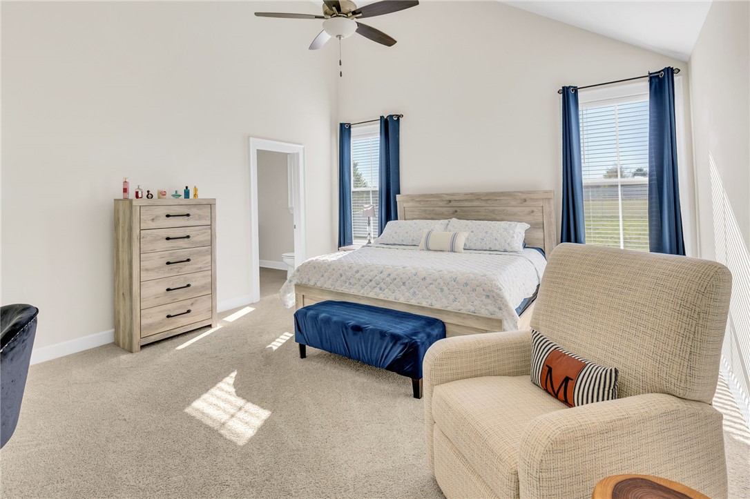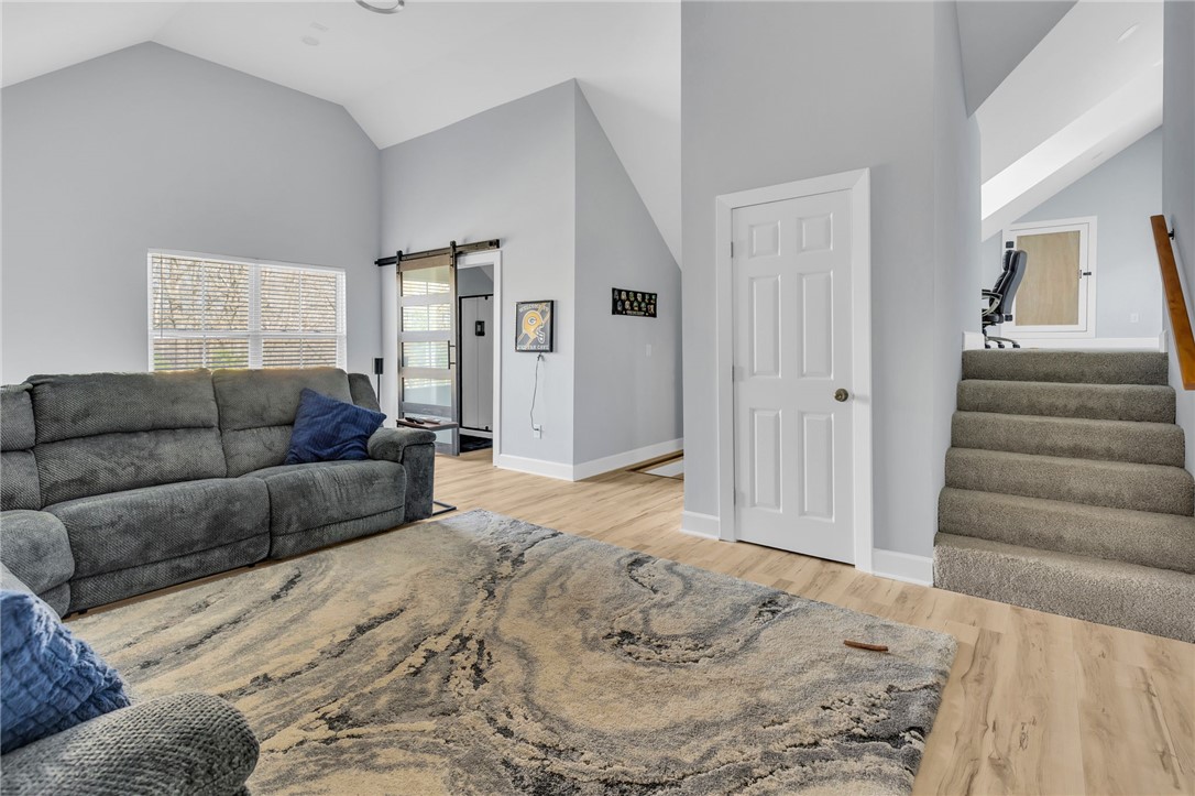 Welcome to 112 Lipizzaner Court in Pelzer, a custom-built home located in the desirable Saddlehorn community, where peaceful rural living meets an equestrian lifestyle. Situated on a 0.73-acre lot, this property offers over 2,800 sq ft, 4 bedrooms, and 3 bathrooms. The exterior features striking Iron Gray Masonite siding and an impressive 40-foot rocking chair front porch overlooking peaceful wooded views. Inside, a welcoming foyer opens to a bright open-concept living area with cathedral ceilings, hardwood floors, oversized windows, and a sleek black fireplace with custom wood mantel. Stylish sliding barn doors enhance the home’s modern farmhouse design. The kitchen is beautifully appointed with black shaker cabinets, white quartz countertops, and a spacious island with ceramic farmhouse sink, brushed nickel fixtures, and bar seating. A breakfast area sits just off the kitchen, while the dining room provides access to a large screened porch with vaulted ceilings, perfect for relaxing and enjoying sunset views. The primary suite features vaulted ceilings and a spa-inspired bath with dual vanities, a tiled walk-in shower with seating, rainfall and wall shower heads, and a large walk-in closet. Two additional bedrooms share a full bath on the main level. Upstairs offers a fourth bedroom, recreation room, and full bath, providing flexible space for guests or a home office. The backyard includes side privacy fencing and rear white iron fencing with views of neighboring horse pastures, plus a patio ideal for entertaining. There is ample room for a pool, and a pool company has already evaluated potential placement (details available). Additional features include a 2-car garage, storage shed, and low HOA dues of $675/year. Residents of Saddlehorn enjoy 75+ acres of horse pastures, a stocked fishing pond, and scenic walking trails, creating a tranquil yet active lifestyle. Saddlehorn offers community pastures and stables for horses, and recreational pond and trails along the creek and pastures.