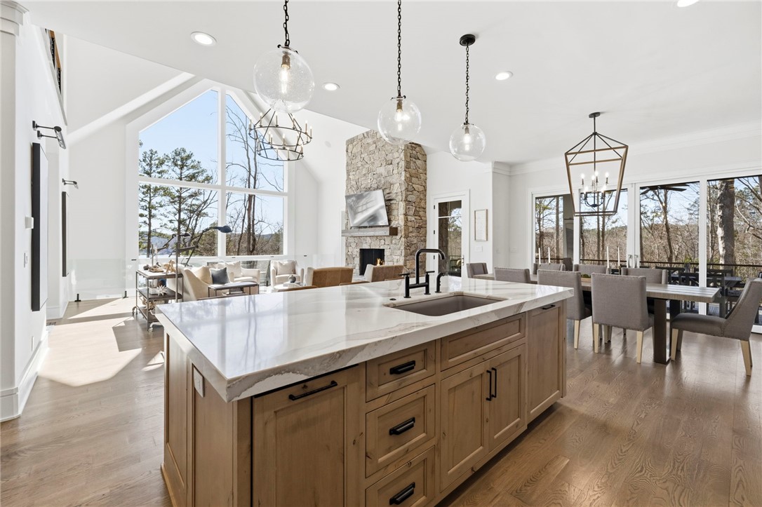 Perched above the pristine 369 feet of shoreline on Lake Keowee, this extraordinary Mountain Modern estate in Old Edwards Reserve captures the essence of luxury lake living. Set on a private 3.08-acre lot (created by combining three lots), this stunning home blends contemporary design with natural surroundings to create a truly remarkable lakefront escape. Thoughtfully designed to maximize views and natural light, the home is anchored by a breathtaking great room featuring three stories of floor-to-ceiling glass that frame sweeping views of the lake and surrounding trees. The space is both grand and welcoming, highlighted by soaring ceilings, elegant lighting, and warm wood tones. The open-concept layout seamlessly connects the living area, dining room, and chef’s kitchen, creating an ideal setting for entertaining. The home includes five spacious bedrooms and five-and-a-half bathrooms, providing comfort and privacy for family and guests. An elevator serves all levels, ensuring convenience throughout the residence. Large windows and glass doors extend the living experience outdoors to an expansive stone patio and screened porch, offering multiple places to relax and enjoy the peaceful setting. Outdoor living is where this property truly shines. A private beach area and covered slip dock provide effortless lake access for boating, swimming, and paddleboarding. Evenings can be spent gathering around the fire pit, enjoying the quiet beauty of the surroundings. The property itself is designed with both beauty and practicality in mind, featuring three separate driveways, thoughtful landscape, and professional erosion-control measures that preserve the natural terrain. Whether used as a full-time residence or a luxury second home, this property represents a rare opportunity to experience the best of Lake Keowee with plenty of room to expand and build a guest house if one desires. Ownership includes access to the world-class amenities of Old Edwards Reserve, a premier private lake and mountain community offering a Jack Nicklaus 18-Hole signature golf course, multiple dining options, marina access, tennis and pickleball courts, resort-style pools, fitness facilities, and miles of scenic trails. Here is your opportunity to experience luxury lakefront living on one of the Southeast’s most sought-after lakes. Buyer to purchase $100K Premier Membership required at closing.
