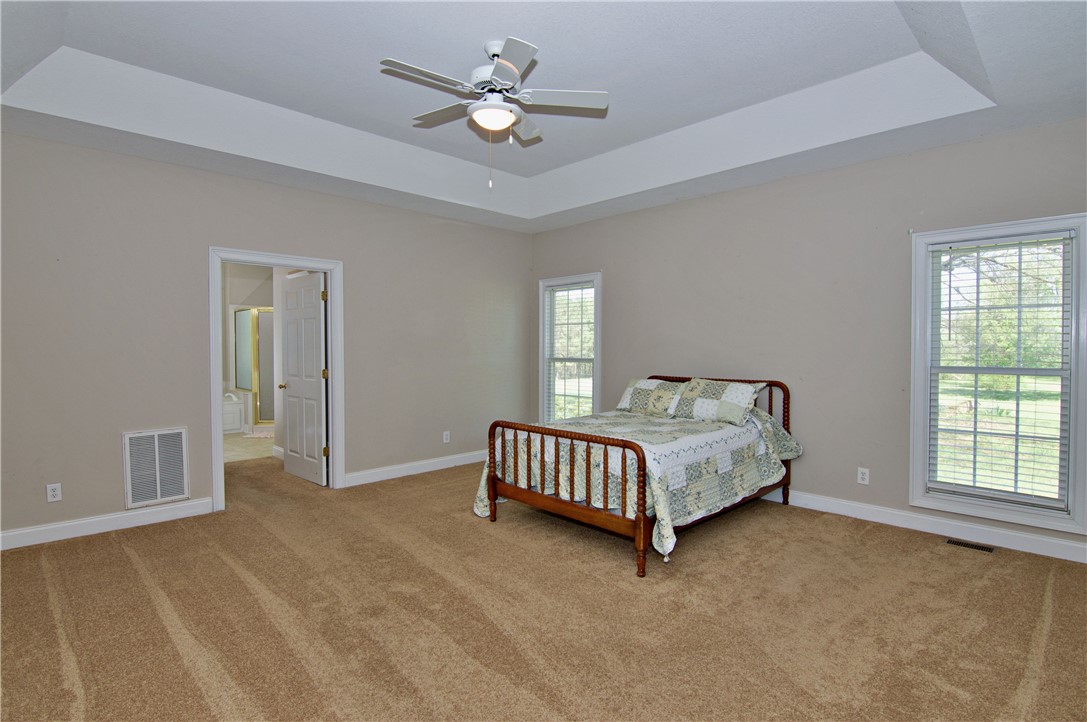Experience the peace and space of country living on over six beautiful acres. This well-designed home offers four bedrooms and three and a half bathrooms conveniently located on the main level, of which two bedrooms to choose from for your primary. Also, upstairs you will find a large bonus room, used as an in-law suite (5th bedroom) featuring a full bath, and kitchenette area for extra guests. This home also offers a large sunroom that leads out to the back deck for enjoying the serenity around you. This property is full of natural charm with pecan and black walnut trees and established fruit-producing plants including blackberries, raspberries, and kiwi, offering the opportunity to enjoy fresh harvests right from your own yard. For those needing workspace or storage, the property includes a huge 24x72 workshop partially fenced, perfect for projects, equipment, or a home-based business. With plenty of open space, privacy, and room to enjoy the outdoors, this property offers the best of quiet country living while still being within a convenient distance to town and everyday amenities.