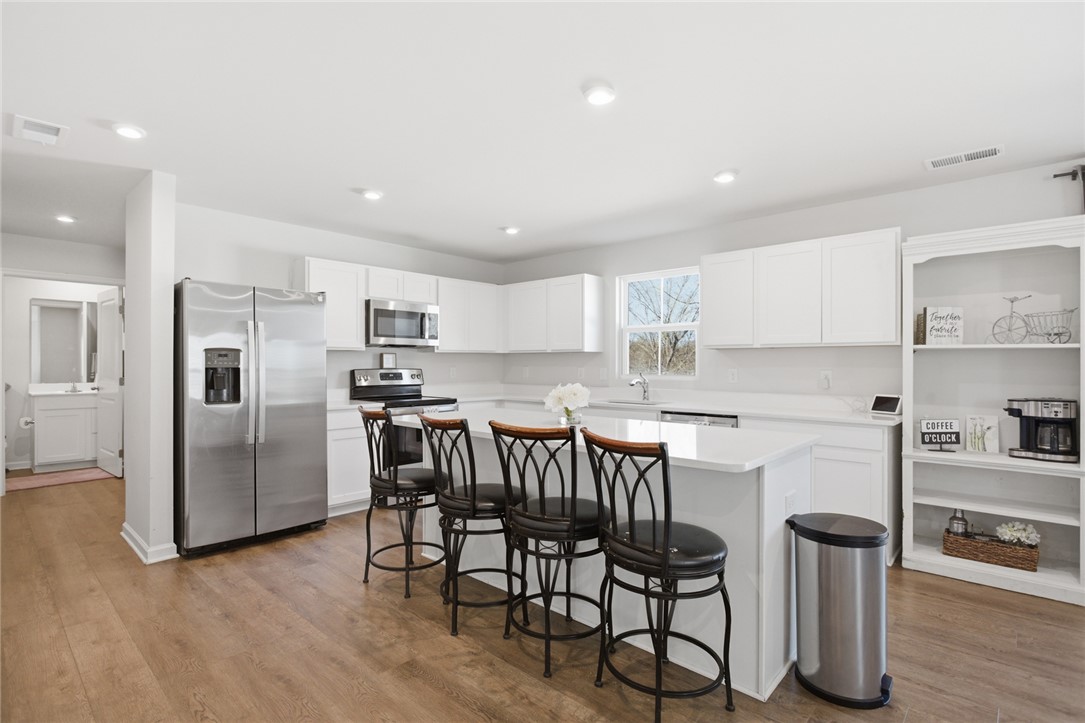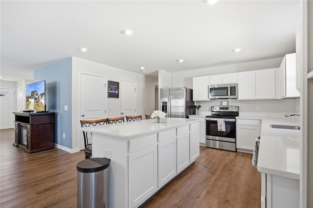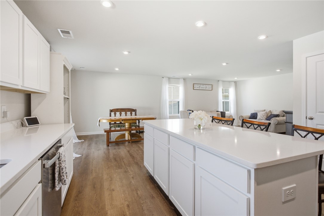 Located on a coveted culdesac, this 5 bed, 3 bath house is ready for you to call it HOME! Buit in 2023, enjoy being in a new neighborhood without the headache of active construction. Downstairs you'll enjoy loads of natural light in the dining room, which could also make for a great office, library or play room. The living room is next and is just steps away from a breakfast area. The kitchen is truly lovely, with loads of counterspace for prep and serving. Access to the backyard is just off the breakfast area and features a vinyl privacy fence and the owners extended the patio - the perfect place to end or begin your day. Also downstairs are a bedroom and full bath. On the second floor to your right are two bedrooms, plus a flex space. Craft room, school room, TV room, or whatever your dream up! Down the hall is a full bath, another guest room (that makes 4!), and the primary suite. Two great closets and a full ensuite bath complete the upstairs. You could be in Clemson in 12 minutes or dancing at Jazz on the Alley in just 8 minutes - the location can't be beat. Come check out this culdesac cutie today!