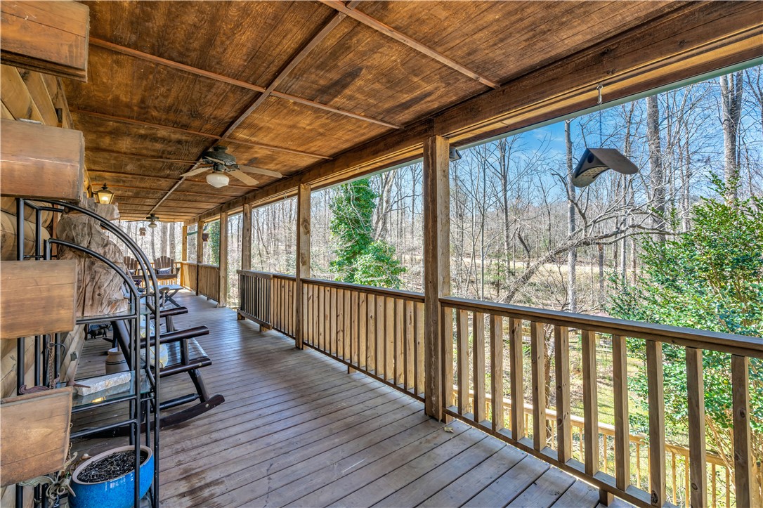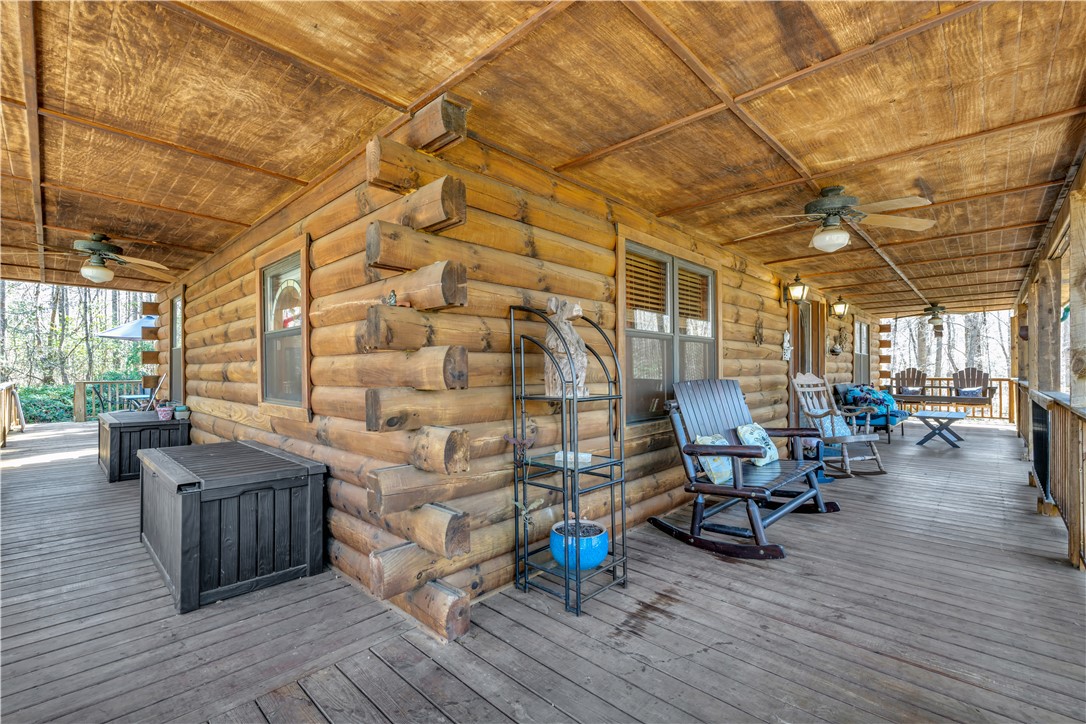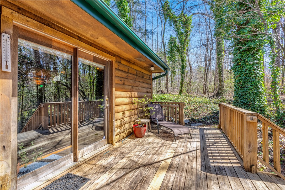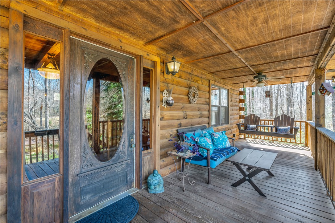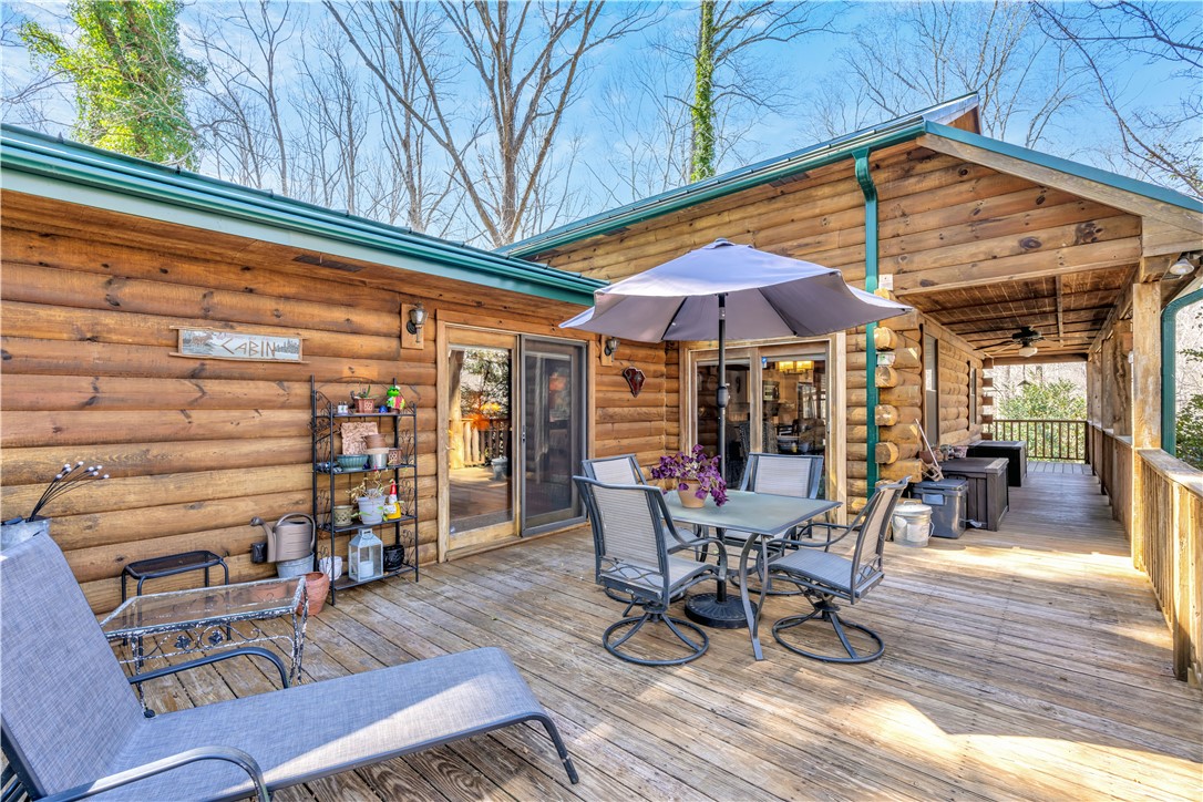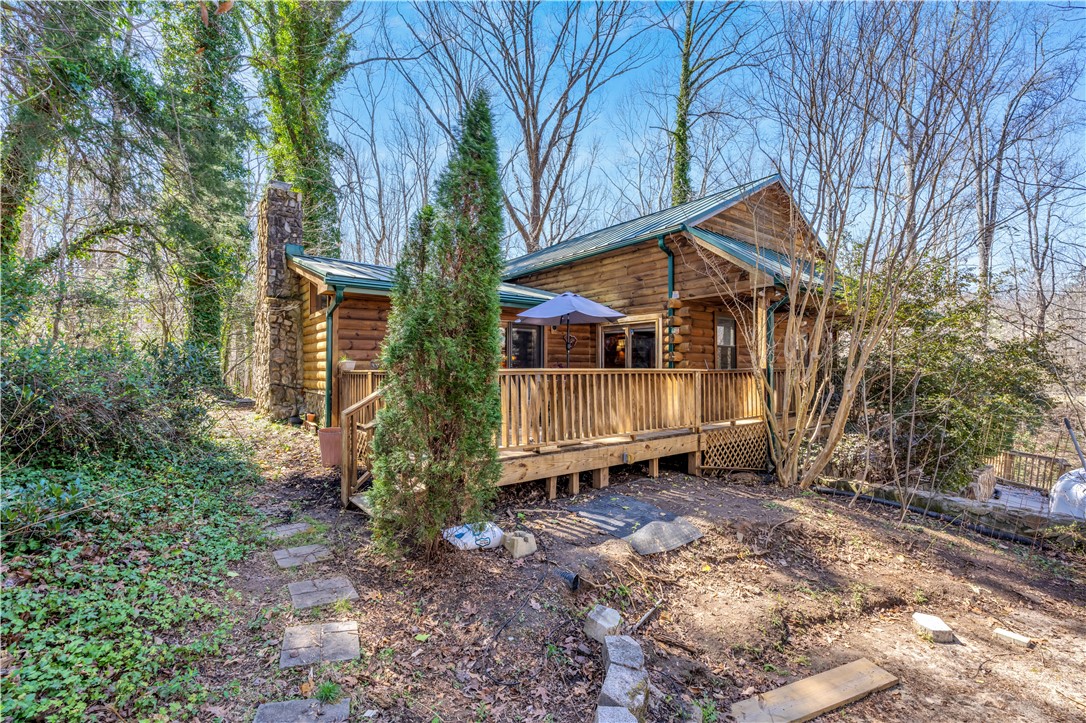Welcome to 112 Owings Road in Easley, a charming log cabin nestled on 3 acres, offering the perfect blend of rustic character and everyday comfort. This 3-bedroom, 2.5-bath home features over 2,000 square feet of inviting living space with room to spread out both inside and out. Step inside to find warm wood tones, bright and open living areas, and a functional layout that makes everyday living and entertaining easy. The recently renovated, spacious kitchen flows naturally into the main gathering spaces, while generously sized bedrooms provide comfort and privacy. The owners retreat is on the main level with a totally renovated en-suite bath that features a stackable washer and dryer. A garage adds convenience and extra storage, or use as a workshop/hobby space making this home as practical as it is welcoming. Outside, the expansive property creates the ideal setting for enjoying peaceful country living—whether you’re relaxing on the wraparound porches, entertaining friends in the gazebo next to the babbling brook, starting a garden, or simply taking in the quiet surroundings. With the charm of a true log cabin and the convenience of Easley and Travelers Rest just minutes away, 112 Owings Road offers a rare opportunity for space, privacy, and timeless mountain-style living.