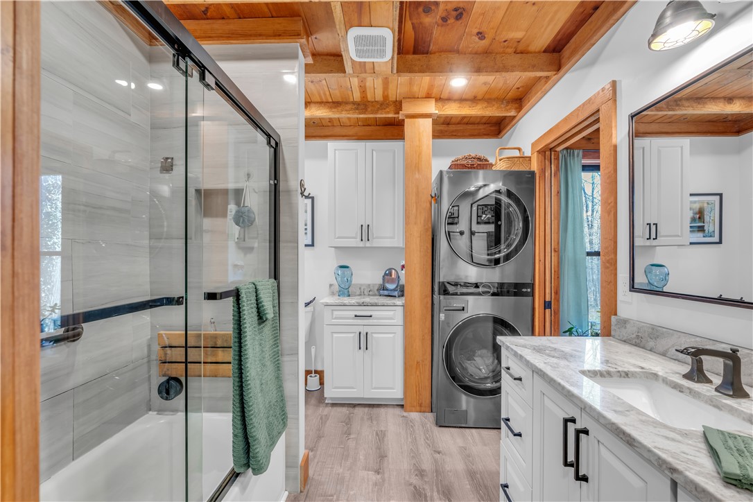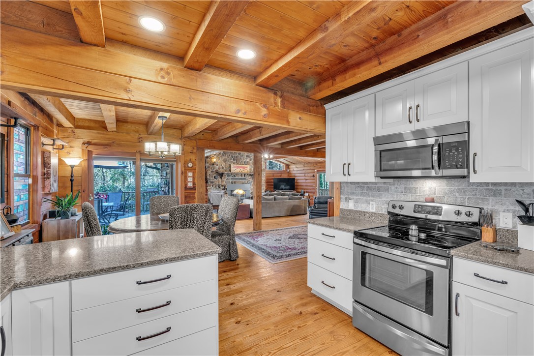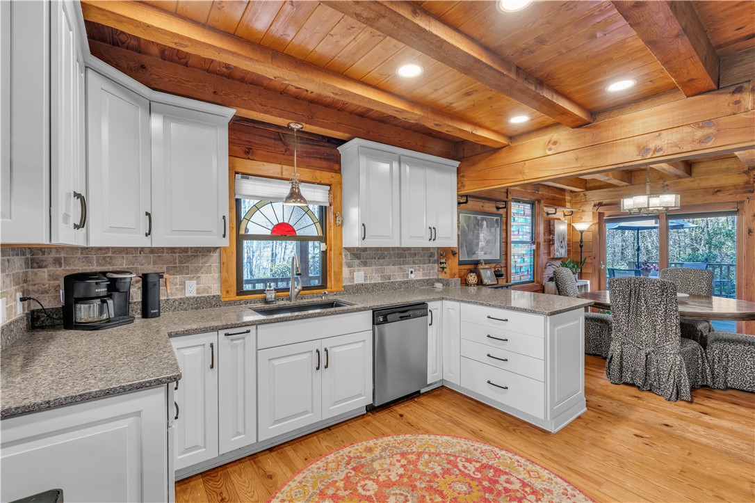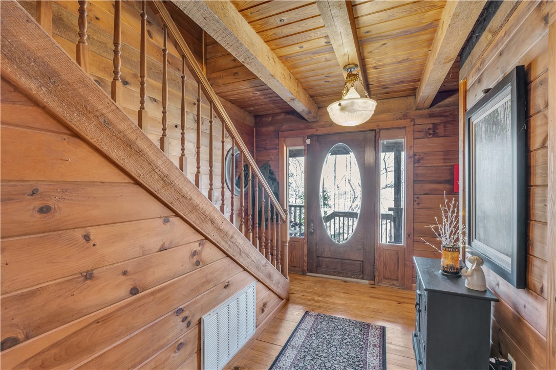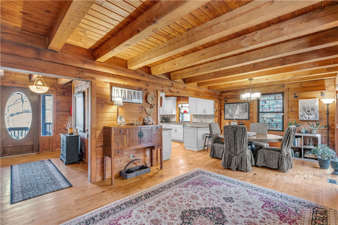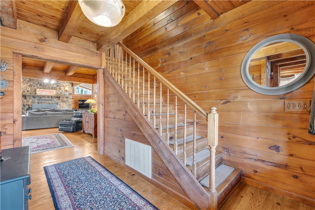 Welcome to 112 Owings Road in Easley, a charming log cabin nestled on 3 acres, offering the perfect blend of rustic character and everyday comfort. This 3-bedroom, 2.5-bath home features over 2,000 square feet of inviting living space with room to spread out both inside and out. Step inside to find warm wood tones, bright and open living areas, and a functional layout that makes everyday living and entertaining easy. The recently renovated, spacious kitchen flows naturally into the main gathering spaces, while generously sized bedrooms provide comfort and privacy. The owners retreat is on the main level with a totally renovated en-suite bath that features a stackable washer and dryer. A garage adds convenience and extra storage, or use as a workshop/hobby space making this home as practical as it is welcoming. Outside, the expansive property creates the ideal setting for enjoying peaceful country living—whether you’re relaxing on the wraparound porches, entertaining friends in the gazebo next to the babbling brook, starting a garden, or simply taking in the quiet surroundings. With the charm of a true log cabin and the convenience of Easley and Travelers Rest just minutes away, 112 Owings Road offers a rare opportunity for space, privacy, and timeless mountain-style living.