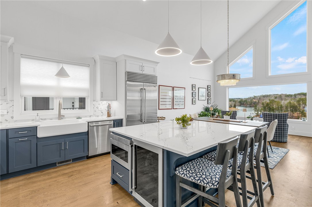 NEW BOAT SLIPS! Discover luxury lakefront living in this stunning custom home perched atop The Ridge at Lake Keowee, within the Backwater Landing gates, offering breathtaking waterfront views and the ease of low-maintenance living. Thoughtfully designed with exceptional craftsmanship and high-end finishes throughout, this home blends elegance, comfort, and modern technology in one of Lake Keowee’s most desirable communities. Designed for effortless entertaining and lakeside relaxation, the open-concept floor plan features a chef’s kitchen equipped with a 36” Wolf dual-fuel range, 42” Sub-Zero French door refrigerator, built-in microwave, and two under-counter beverage refrigerators, one in the kitchen and another in the lower level. A spacious dining area and oversized island provide the perfect gathering space, while the living room showcases a striking 42” linear propane fireplace with tile surround and mantel. A screened porch with ceiling fan invites year-round enjoyment of the spectacular lake views. The main-level primary suite offers a luxurious dressing room, custom walk-in closet system, and spa-inspired bath with dual vanities and an upgraded tiled shower. A guest bedroom on the main level can also serve as a private study. Upstairs, a large bonus room functions perfectly as a fourth bedroom, media room, or flexible living space. This home is equipped with numerous smart-home and efficiency features, including three HVAC systems with Nest Learning thermostats, smart Wi-Fi garage door openers, tankless water heater, water softener, EV charging station, and Hunter Douglas and Norman smart window shades. The beautifully landscaped backyard features owner-added stone steps, patio, fencing, and a designated pet grass area. The lower-level walkout patio includes a ceiling fan and private fenced yard, creating an additional outdoor retreat. Residents of The Ridge enjoy Backwater Landing amenities including walking trails, boardwalks, waterfront lodge, pool, beach area, fitness center, library, billiards room, and marina. A boat slip is available for lease with this home, making it effortless to enjoy the emerald waters of Lake Keowee. The newly installed slips are expected to be boat ready soon. Additional highlights include a custom pantry with crown molding and quartz countertops, solid core doors with Emtek hardware, 8-foot doors on the main level, upgraded tile in all baths, utility sinks in the garage and workshop, outdoor gas hookup for grilling, and owned propane tank with rough-in for a future lower-level fireplace. Conveniently located near shopping, grocery stores, and medical facilities while tucked inside a private gated enclave, this home offers the perfect balance of luxury, privacy, and convenience. The monthly regime fee of $685 (2026) includes the land lease, landscaping maintenance, gated security, pool, clubhouse, walking trails, fitness center, lighting, and more. There is no traditional HOA. Fees may vary depending on services such as boat slip rental, storage usage, and full-time or part-time residency. Due to septic capacity, two people may reside full time with guests welcome. Previously under contract as a private off-market offering. The buyer was unable to complete the purchase due to the timing of their home sale, creating a new opportunity for the next buyer. Schedule your private tour today.
