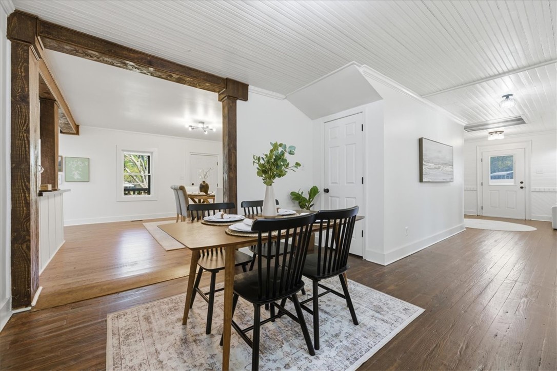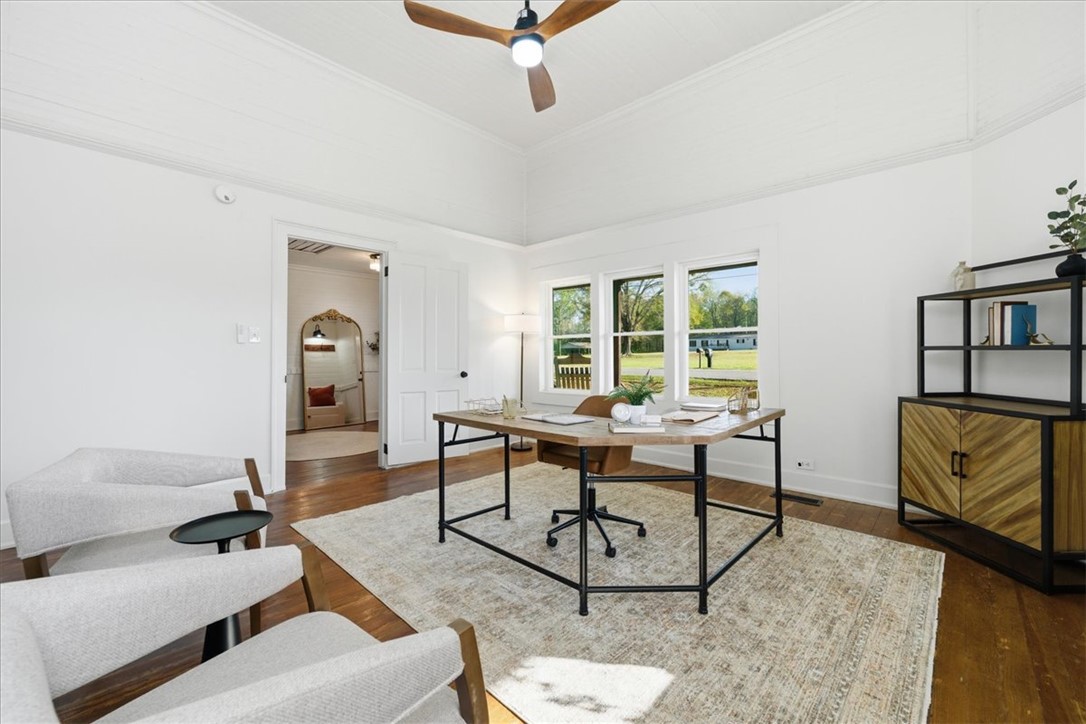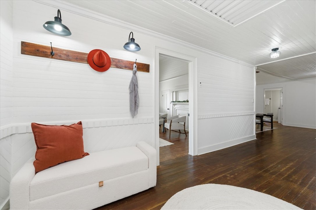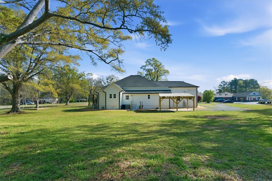 Welcome home to this beautifully updated property that perfectly blends classic Southern charm with modern convenience. Nestled on two level lots in the heart of Iva, this timeless home offers rare, in-town space, no HOA, and limitless potential. It's farmhouse style offers an expansive wraparound porch, which sets the tone for relaxed country living, while a smaller, second covered side porch, is off the kitchen. Inside, the home offers abundant character and functionality, featuring: spacious bedrooms, including two bedrooms & full bath upstairs, with multiple built-ins for storage and window seats. Additional bedrooms and flex spaces are on the main level, The serene primary suite with private bath and oversized walk-in closet offers a flex space that could be used as a dressing room or perhaps a quiet 'getaway'. The large family room with soaring ceilings and dual ceiling fans is the center of the home. Hardwoods and original beadboard can be seen throughout.. A bright, open kitchen with a new stainless-steel gas stove, an eye-catching stove hood, butcher block countertops, white cabinetry, open shelving, and wooden beams will quickly grab your attention. The dining room flows off the kitchen, with built-in shelving, built-in counter space and a beautiful feature wall. The laundry room is also off the kitchen, with additional shelving, perfect for pantry use, and access to the back yard and pergola, that could also be used as a carport. Outside, the opportunities are nearly endless. The two lots equal over 1.5 acres, allowing plenty of space for play, entertaining, gardening and dual entrances for a driveway. Recent upgrades include new double-pane vinyl windows, a new HVAC system, and a new water heater for efficiency and peace of mind. The plumbing and wiring were updated by previous owners. Whether you dream of creating a multi-generational homestead, gardening, raising chickens, or simply need space for your RV or boat, this property provides the freedom to make it happen. Located in highly rated school district three and just minutes from Lake Hartwell, Lake Russell and Lake Secession, this property offers a rare combination of space, modern updates, and timeless charm. The layout also offers options for multiple generational living. The property is professional staged; staging items will not convey.