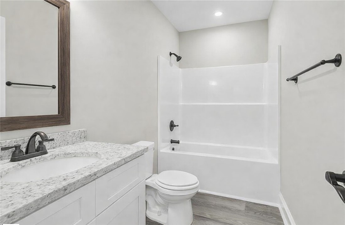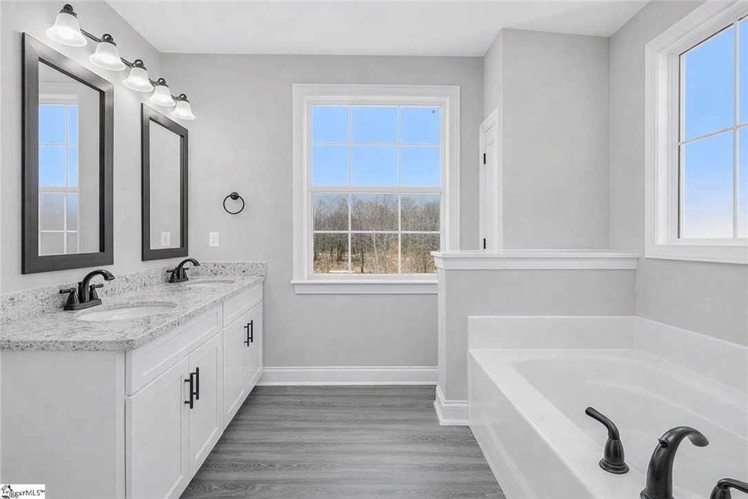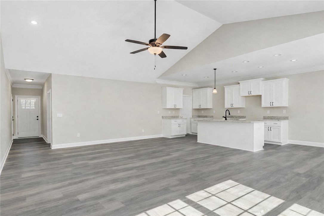 Welcome to your brand-new home in charming Liberty, South Carolina. Perfectly positioned with a beautiful view across the street, this thoughtfully designed single-story home offers the ideal blend of peaceful surroundings and modern comfort. Step inside to an inviting open-concept layout where the kitchen, dining, and living areas flow seamlessly together—perfect for both everyday living and entertaining. The kitchen serves as the heart of the home, featuring a large island, farmhouse sink, quartz countertops, and a gas range that make both cooking and gathering a pleasure. The spacious primary suite provides a relaxing retreat with a walk-in closet, double vanity, soaking tub, and a separate walk-in shower designed for comfort and convenience. Throughout the home you’ll find luxury vinyl plank flooring, stylish Delta fixtures, and detailed finishes that add warmth and character to every room. Outdoor living is just as inviting. Enjoy morning coffee on the welcoming front porch while taking in the scenic view across the street, or relax on the 15x12 covered back porch, perfect for grilling, entertaining, or unwinding after a long day. The side-entry garage includes a convenient utility sink, and the dedicated laundry room adds even more functionality to the home. Located in the growing and welcoming community of Liberty, this home offers small-town charm while still being conveniently close to Easley, Clemson, and Greenville. You'll enjoy nearby dining, local shops, seasonal festivals, and easy access to outdoor recreation throughout the Upstate. The home will also feature beautiful wood accents above the windows along with a full landscaping package including sod in the front yard and tasteful plantings. Please note: final selections for flooring, paint colors, and countertops will be similar to renderings but may vary slightly.