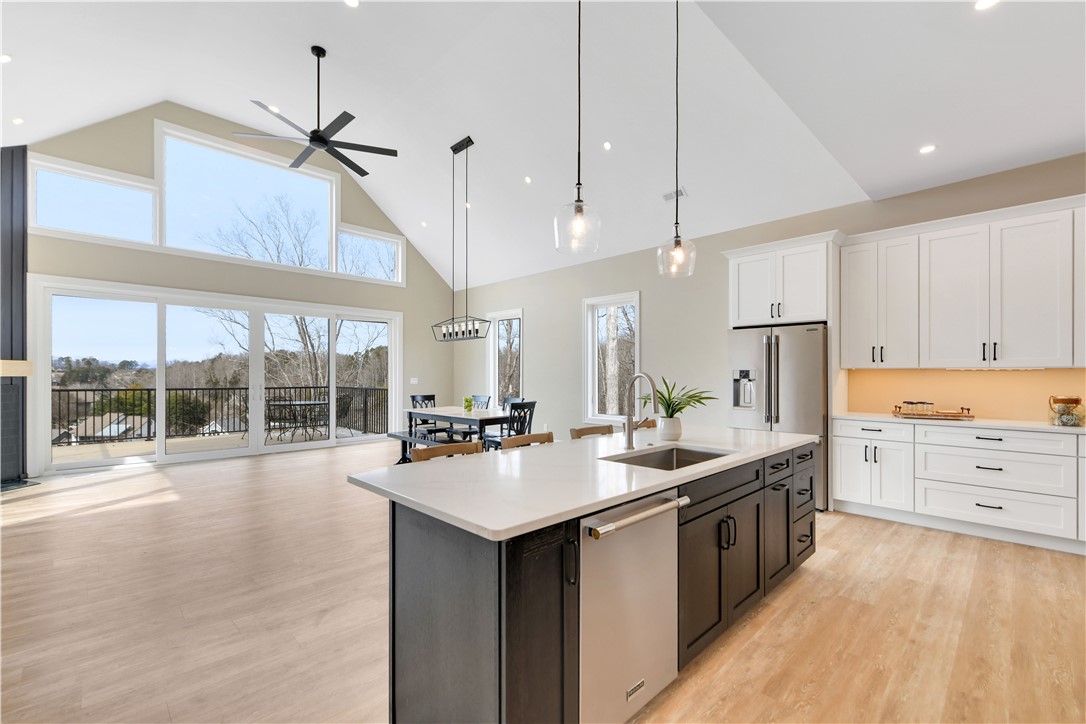 The Keowee Life awaits your family at 478 Kensington Circle, located within the city limits of Seneca, SC, and around 10 minutes to Death Valley! Go Tigers! You’re also a short drive from Ram Cat Alley in downtown Seneca with the bustling ambiance of small-town Southern living. This custom-built lake house was designed with the Keowee Life in mind. On a clear day, you'll see the Blue Ridge Mountains from the living and gathering area. The open floor plan that merges the living room, dining area, and kitchen with walk-in pantry into one elegant entertaining space. Luxury vinyl floors flow throughout, and a corner fireplace adds a warm, homey touch. The deck faces Lake Keowee, creating the perfect setting for outdoor living. The kitchen features a large island with stainless steel appliances, including a dual fuel range, while high ceilings flood the space with natural light. Completing the main level are a custom-crafted pantry, the laundry room (including washer and dryer), and the primary suite, which features dual vanities and a walk-in shower. Wake up to gorgeous lake views every morning. This 3-story home offers a total of 5 bedrooms. The primary suite is on the main level, while two en-suite bedrooms on the upper floor provide comfortable accommodations for family and guests. The terrace level features an additional guest bedroom, a full bath, a future bunk room/flex room, plus a large game room/rec room with a wet bar—ideal for lake-time gatherings. Glass doors lead to the covered deck and down to your covered dock, where you can swim in the protected waters of the cove. Special features include two separate HVAC units (American Standard and Honeywell) and a Rinnai tankless water heater. PROXIMITY TO CLEMSON AND IN-TOWN LIVING It's rare to find a one-year-old home on Lake Keowee with 4-5 bedrooms (three with private, full bathrooms) within close proximity to Clemson University and the charming Southern town of Seneca, SC. This is a home where families unwind, reconnect, and create memories of a lifetime. The Keowee Life. Live It. Love It. Lake It. Schedule your private tour and experience the views that photographs simply can't capture.**Photos virtually staged**