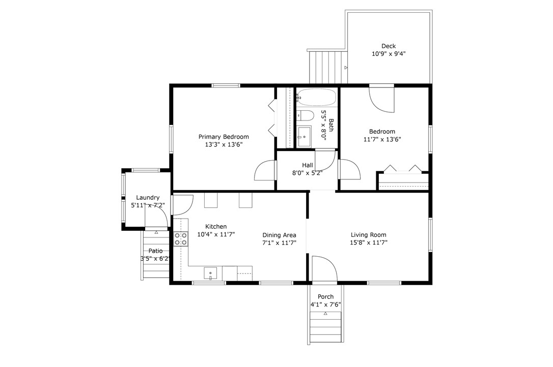 | Bedrooms 2 | Bath (Full / Half) 1 / | Square Footage | ||