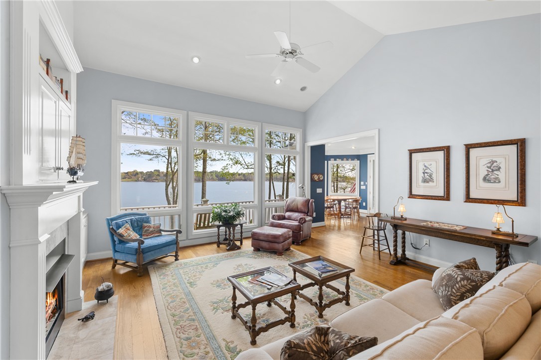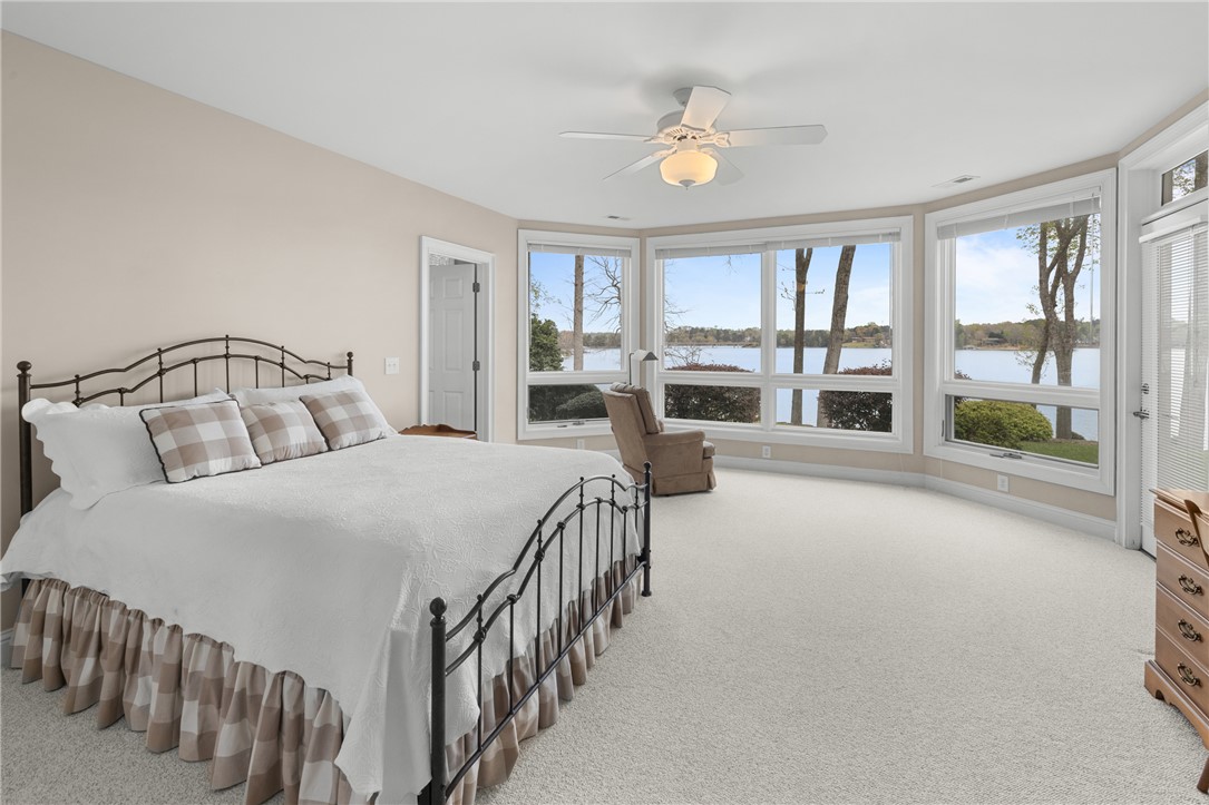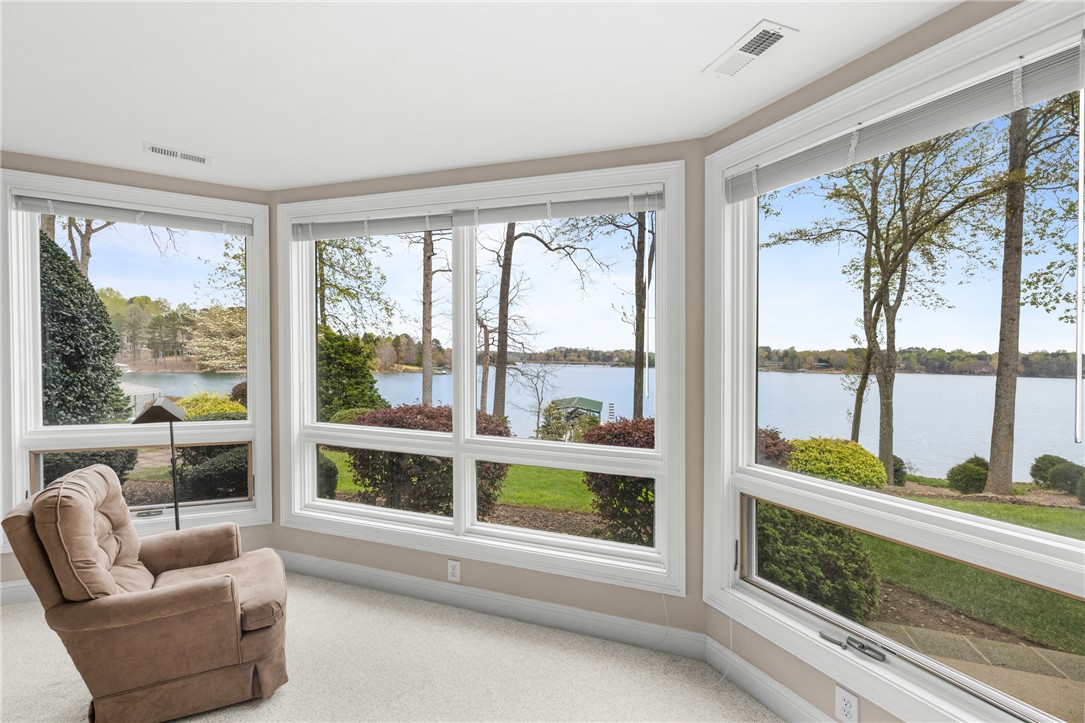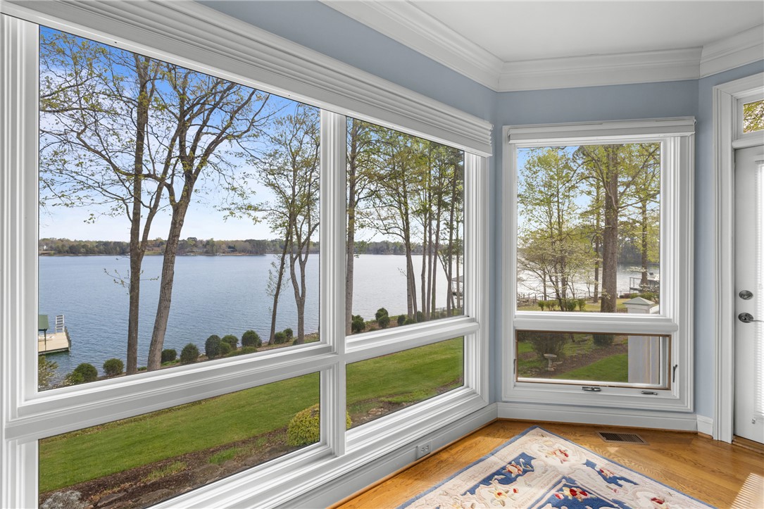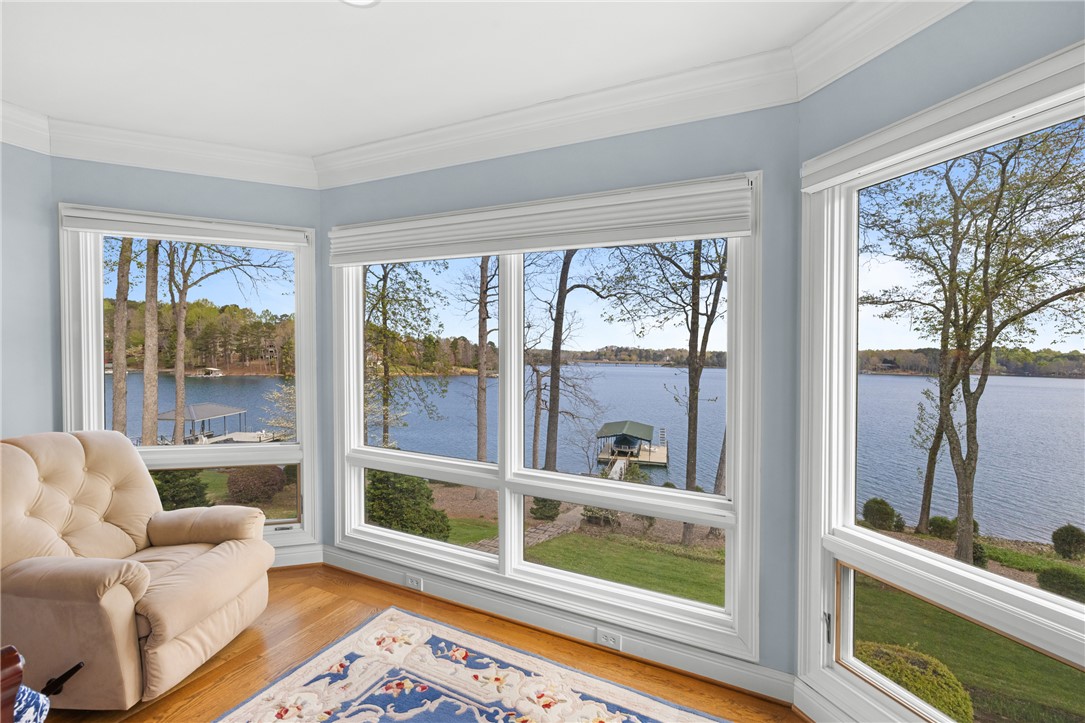 Lake Keowee in South Oak Pointe, this is where you come for the view and stay for everything that comes with it. From the moment you step inside, your attention goes straight through the wall of windows to Lake Keowee and the layered Blue Ridge Mountains beyond. Over 180 degree views, with a combination of open water, mountains, and the cove. As a point property, the expansive view, water depth at dock, and location are limited on Lake Keowee, especially on the south end. 177 feet of shoreline and over 20 feet of water depth, the lake is always accessible. Covered dock, built by Custom Wood and Steel, includes a 6,000 lb Carolina Lift Systems boat lift. A path connects the home to the shoreline for easy access. Approximately 3,900 square feet, floor plans with dimensions are available. 3 bedrooms, 3.5 bathrooms, and a large office that can serve as an additional bedroom. Ceiling heights well exceeding 9 feet throughout, and the lakeside is lined with windows that bring in natural light across all levels, including the walkout lower level. The main level includes a primary suite with lake views, large closets, and access to outdoor living. Hardwood floors run through the main areas. Multiple covered porches, a balcony, and a grilling deck provide usable outdoor space. The lot has a gentle slope with mature landscaping and is positioned to keep the focus on the water and mountains. A 2.5-car garage allows space for two vehicles and a golf cart, and the lower level includes storage for lake equipment, a workshop, and direct exterior access from the lake side. Located on the south end of Lake Keowee, you are within 10 minutes of Seneca and Walhalla, 15 minutes to Clemson, and under an hour to Greenville and GSP International Airport. It is rare to find a point lot on Lake Keowee with this combination of deep water, protected positioning, and long-range mountain views. That is what defines this property.