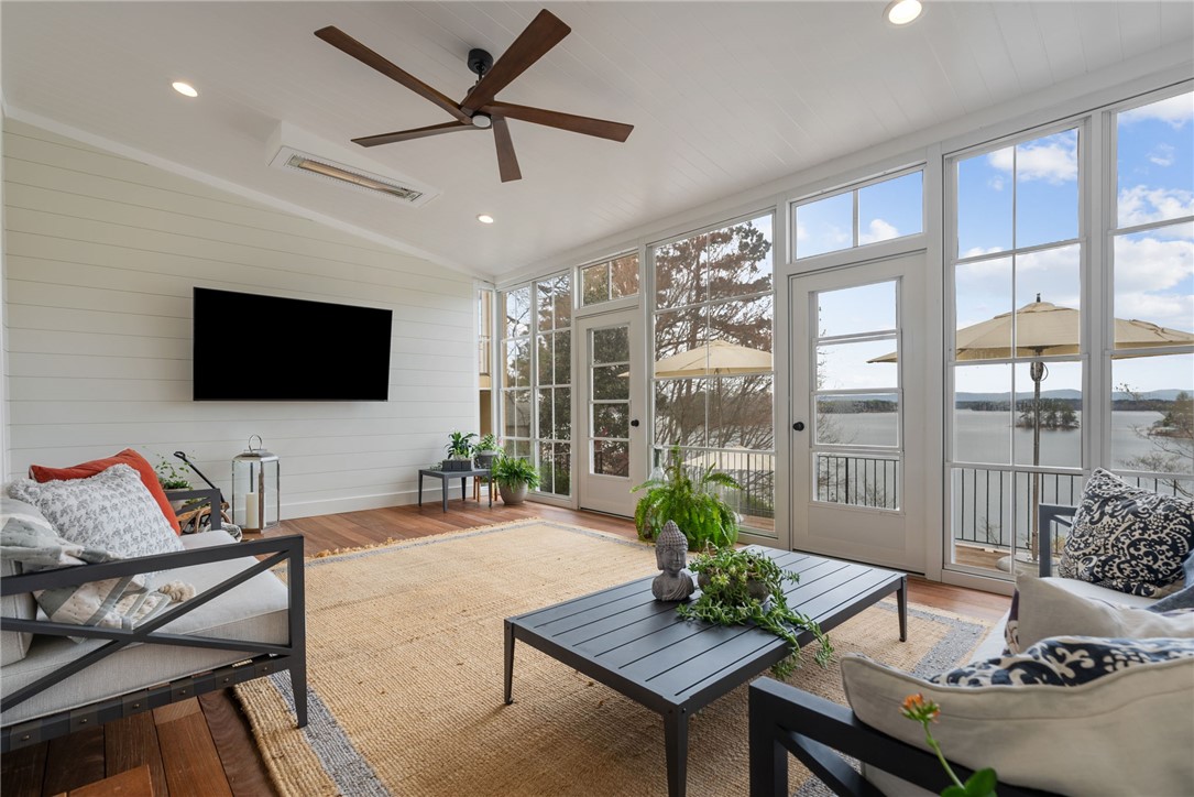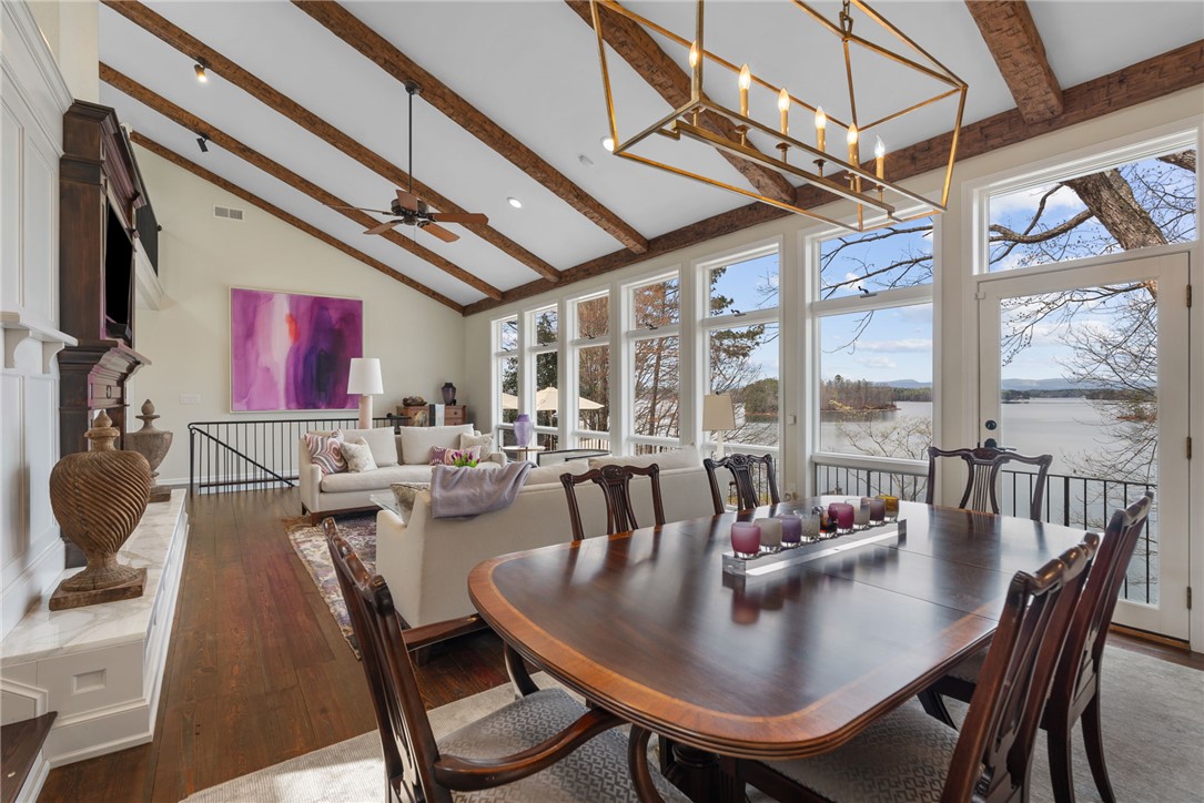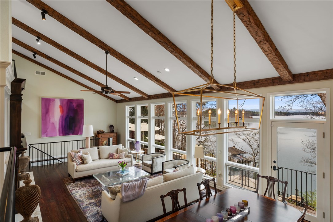 Imagine winding along a quiet, tree-lined road just minutes from the heart of Seneca, and then, almost unexpectedly, the landscape opens wide. The canopy parts, the horizon stretches, and what was once an intimate drive becomes a grand arrival. Before you unfolds one of the most captivating vantage points on Lake Keowee, a commanding waterfront villa where miles of shimmering open water meet the layered silhouettes of the Blue Ridge Mountains, creating a panorama that feels more reminiscent of Northern Italy than the foothills of South Carolina. It is a view that commands attention in every season and becomes the ever-changing backdrop to daily life, from misty dawns to glowing sunset reflections across the water. Welcome to 2516 Sugar Valley Road, known as Keowee Grand Vista. Set on approximately .62 acres with more than 140 feet of shoreline and a covered dock already in place, this exceptional waterfront property offers a rare balance of sweeping long-range views, privacy, and convenience, just minutes from shopping, dining, medical facilities, and Clemson University. Inspired by the Italian countryside, the home evokes the spirit of a timeless Tuscan villa, designed to feel as though it has evolved gracefully over generations, with each space revealing character, texture, and light. From the moment you enter, a dramatic wall of glass draws the eye outward across open water toward distant mountain ridgelines that shift from soft morning haze to golden evening glow. Natural light fills the interiors, connecting every room to the landscape beyond. Inside, warmth and craftsmanship define the experience. Wide-plank heart pine floors flow throughout the main living areas, while hand-hewn beams crown the ceilings, adding architectural depth and a sense of permanence. The Grand Room is both impressive and inviting, designed for gathering while remaining connected to the outdoors. Nearby, the kitchen and keeping room offer a relaxed setting centered around a substantial gathering table, ideal for conversation and lingering meals. A Lacanche range anchors the kitchen with Old-World elegance, complemented by Sub-Zero refrigeration, custom cabinetry, and modern conveniences, creating a space equally suited for everyday living or entertaining. The layout unfolds with thoughtful privacy. A distinctive bedroom tower presents three separate suites, each capturing its own perspective of the lake and mountains. The primary suite, positioned just above the main level, serves as a refined retreat with a spa-inspired bath and a secluded sitting area overlooking the water. Additional spaces continue to surprise. A glass-enclosed loggia offers a sunlit sanctuary reminiscent of an Italian winter garden. A lofted office overlooks the Grand Room below, while the lower level reveals a wine cellar and multiple gathering areas for evenings with friends and family. Currently configured as a fully independent guest or in-law suite, the lower level features its own entrance, private terrace, and sweeping lake views. Outdoors, multiple flagstone terraces cascade toward the shoreline, creating distinct outdoor rooms for entertaining or quiet relaxation. An outdoor kitchen anchored by a traditional brick pizza oven evokes long summer evenings under the stars. The gentle approach to the water, combined with the existing dock and lift, ensures easy lake access while preserving a sense of calm and seclusion, a combination increasingly rare on Lake Keowee. 2516 Sugar Valley Road is not simply a waterfront home, but a destination defined by its extraordinary setting, timeless design, and the lifestyle it inspires