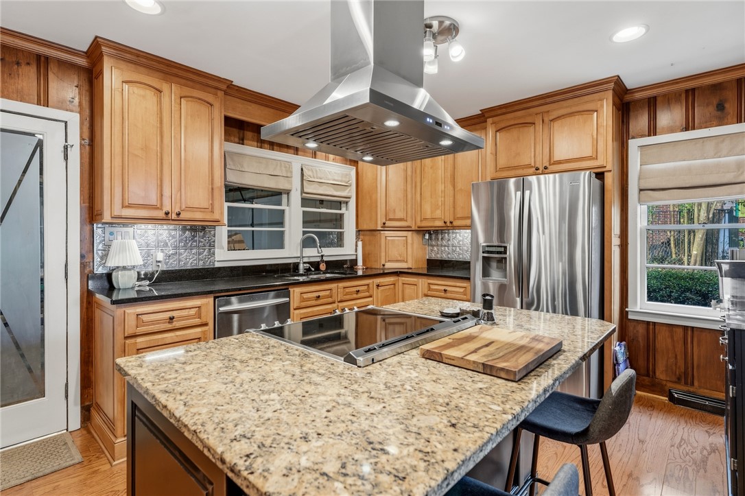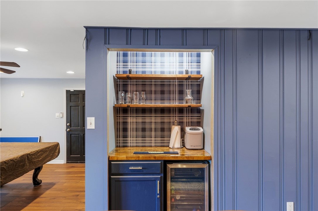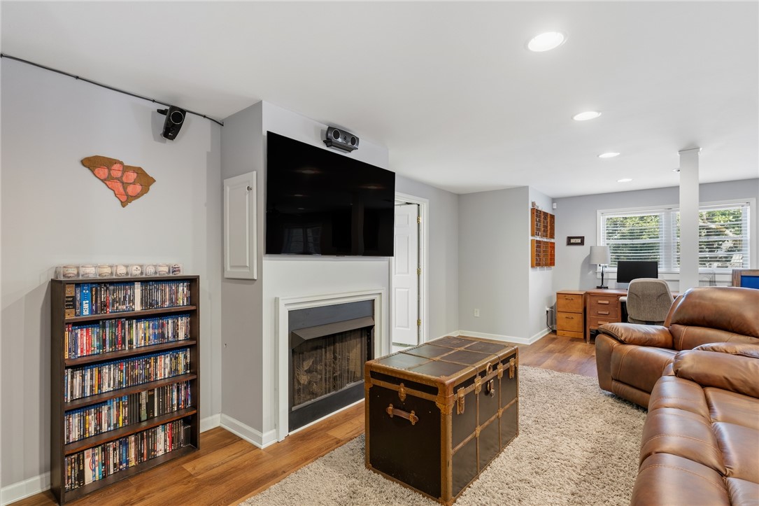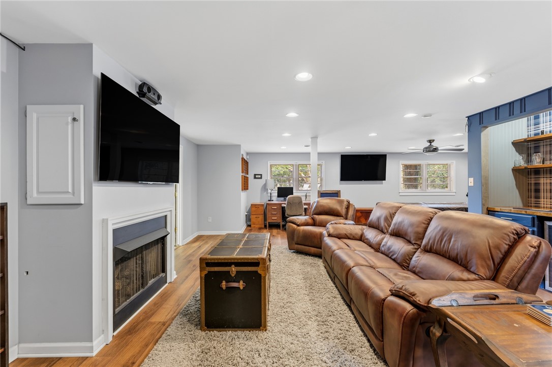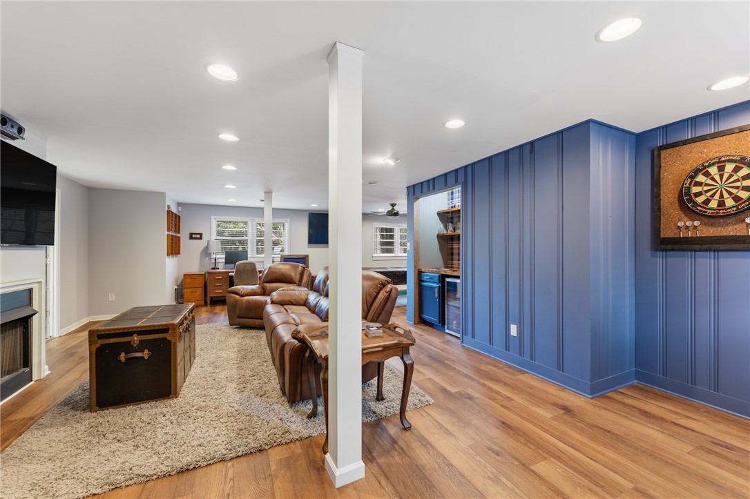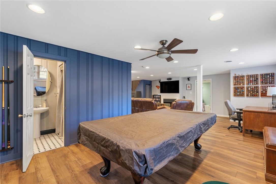 Charming and full of character, this beautiful brick ranch offers timeless appeal with thoughtful updates throughout. Featuring 4 bedrooms and 3 full bathrooms, this home blends classic design with comfortable, functional living spaces. Inside, you’ll find gorgeous hardwood floors, a formal living room, and an elegant formal dining room perfect for gatherings. For those who love to cook, the updated kitchen currently offers an electric range that can easily be converted to gas. The kitchen overlooks a cozy sitting area with a fireplace, creating a warm and inviting space to relax or entertain while staying connected to the heart of the home. Updated bathrooms add a fresh, modern touch while maintaining the home’s charm. The basement is an entertainer’s dream, complete with a pool table, a television, a wet bar, and a full bathroom—ideal for game nights, hosting guests, or creating the ultimate recreation space. Step outside to the covered patio for even more room to unwind and enjoy the outdoors. The private backyard is beautifully landscaped and features an adorable shed that adds both charm and useful storage. A new hot water heater provides added peace of mind. With its character, spacious layout, and great entertaining areas both inside and out, this home is truly a special find.