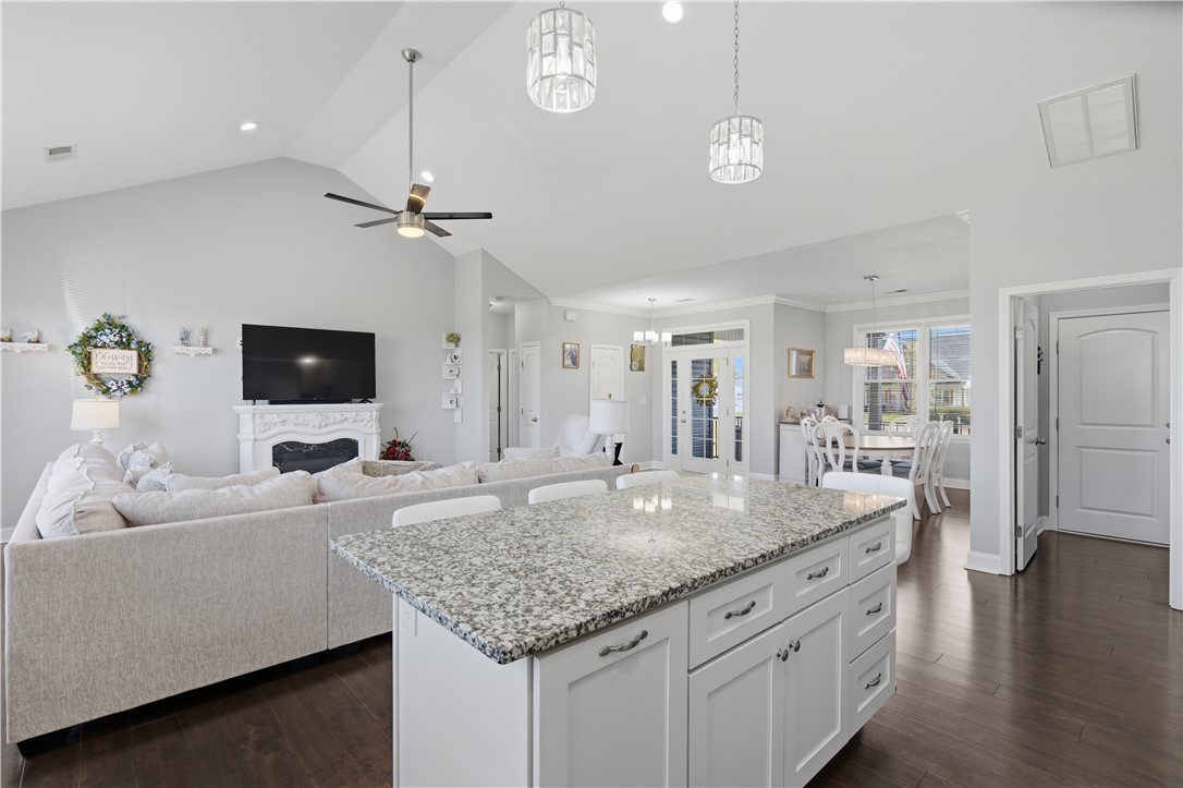 Welcome to 1312 Falcons Drive, a like-new home located in the Windsor at Walhalla community. This property offers expansive scenic views, including the 1st hole of the Windsor at Walhalla golf course. Inside, you will find a large open floorplan with plenty of natural light. The kitchen is finished with granite countertops, a new tile backsplash, a stainless farm sink, and stainless steel appliances. The home features a split floorplan, including a spacious primary suite with vaulted ceilings, dual sinks, and two walk-in closets. There are two additional bedrooms and a large bonus room that is currently being used as a 4th bedroom. For storage, the oversized two-car garage comes equipped with large built-in shelving. Outside, you can enjoy a large front porch or a back patio with a fenced-in area. This community has a low $300/year HOA fee and includes access to the golf course, a community clubhouse with a restaurant. Don't wait, scheduled your showing today!